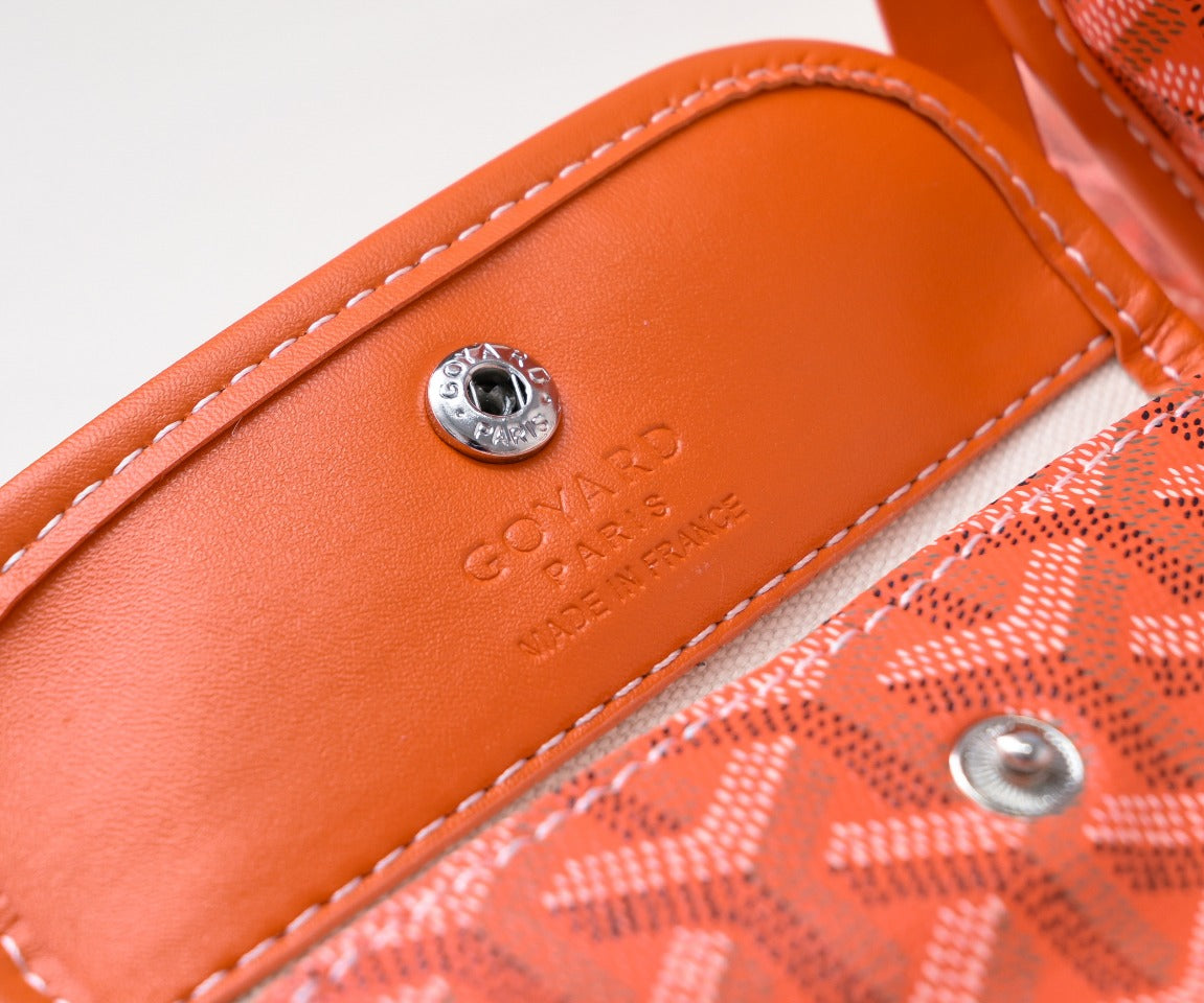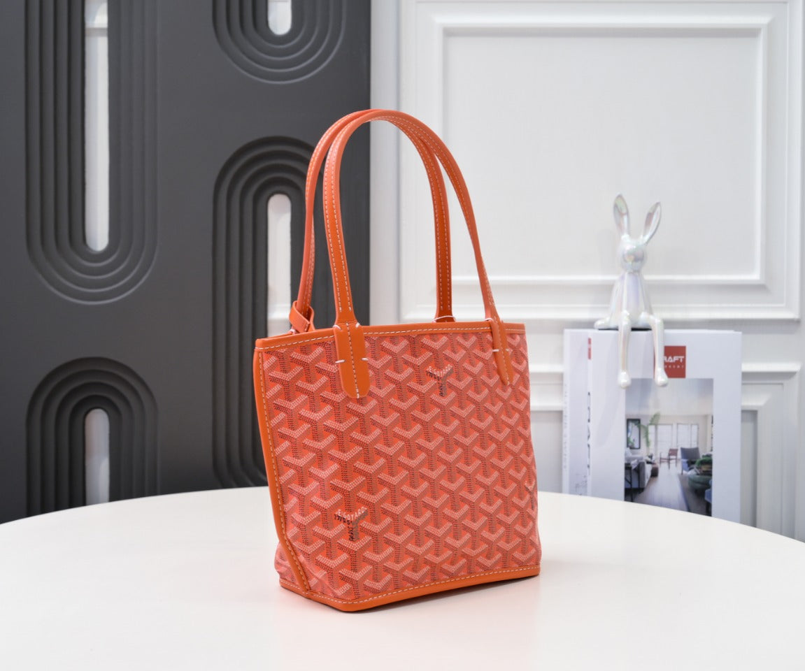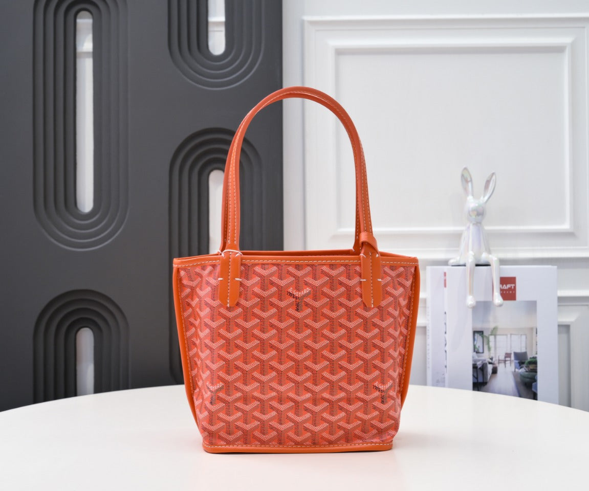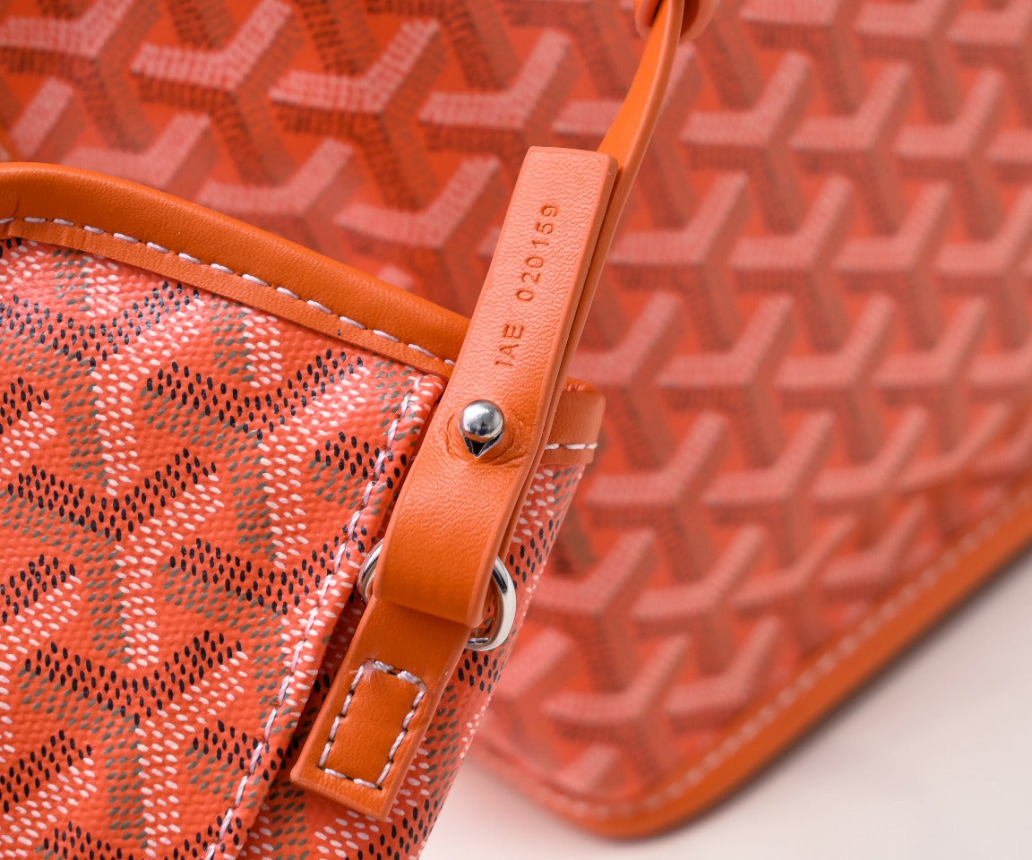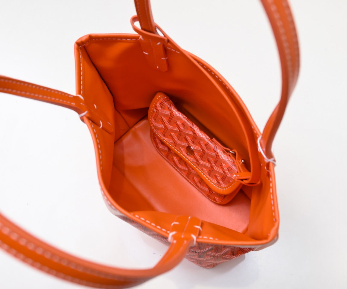 Introducing the Anjou Mini Double-Sided Handbag, the perfect blend of style and functionality. This unique design features one side crafted from the iconic Goyardine waterproof coated canvas, while the other side showcases luxurious soft calfskin, allowing you to switch up your look effortlessly.