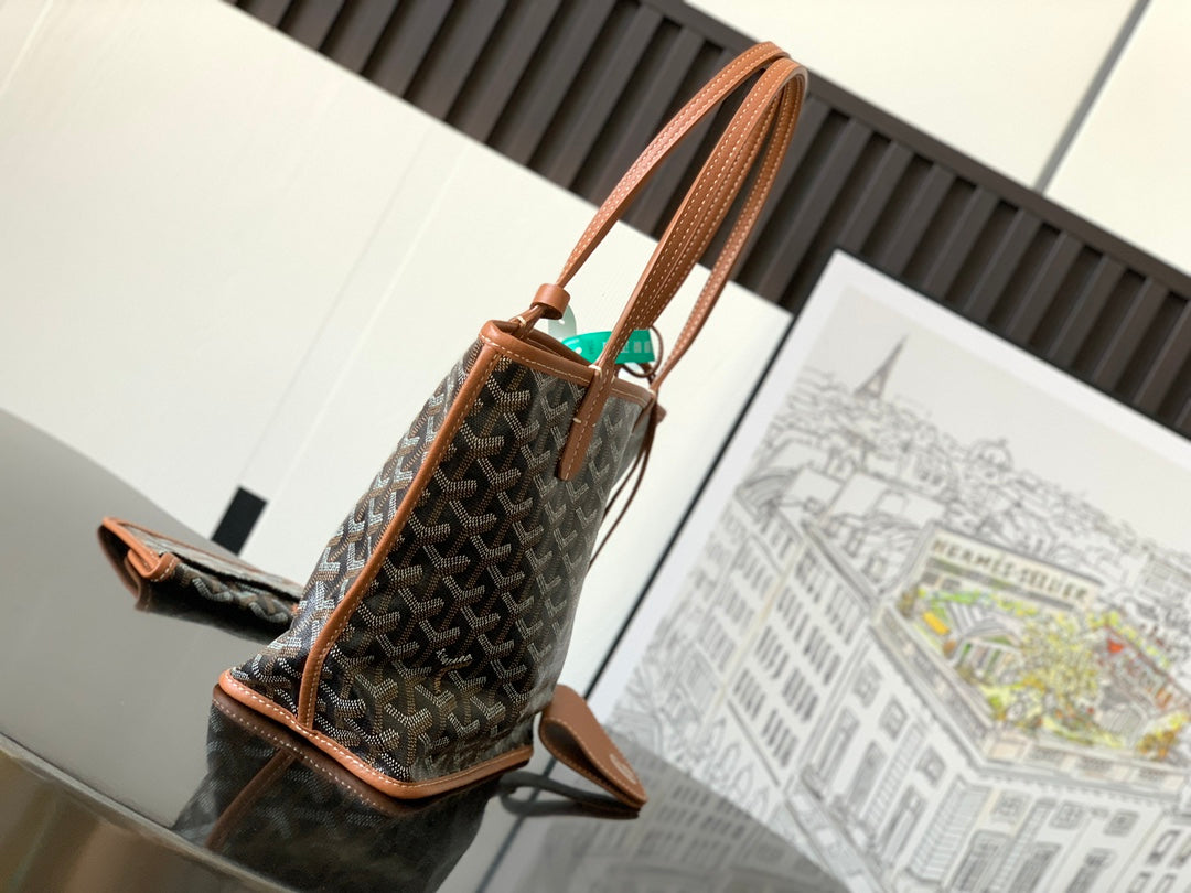 Introducing the Anjou Mini Bag in Black/Brown, a luxurious leather interpretation of the iconic Saint Louis design. Lined with premium Goyardine canvas, this versatile mini bag showcases two distinct aesthetic styles to complement any outfit. The thoughtfully crafted, gradually thickened handle ensures a secure and comfortable grip, making it perfect for evening outings or carrying daily essentials. With compact dimensions of 20 cm x 10 cm x 20 cm, it balances elegance with practicality. Each Anjou Mini Bag comes complete with full packaging, making it an ideal gift for yourself or a loved one. Elevate your accessory collection today!