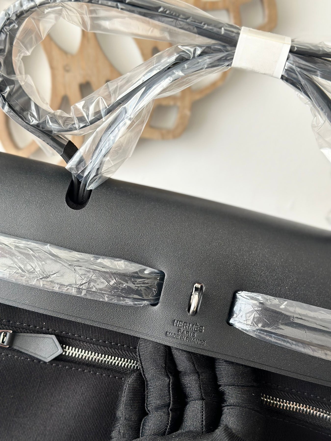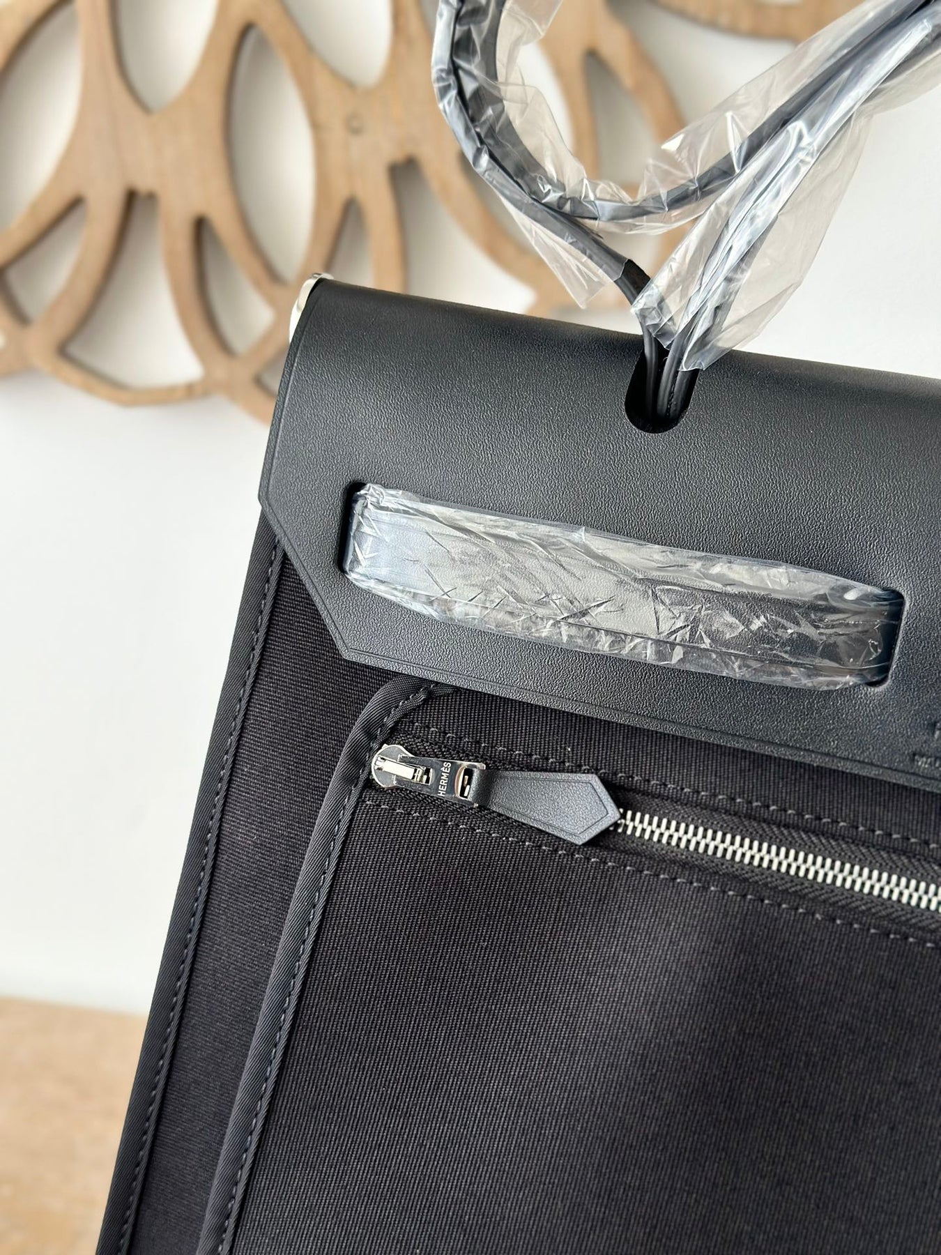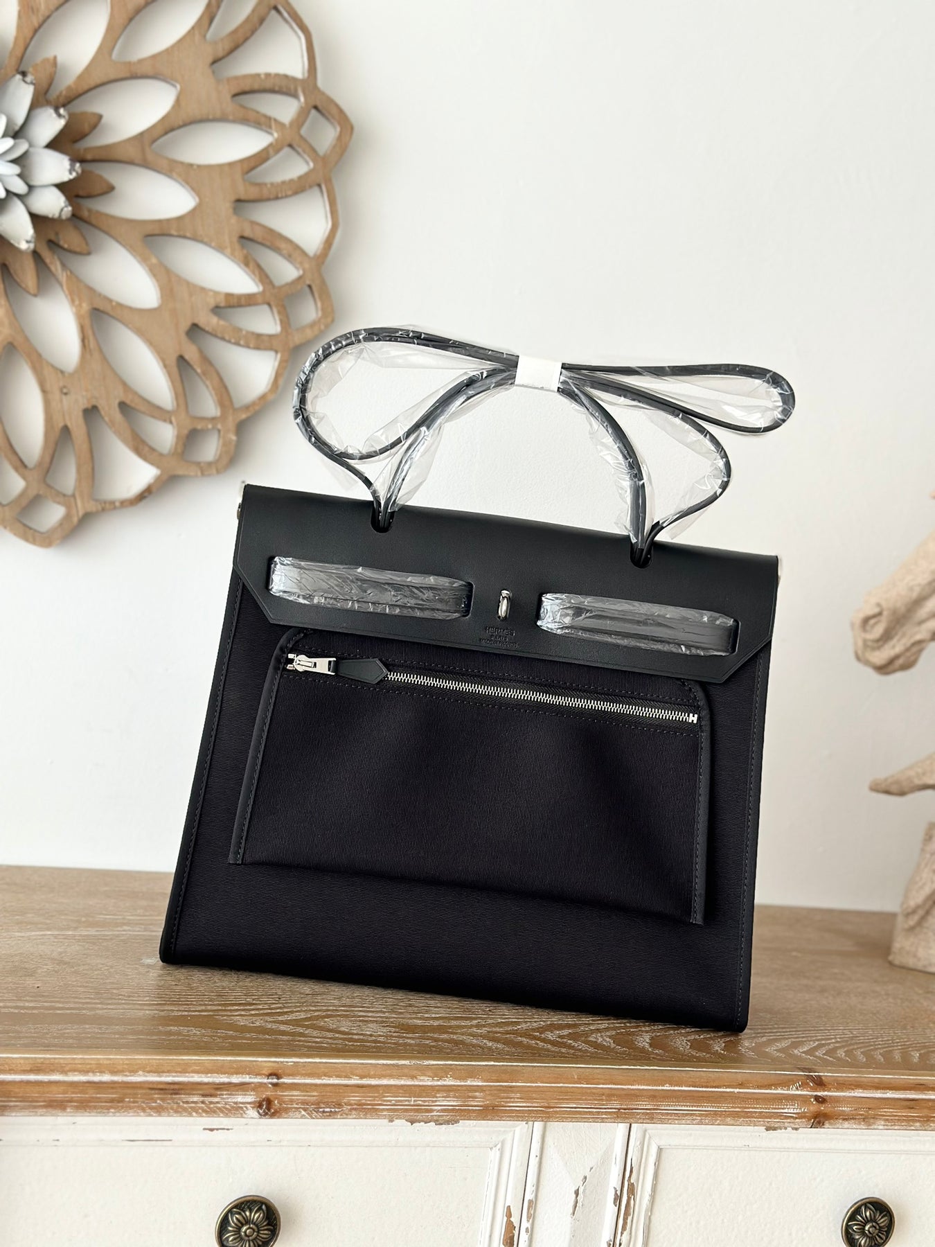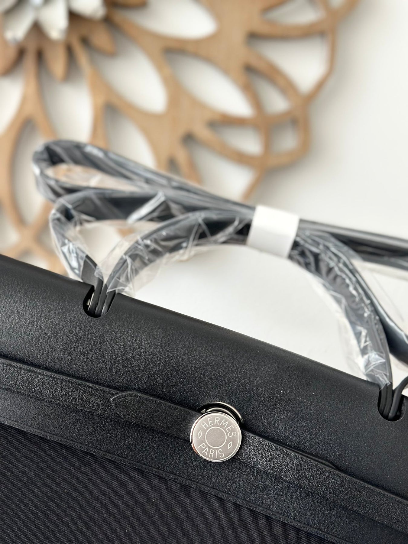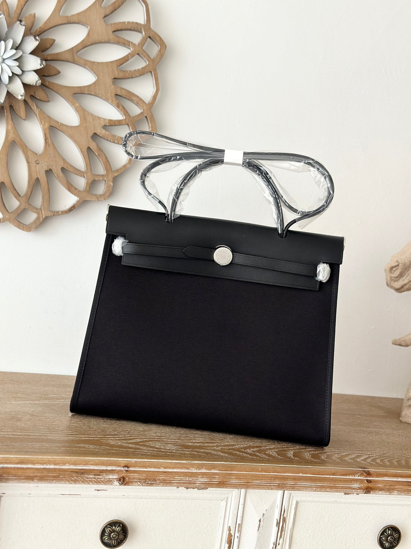 Authentic Hermes Herbag 31cm - Black Leather Handcrafted Bag with Silver Buckle