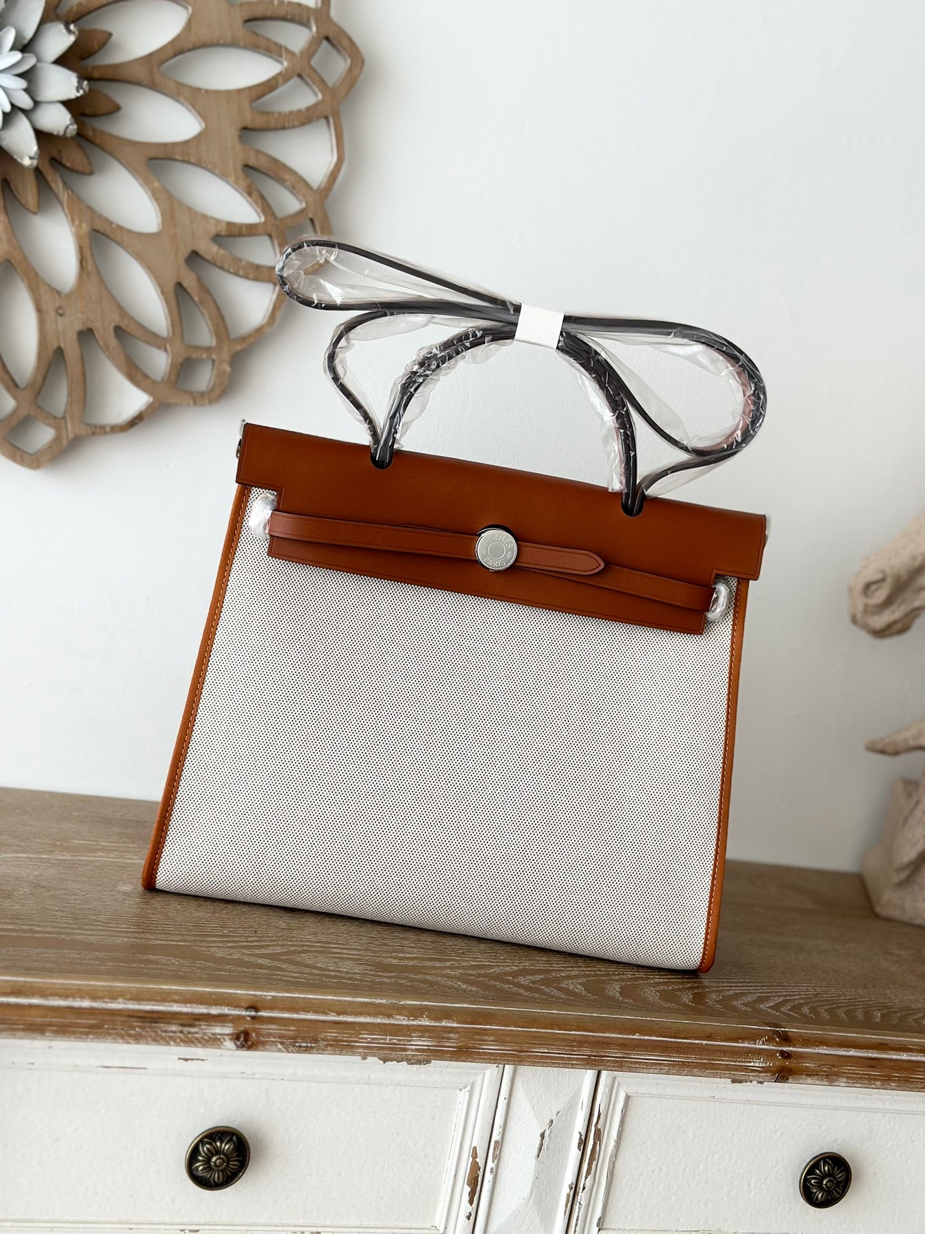 Authentic Hermes Herbag 31cm - Golden Brown & White