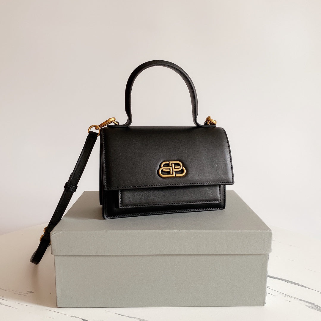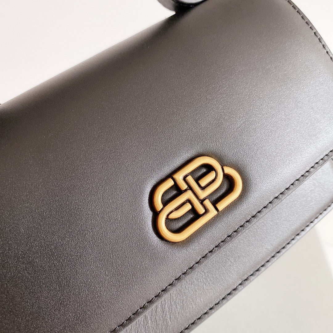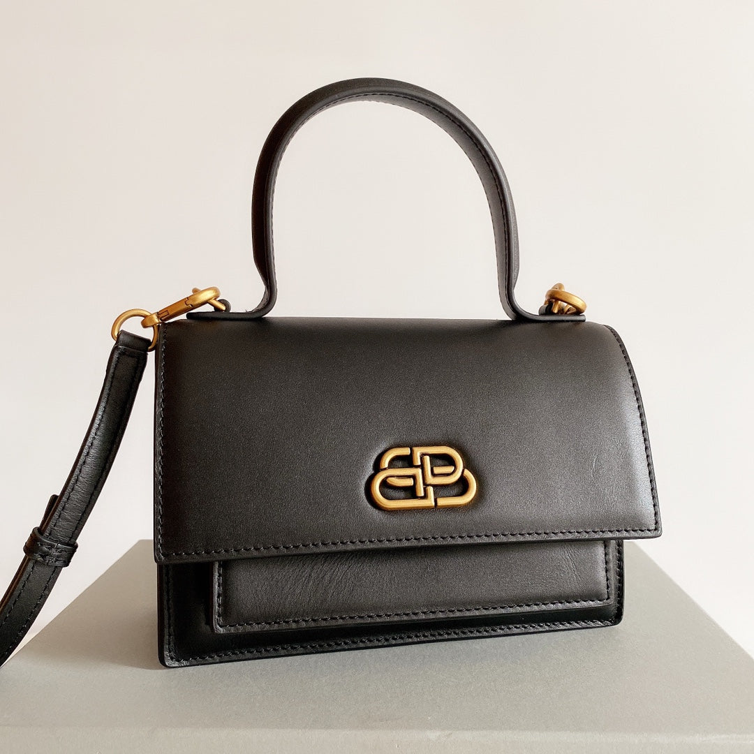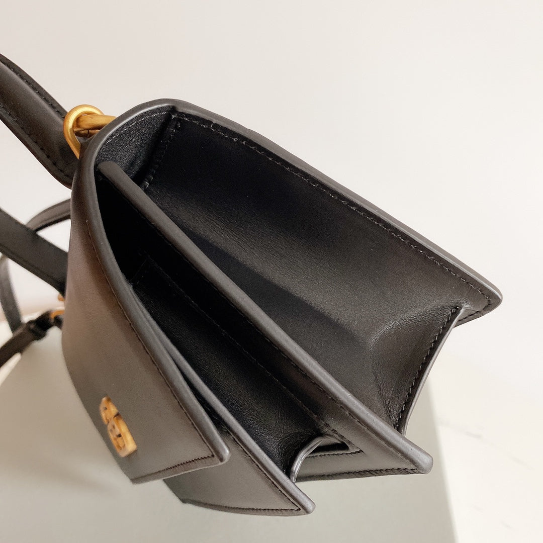 Key features include a large double B brand logo, an adjustable and detachable crossbody strap, and a secure magnetic buckle closure with vintage bronze hardware. The handbag also offers a spacious front compartment and a full leather slip pocket inside, ensuring you have ample storage space for your essentials.