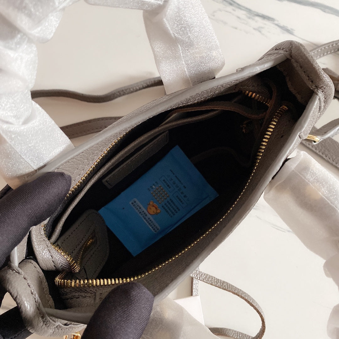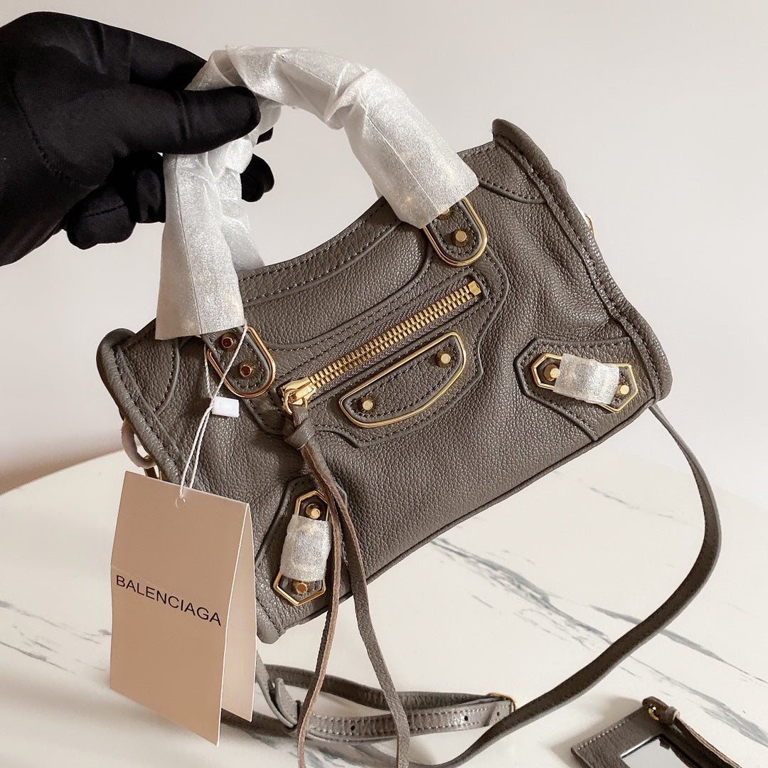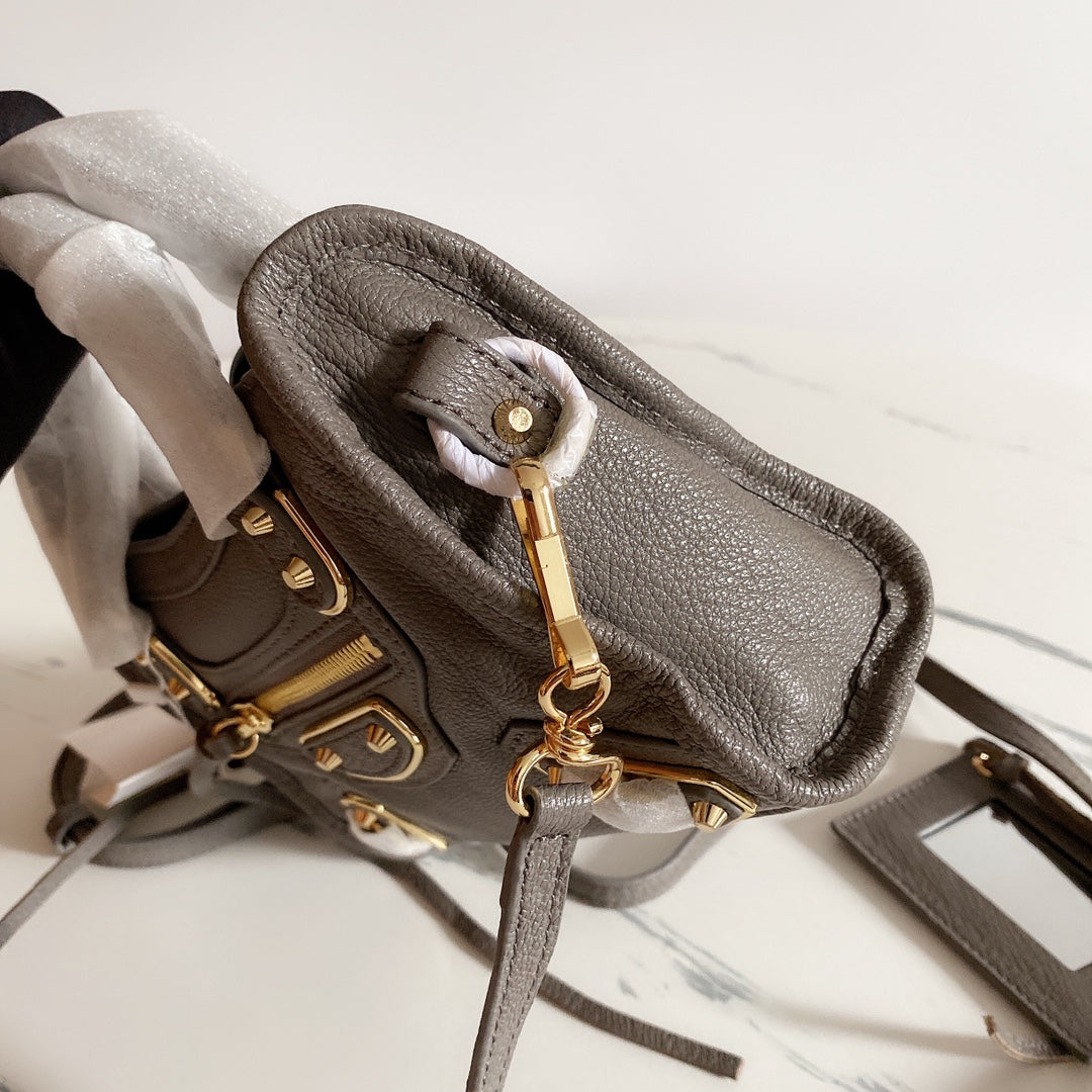 Elevate your style with the Balenciaga Classic Motorcycle Bag, expertly crafted from premium imported goatskin leather in an elegant dark gray hue. This sophisticated accessory features a striking gold buckle and high-grade gold-rimmed hardware.