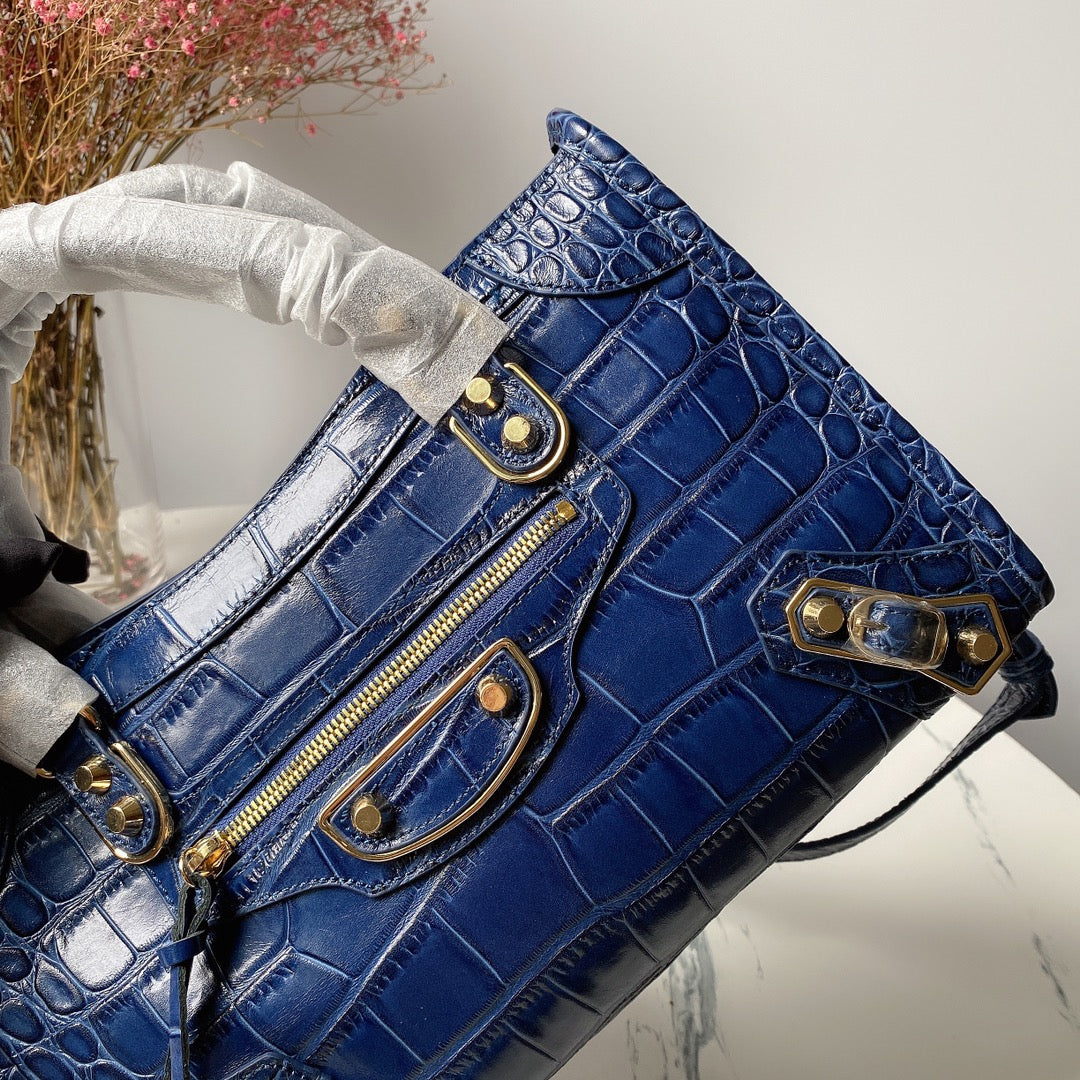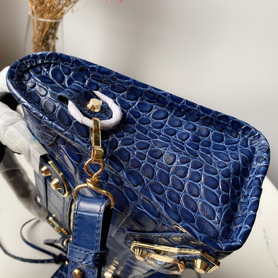 Balenciaga Crocodile Pattern Biker Bag - Royal Blue