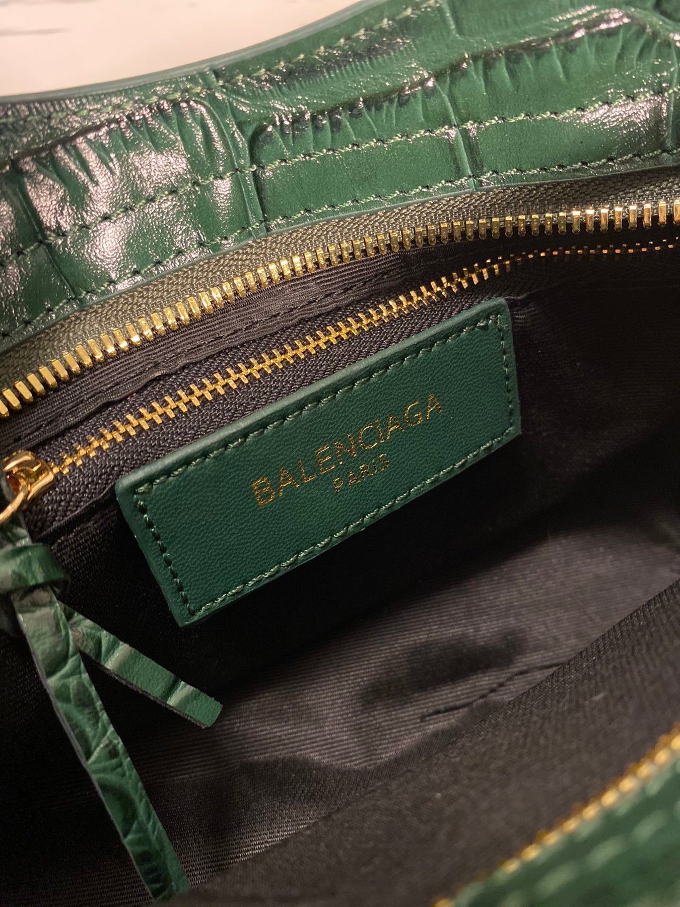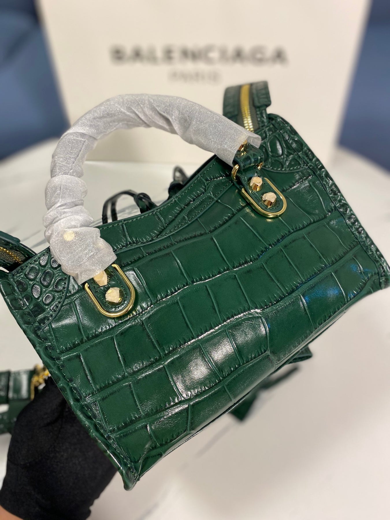 Balenciaga Crocodile Pattern Green Motorcycle Bag - Luxury Calfskin