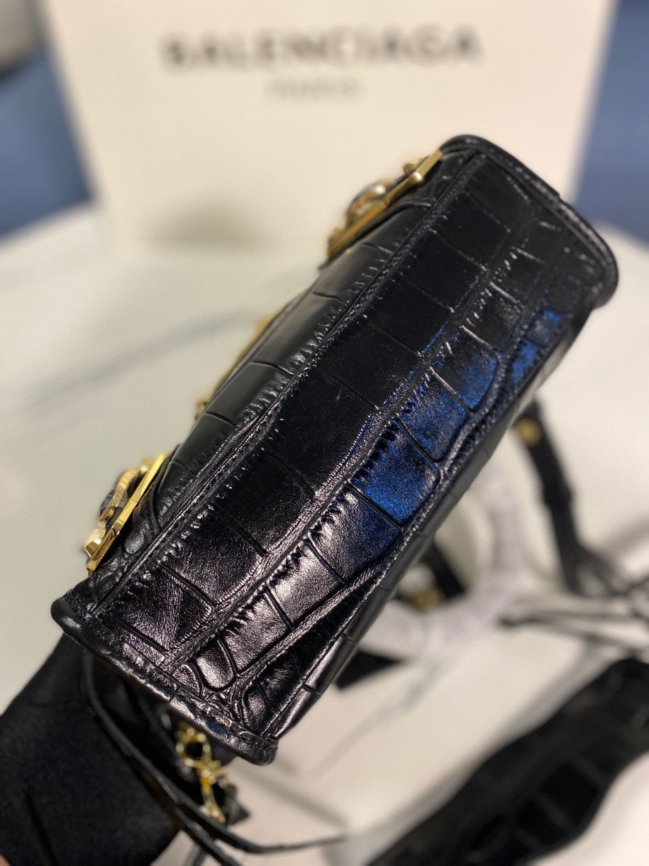 Balenciaga Crocodile-Pattern Motorcycle Bag - Black 23cm