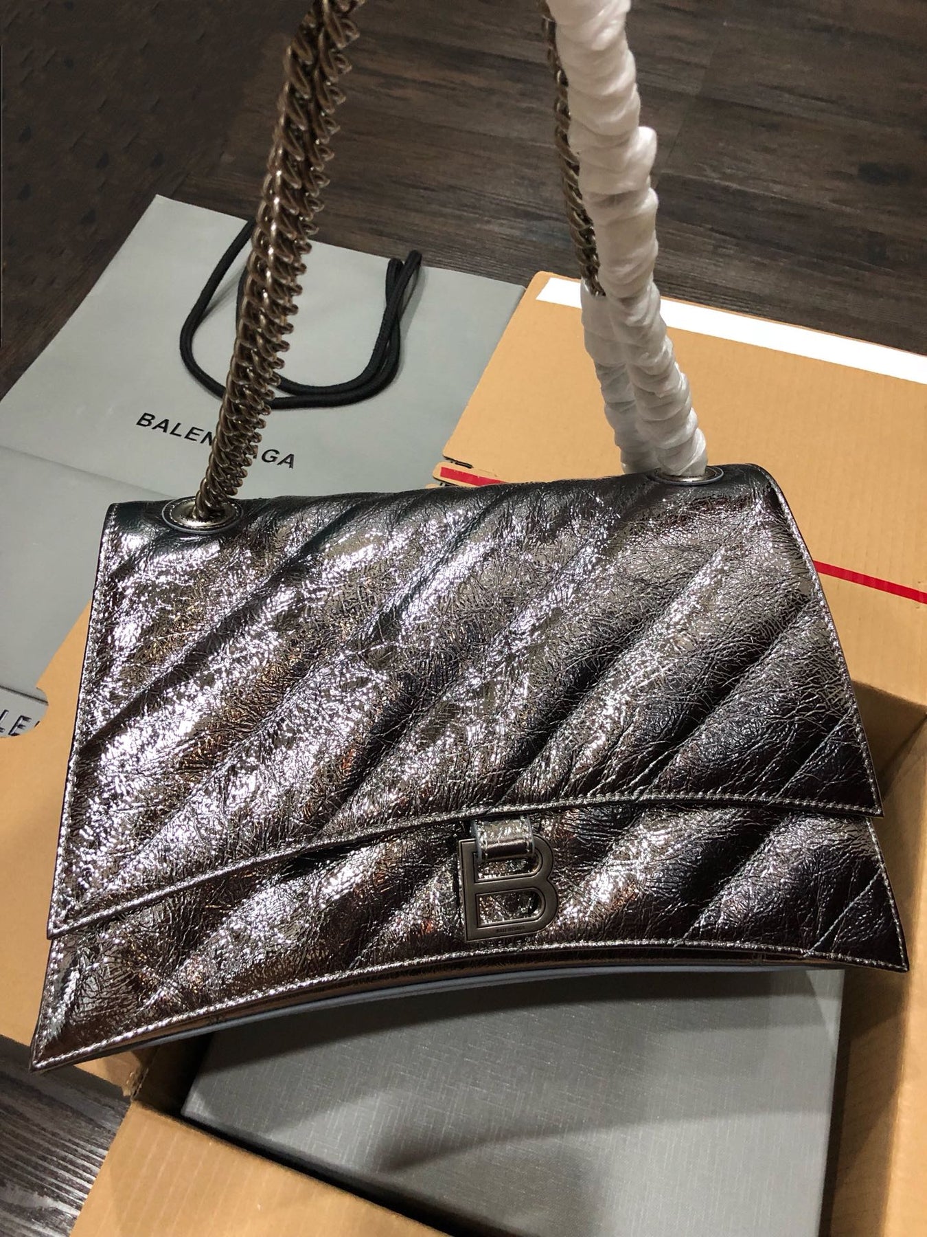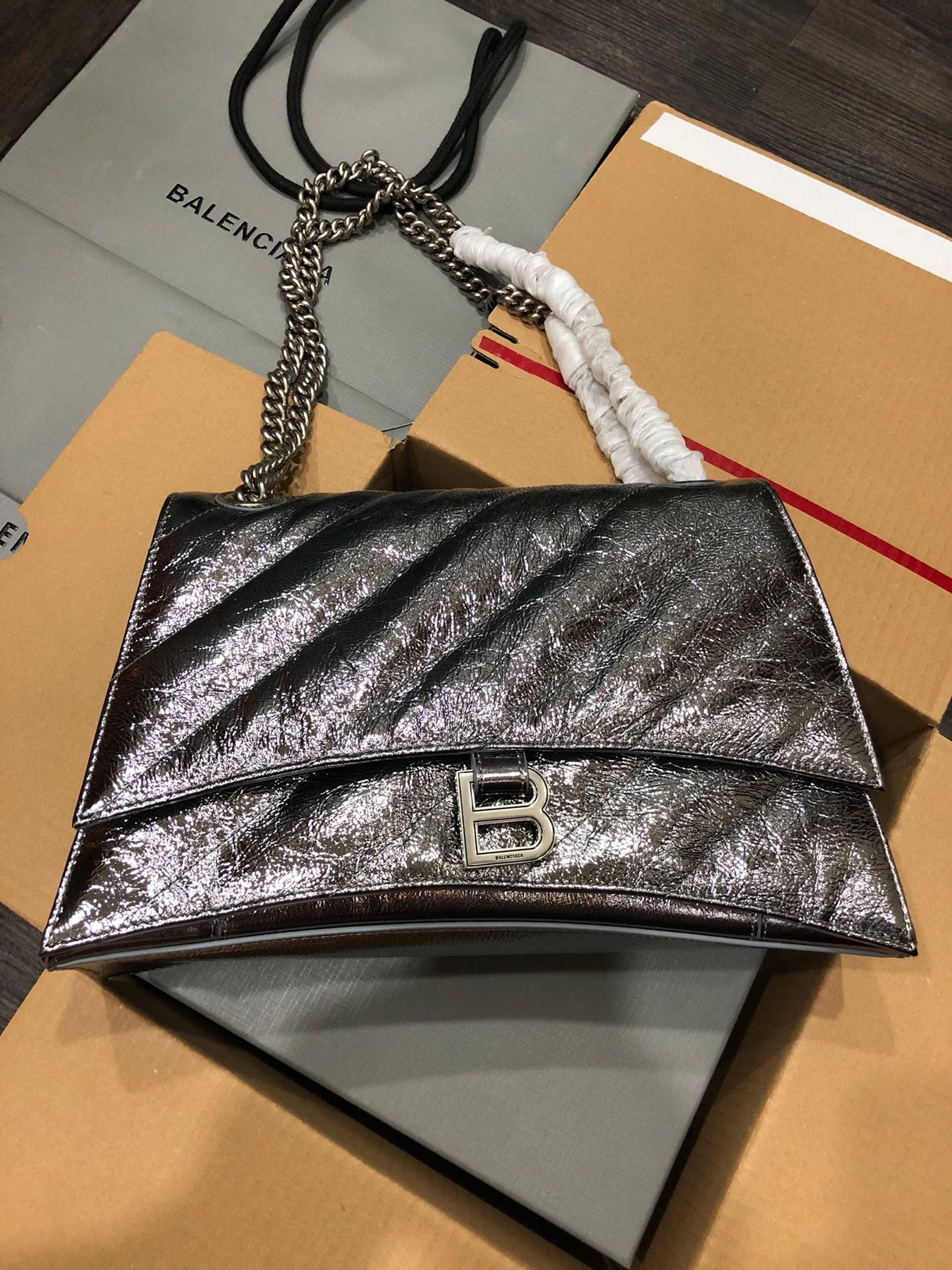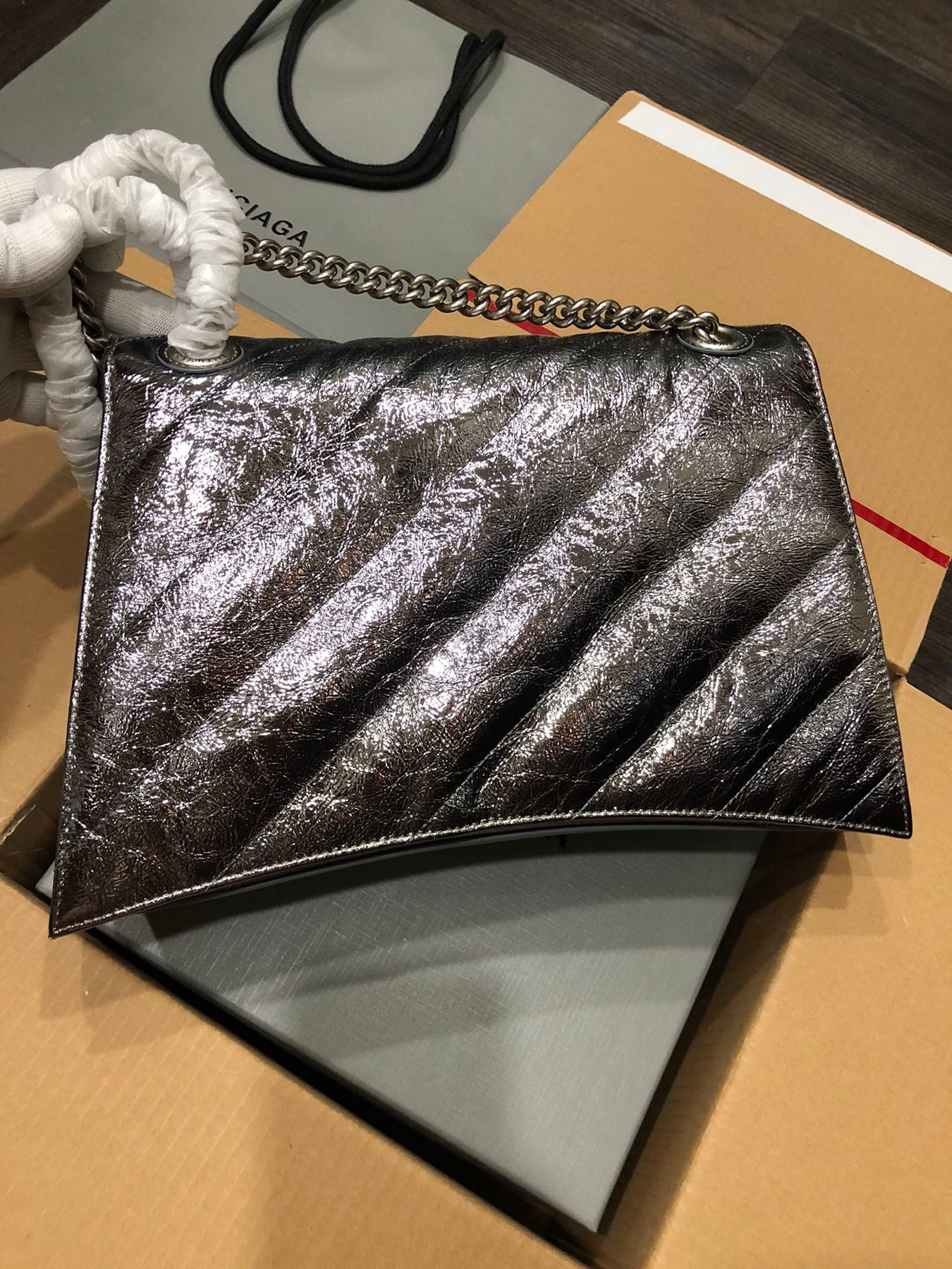 Balenciaga Crush Quilted Chain Bag - Medium Silver Buckle
