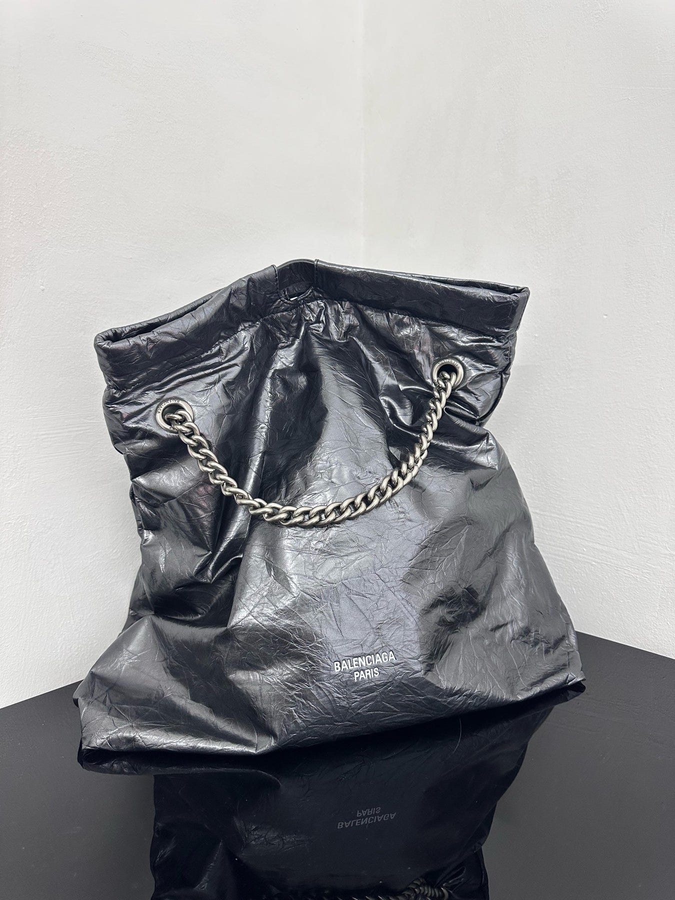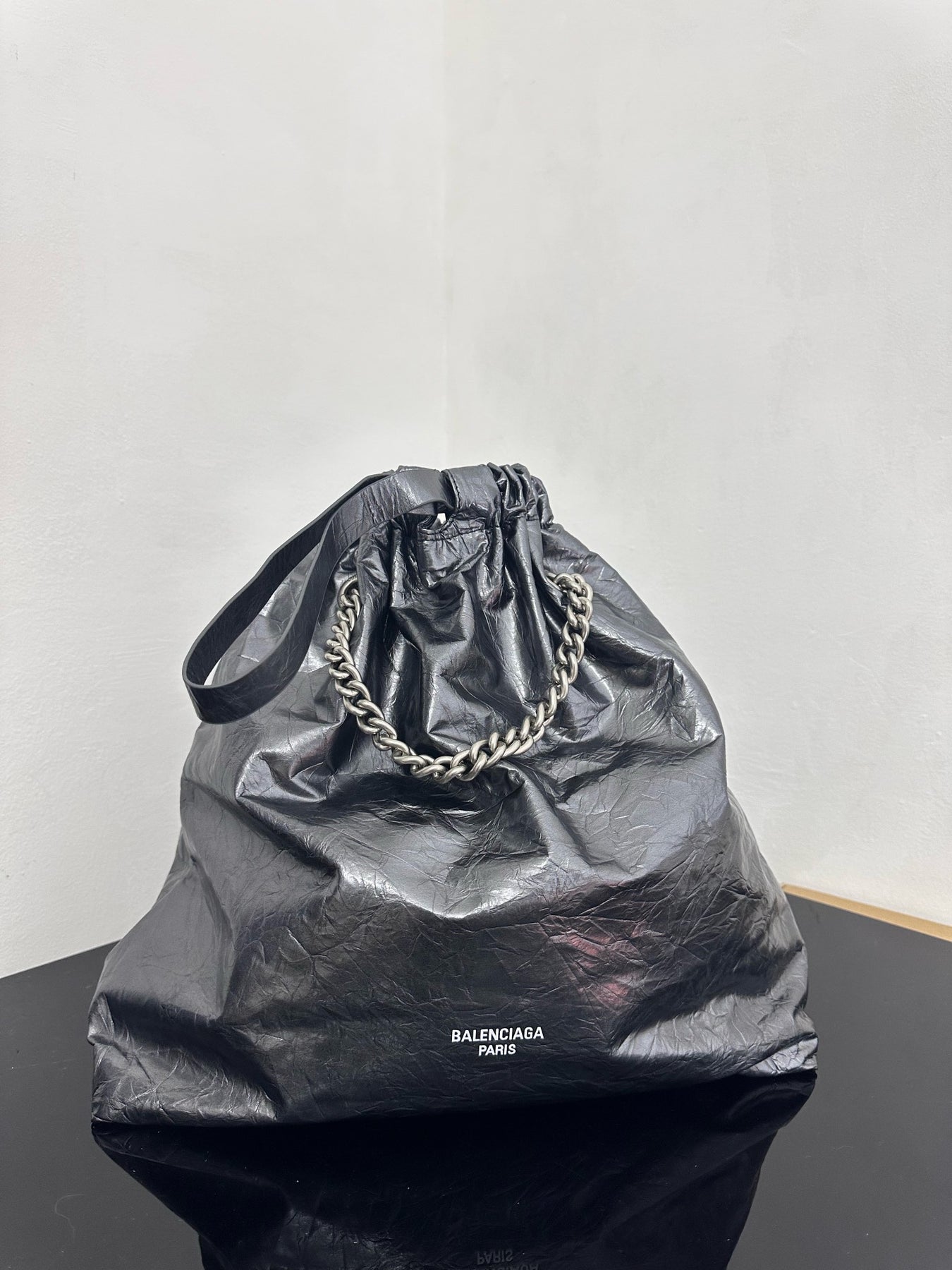 Balenciaga Crush Tote Bag – Large Pleated Black & Silver