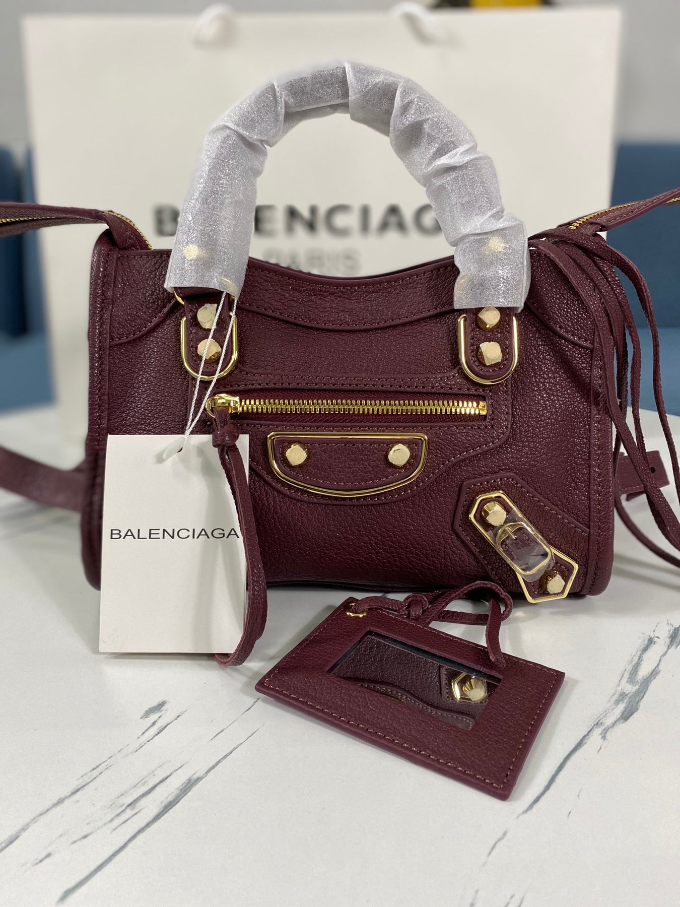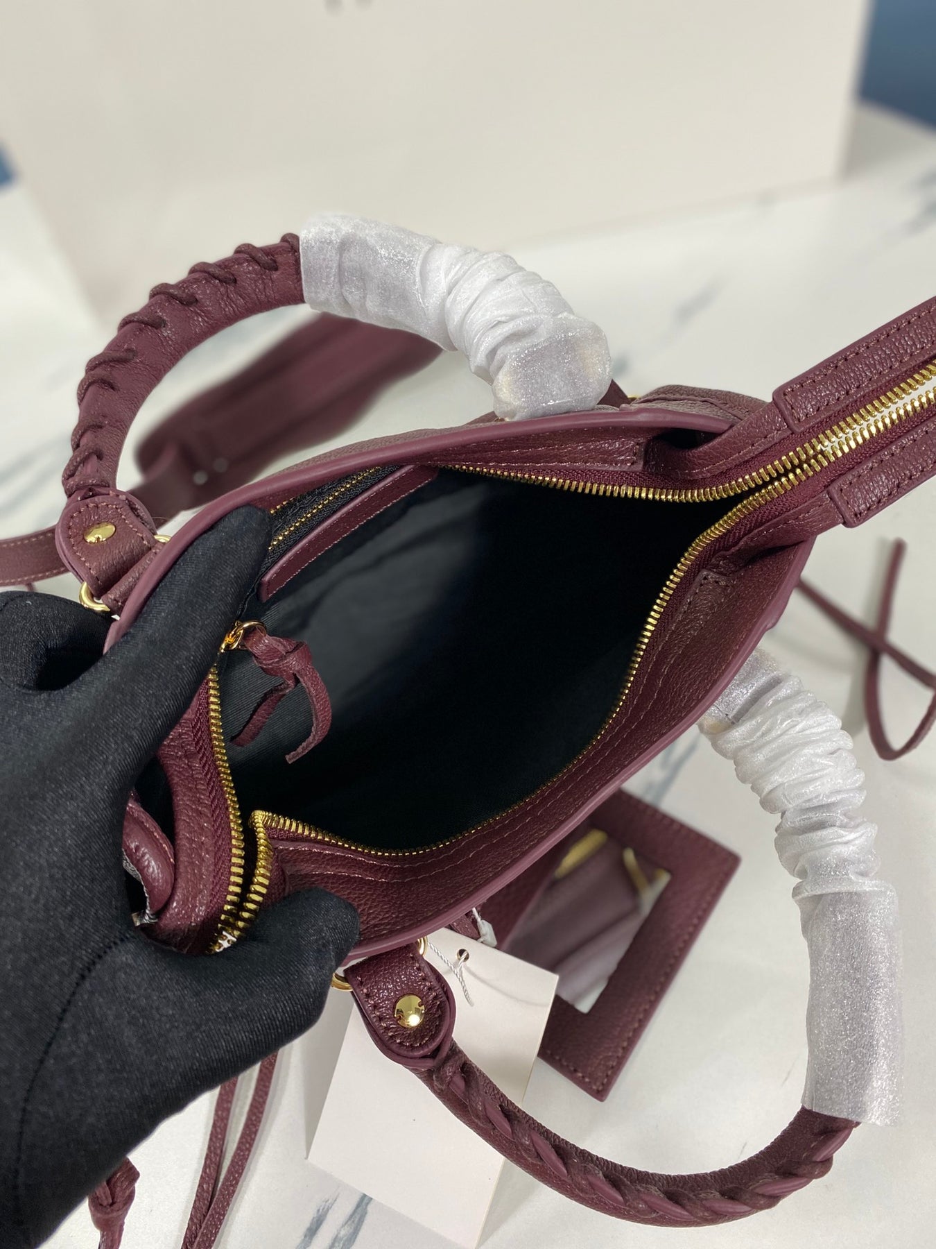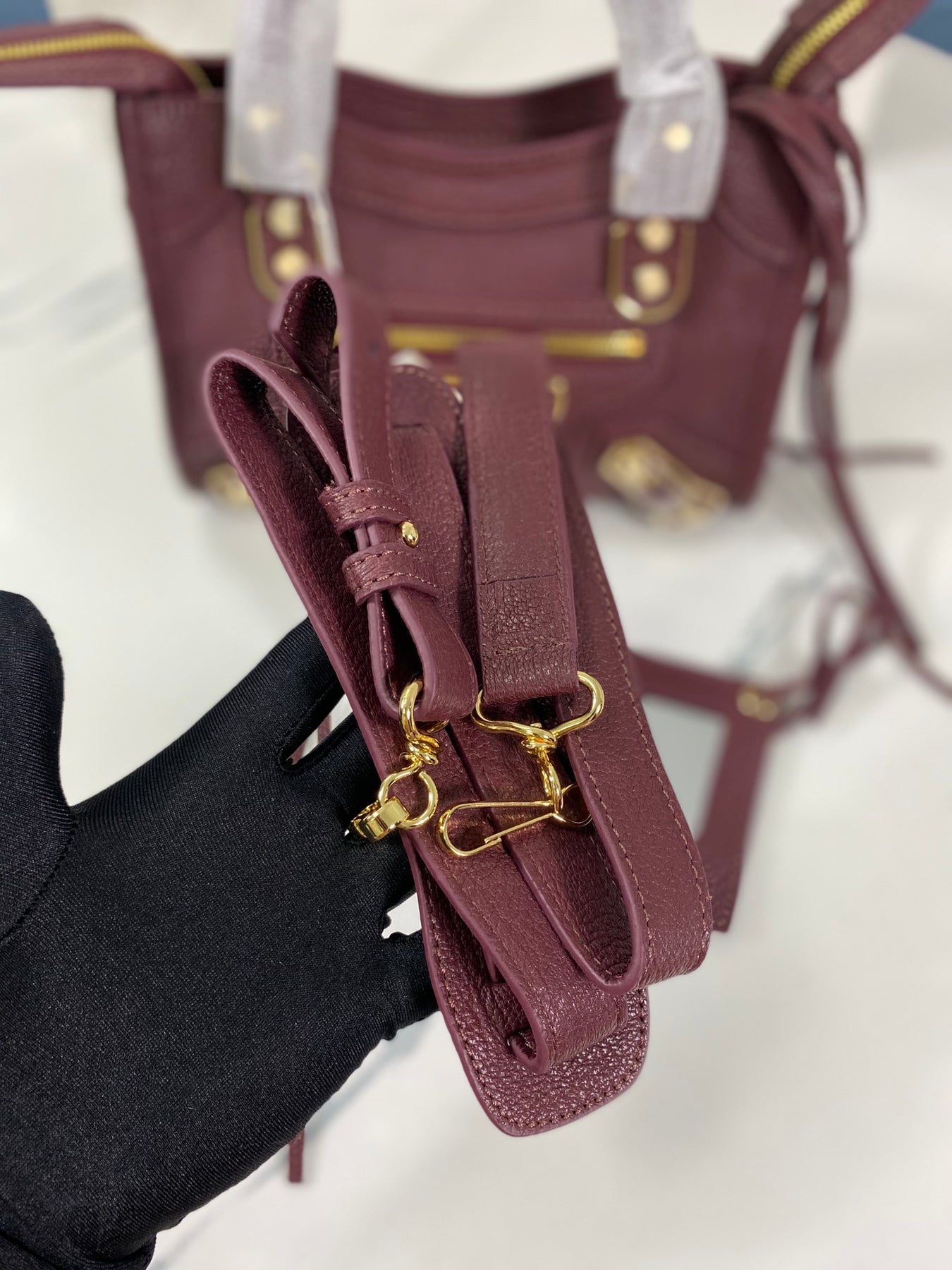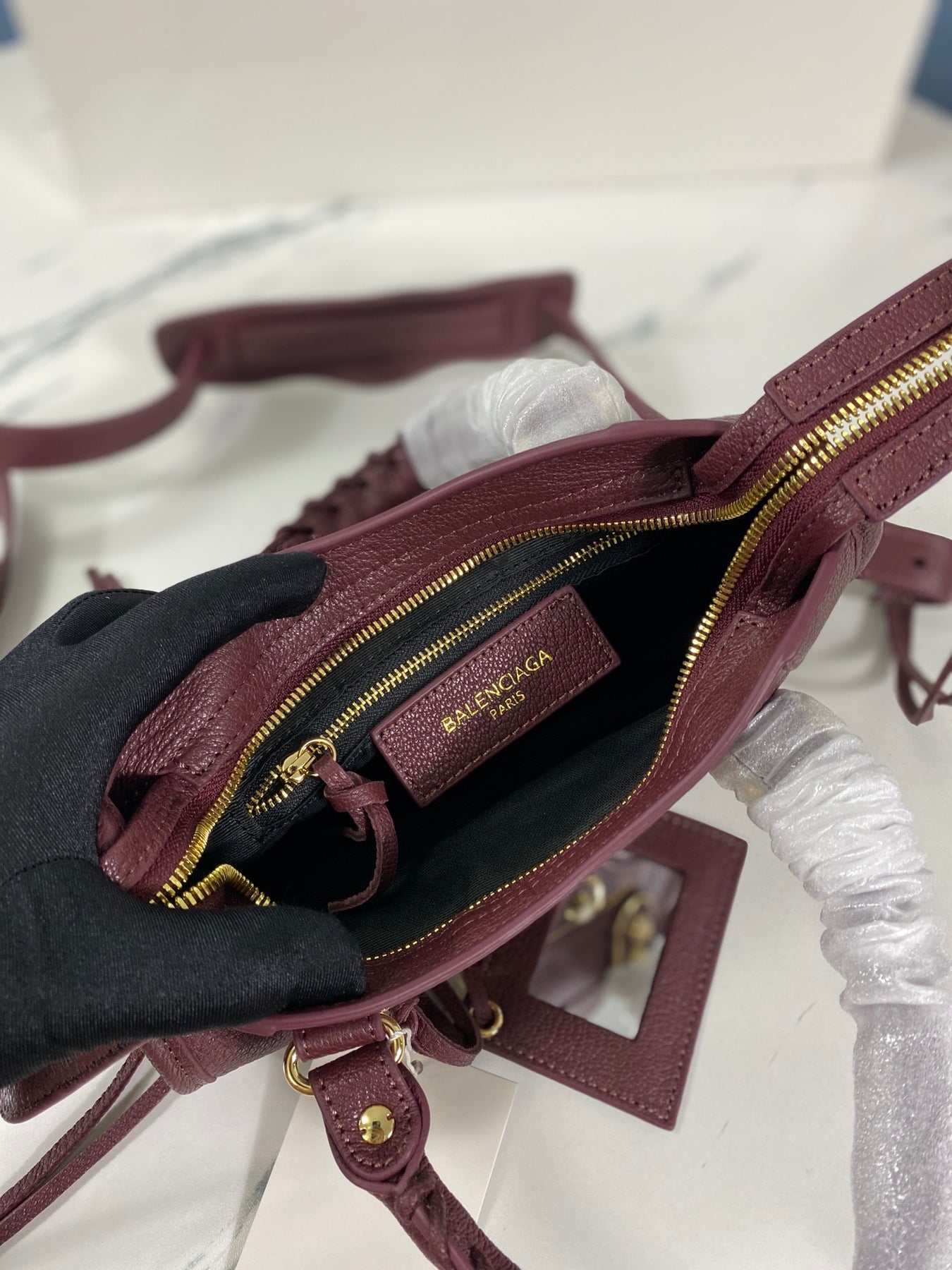 Balenciaga Goatskin Gold Buckle Motorcycle Bag - Burgundy Mini (23cm)