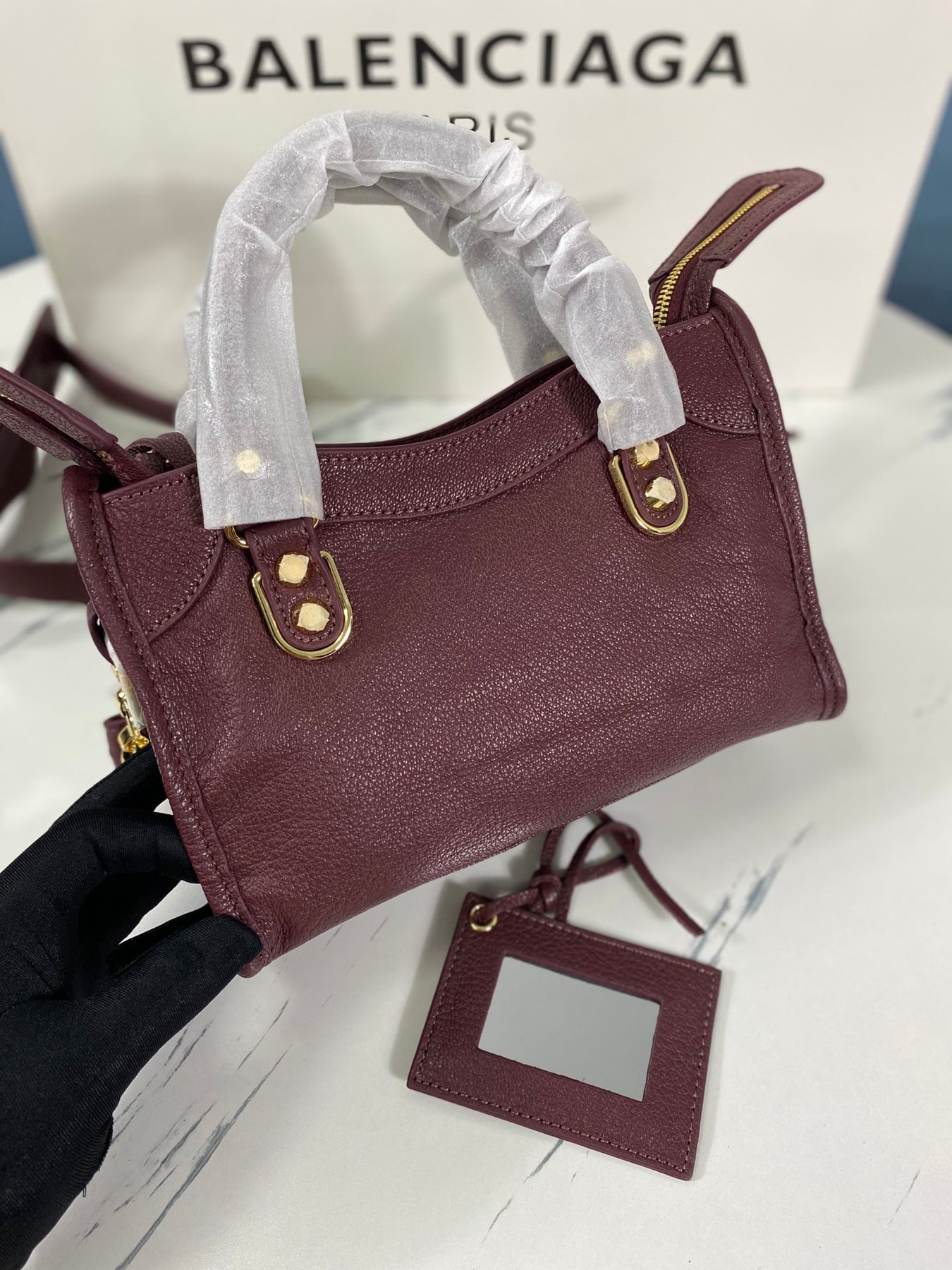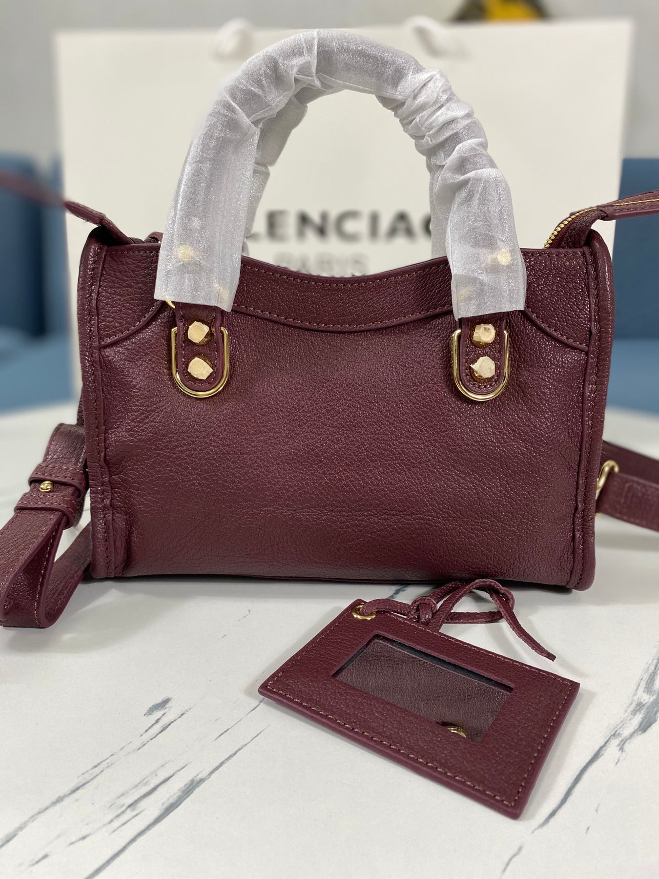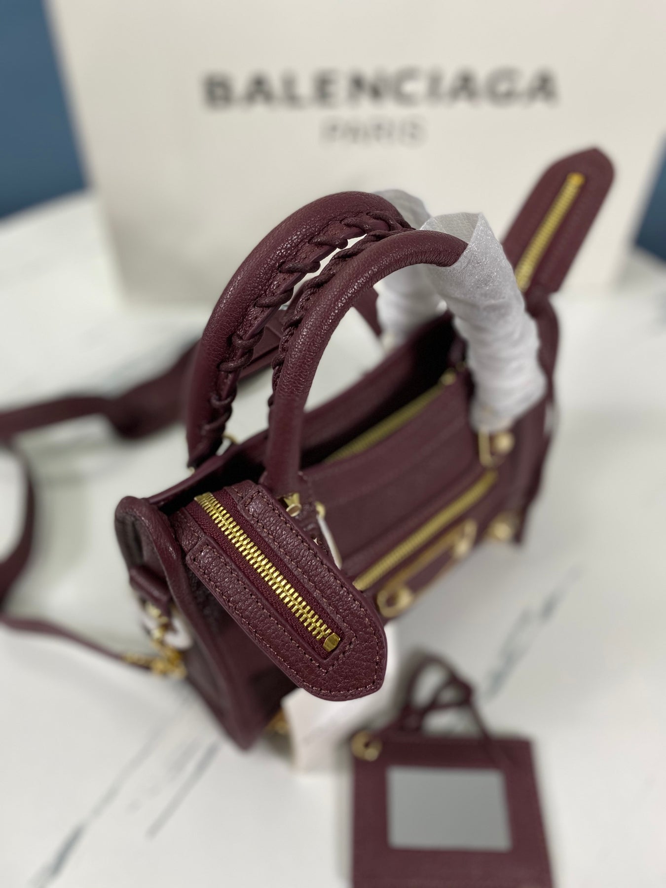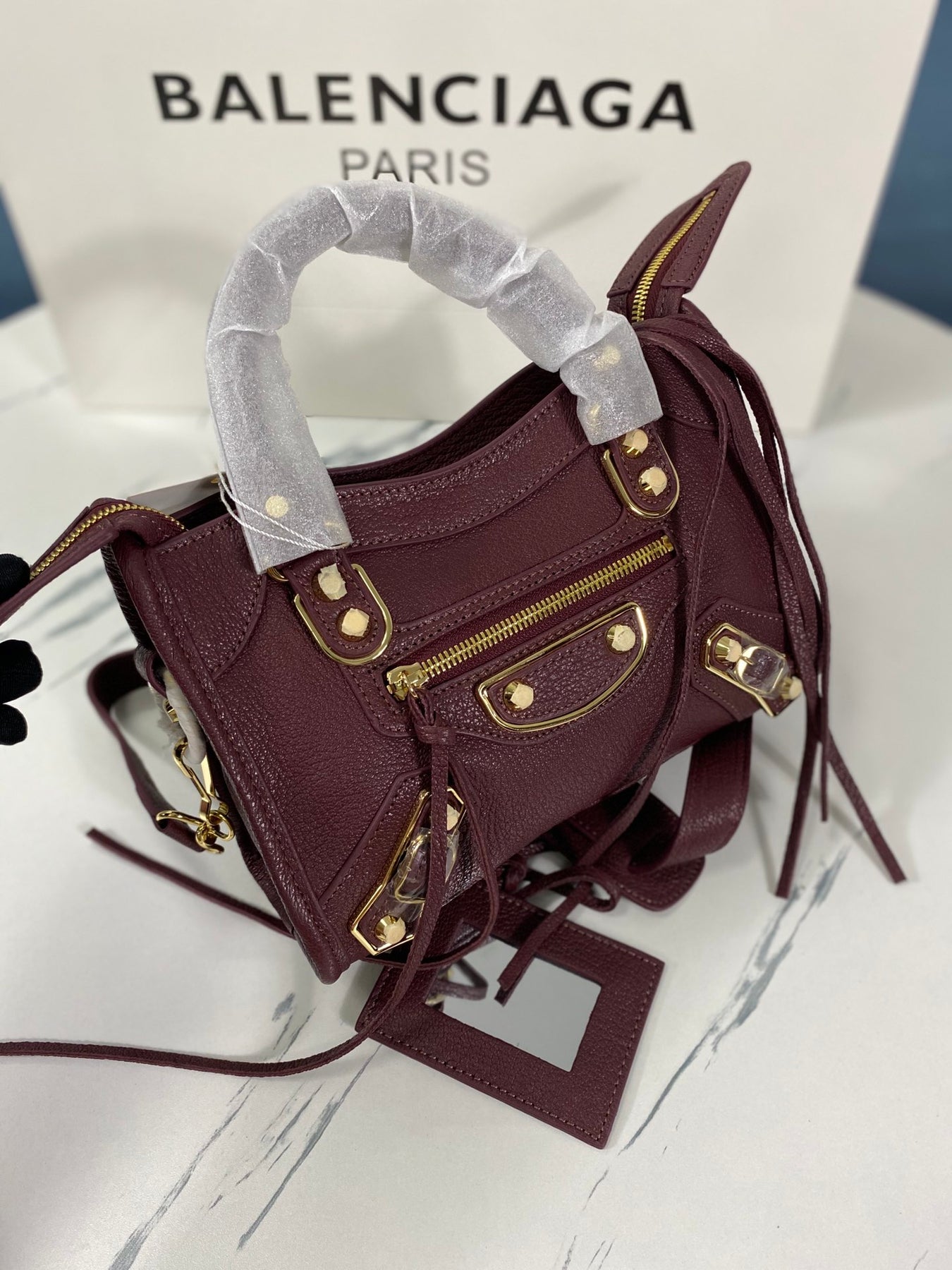 Balenciaga Goatskin Gold Buckle Motorcycle Bag - Burgundy Mini (23cm)