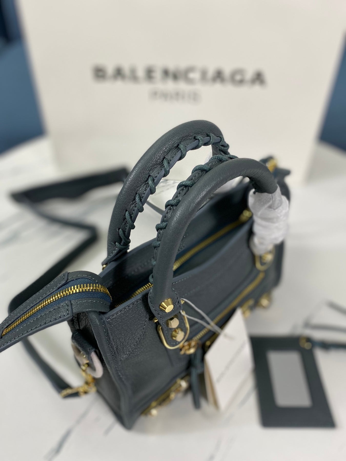 Balenciaga Goatskin Mini Motorcycle Bag - Gray Blue