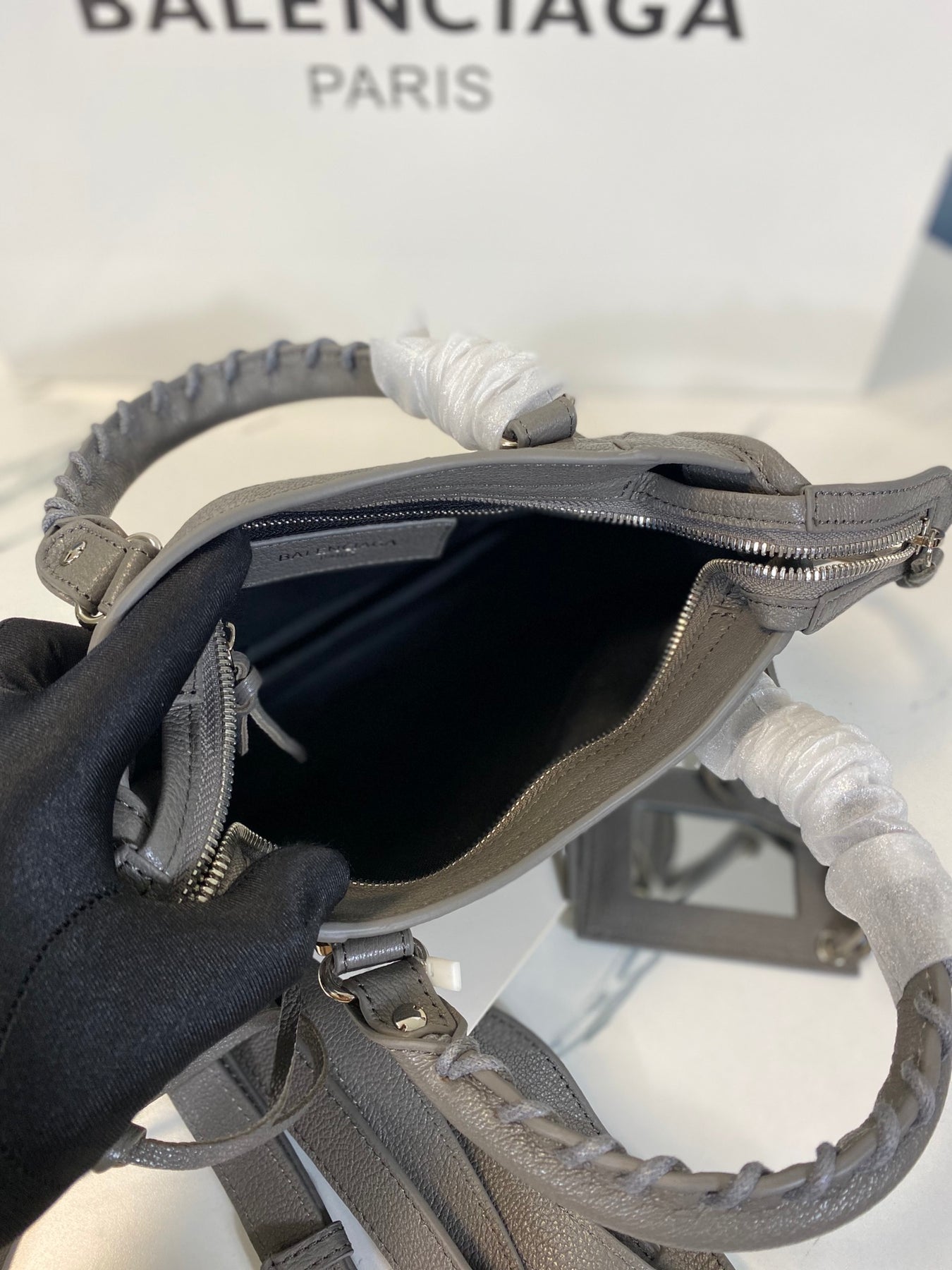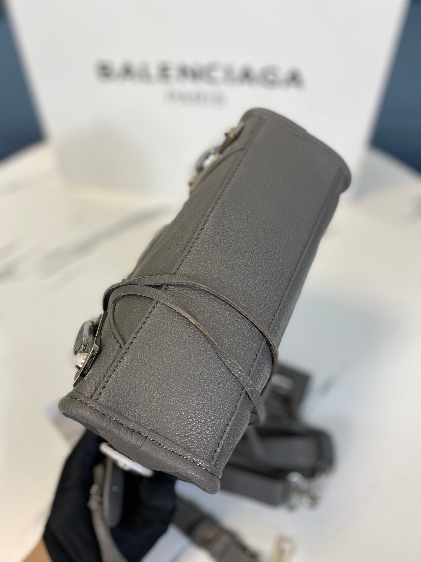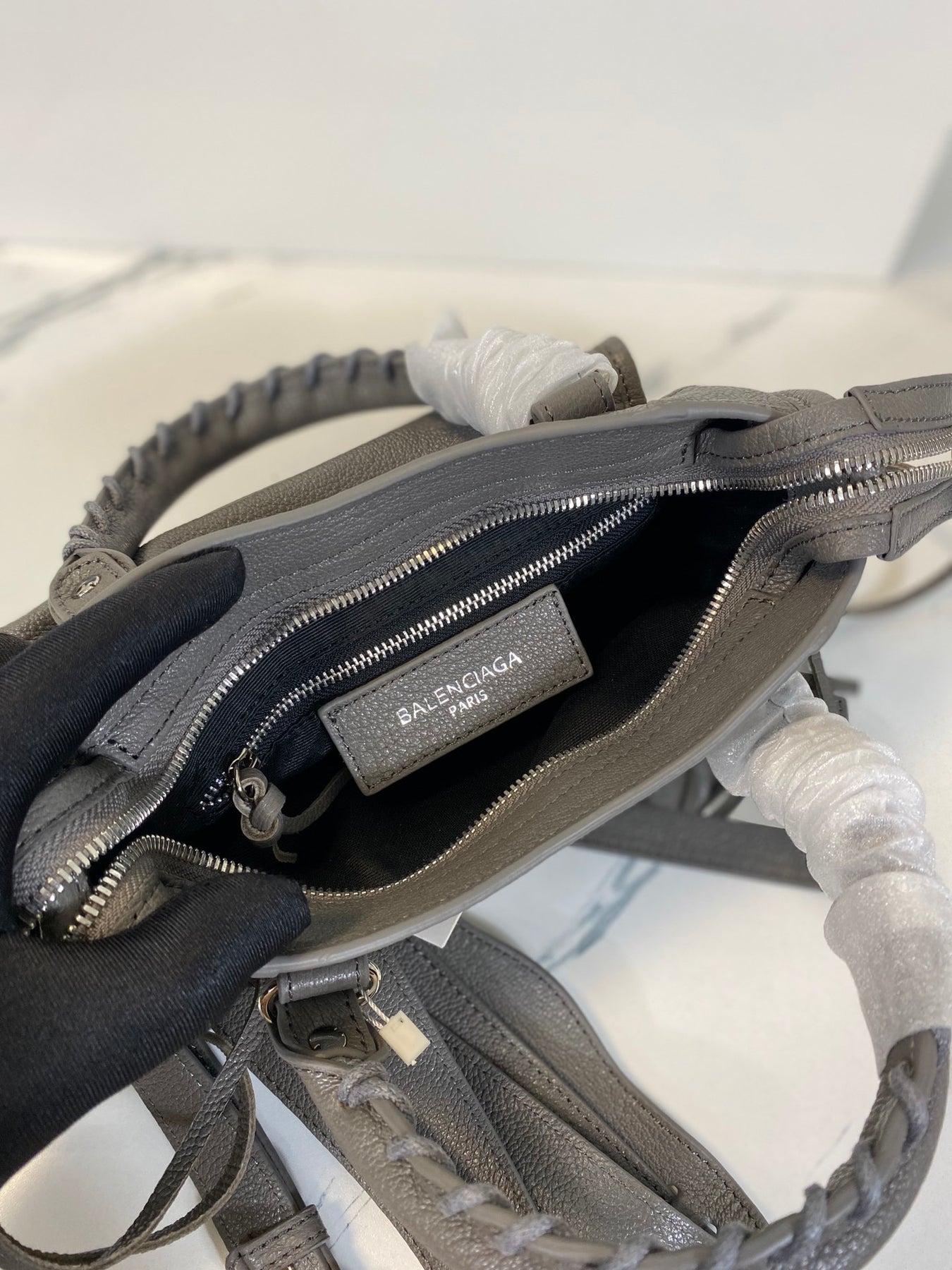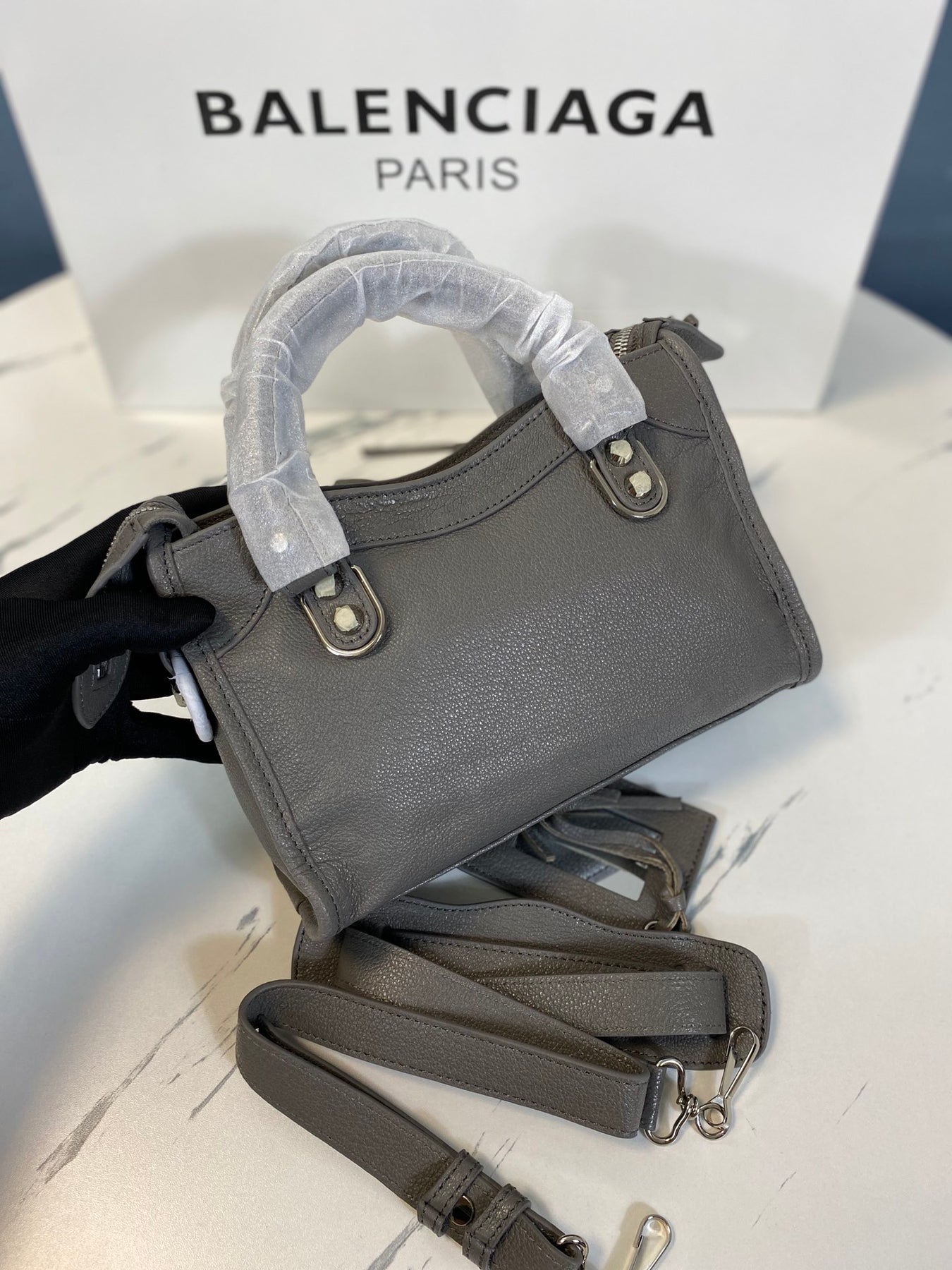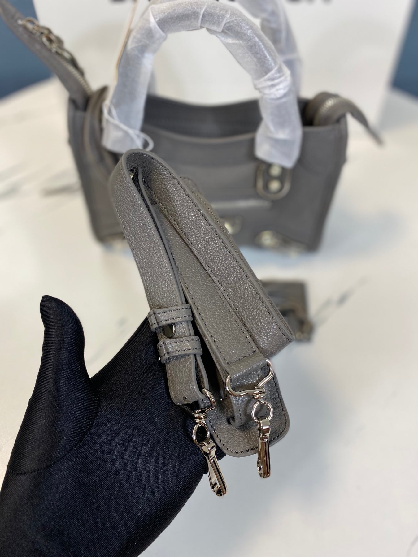 Balenciaga Goatskin Motorcycle Bag - Dark Gray Mini 23cm with Detachable Strap