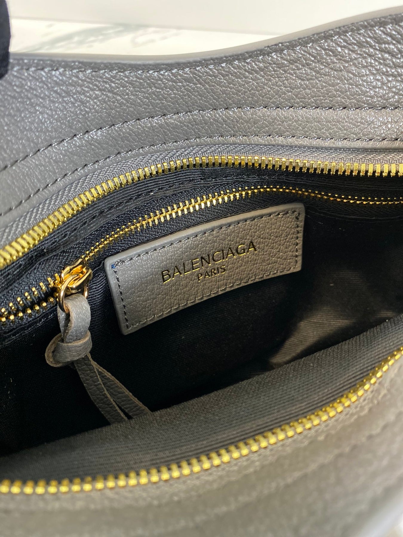 Discover the elegance of the Balenciaga Goatskin Motorcycle Bag, a classic masterpiece crafted from premium quality goatskin. This stylish mini bag, measuring 23cm x 15cm x 9cm, features a luxurious gold buckle and comes in a sophisticated dark gray hue. Designed for versatility, it includes an adjustable, detachable shoulder strap with a total length of approximately 100cm, allowing for convenient hand-held or crossbody wear. Each bag also includes a cosmetic mirror for on-the-go touch-ups. Available in three sizes, this motorcycle bag exemplifies durability and sophistication, making it the perfect accessory for fashion-forward individuals.