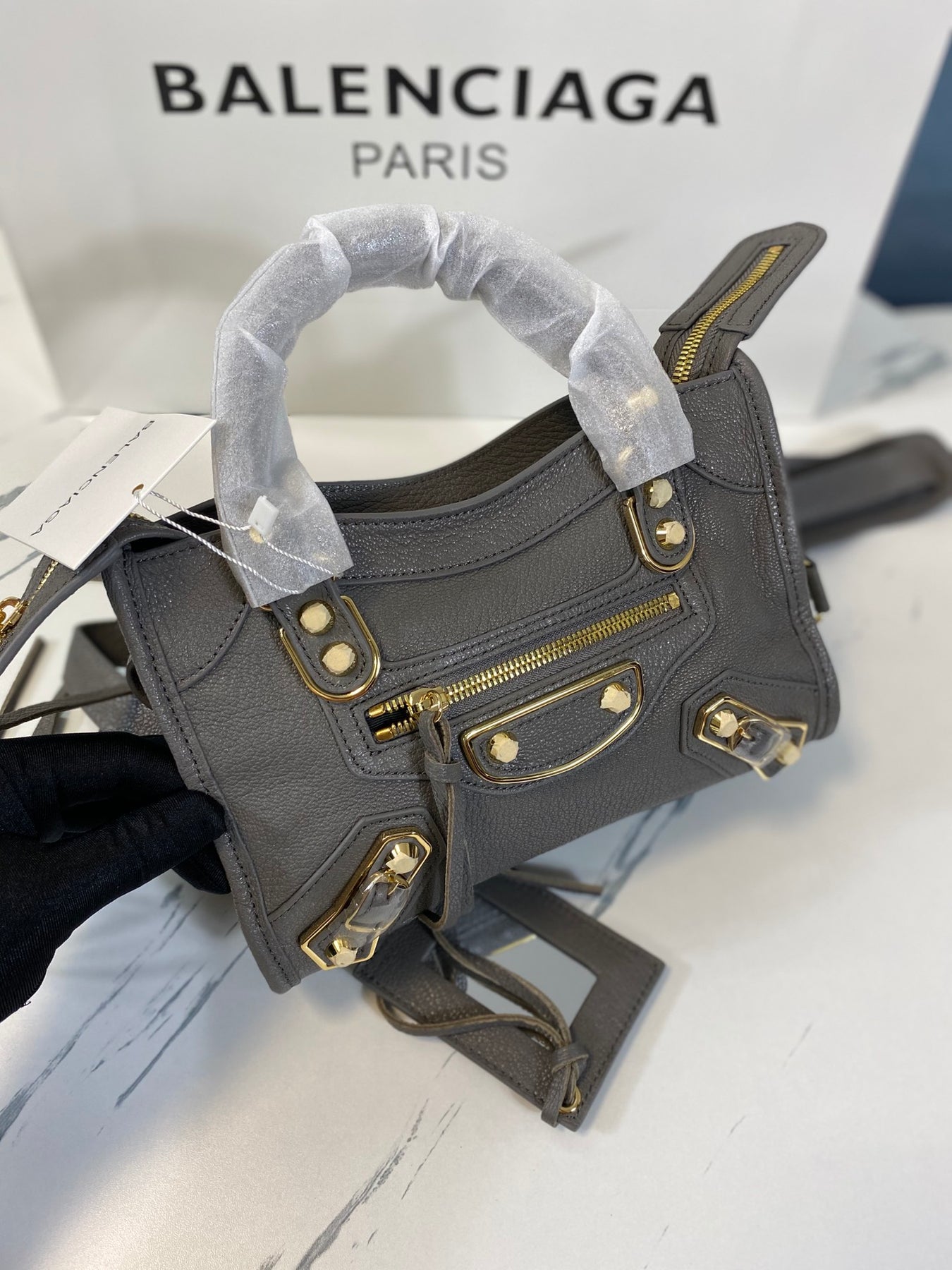 Balenciaga Goatskin Motorcycle Bag - Mini 23cm in Dark Gray
