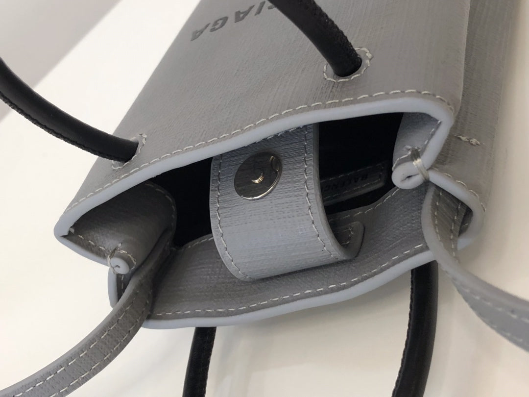 Discover the Balenciaga Gray Cowhide Shopping Bag, a stylish and versatile accessory perfect for effortlessly elevating your look. This compact design is tailored to hold your mobile phone and essentials securely, making it an ideal choice for on-the-go lifestyles. With dimensions of 18×4.5×12cm, it strikes the perfect balance between practicality and chic aesthetics.