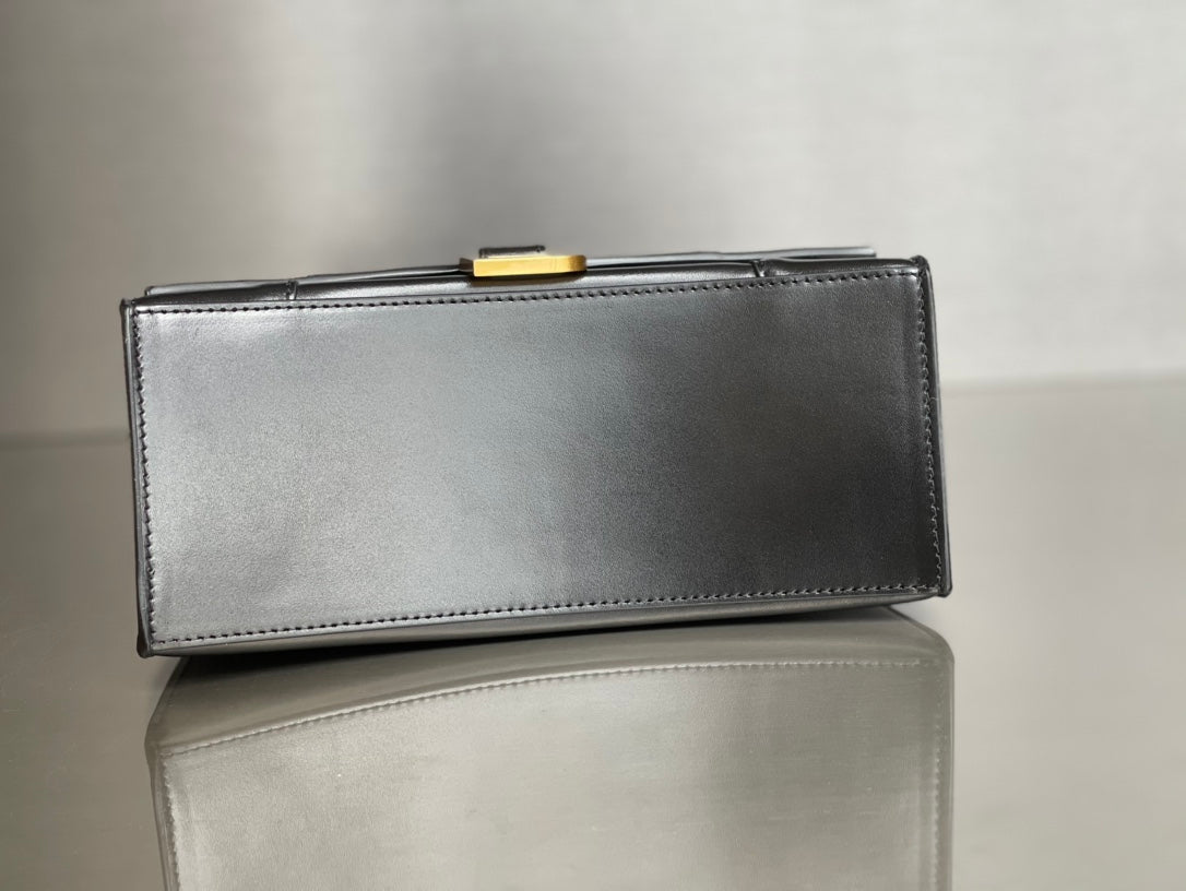 Introducing the Balenciaga Hourglass Bag in a stunning black crocodile pattern with a luxurious gold buckle, available in size S (23cm). This brand-new arrival is crafted from genuine Italian cowhide featuring a meticulously detailed crocodile texture, offering a sophisticated touch that highlights your impeccable taste.