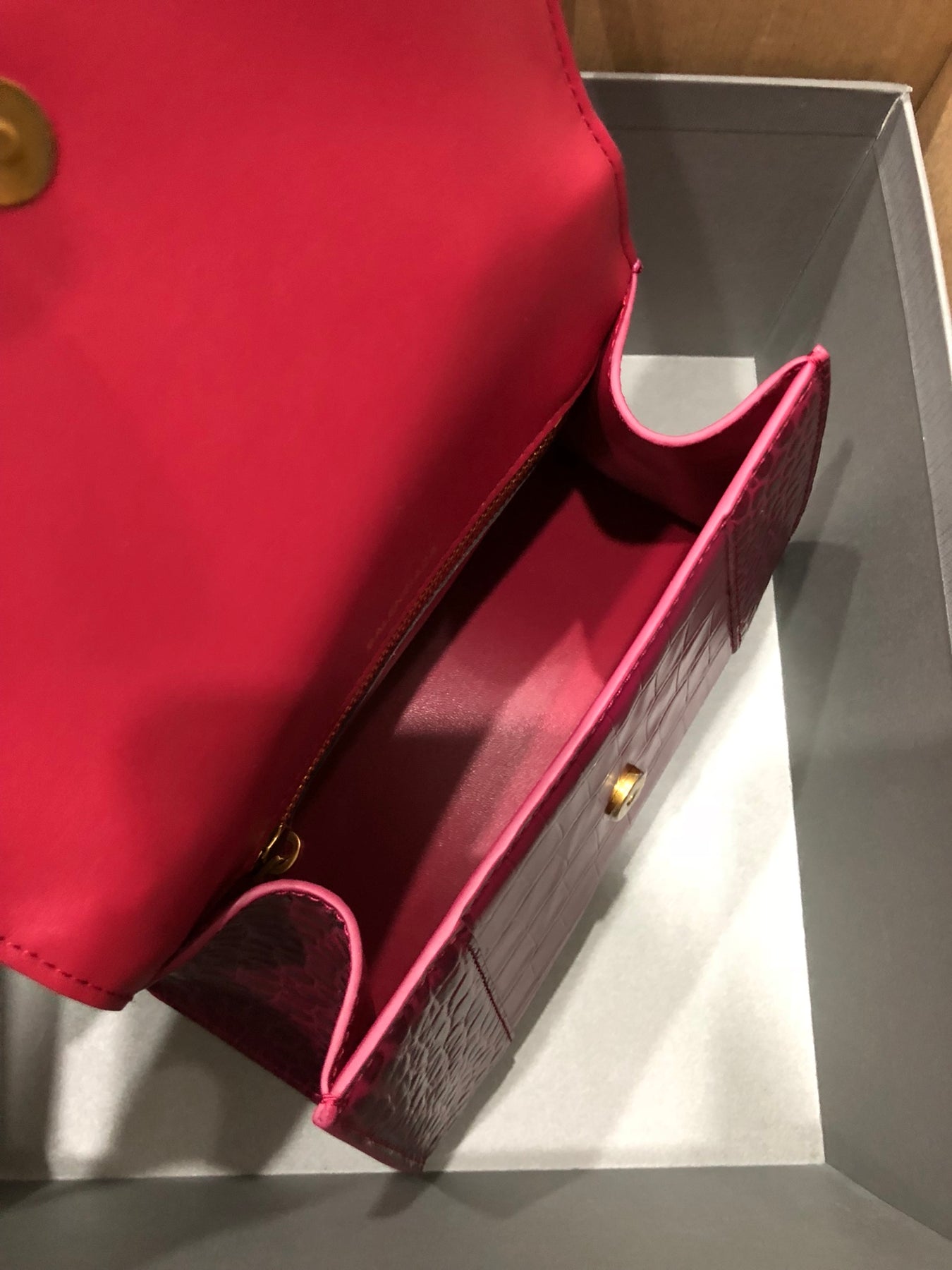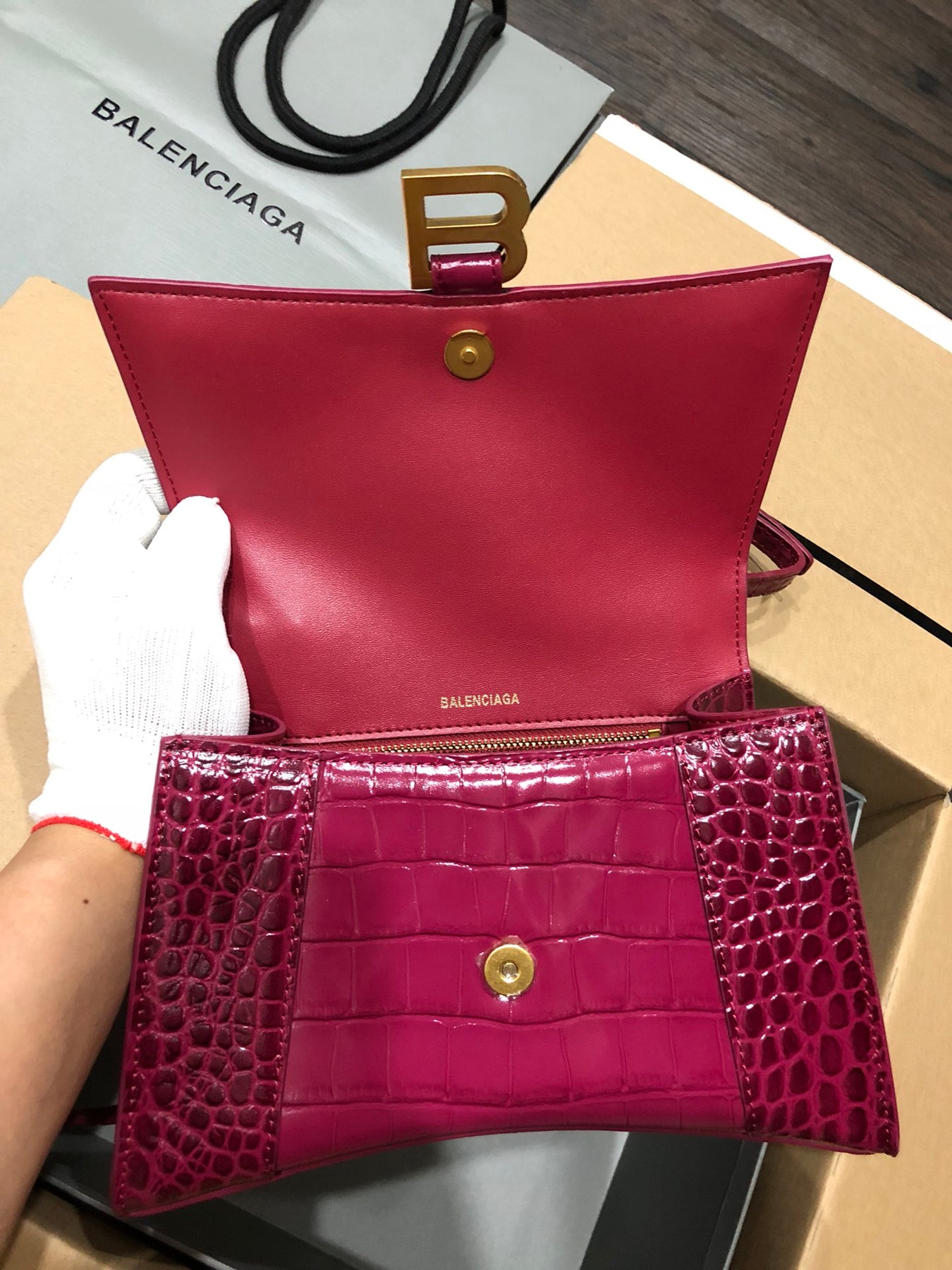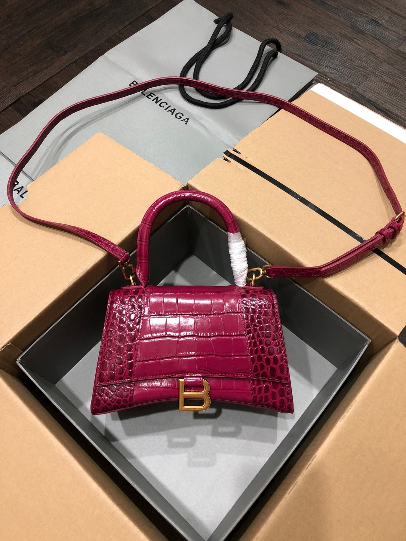 Introducing the Balenciaga Hourglass Bag in stunning cherry red crocodile leather, featuring an elegant gold buckle. This upgraded top-grade version comes complete with full VIP packaging, ensuring a premium unboxing experience.