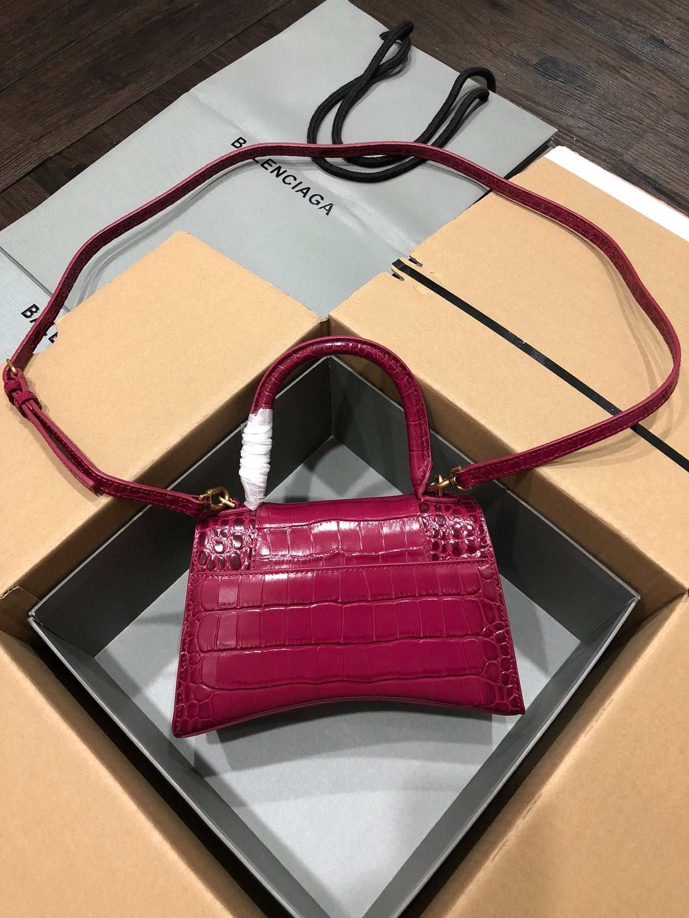 Balenciaga Hourglass Bag - Cherry Red Crocodile Leather with Gold Buckle
