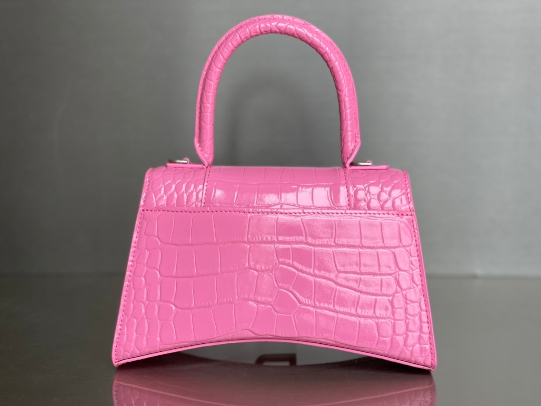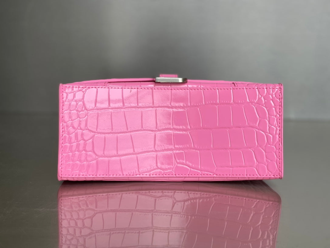 Balenciaga Hourglass Bag - Crocodile Pattern - Pink with Silver Buckle