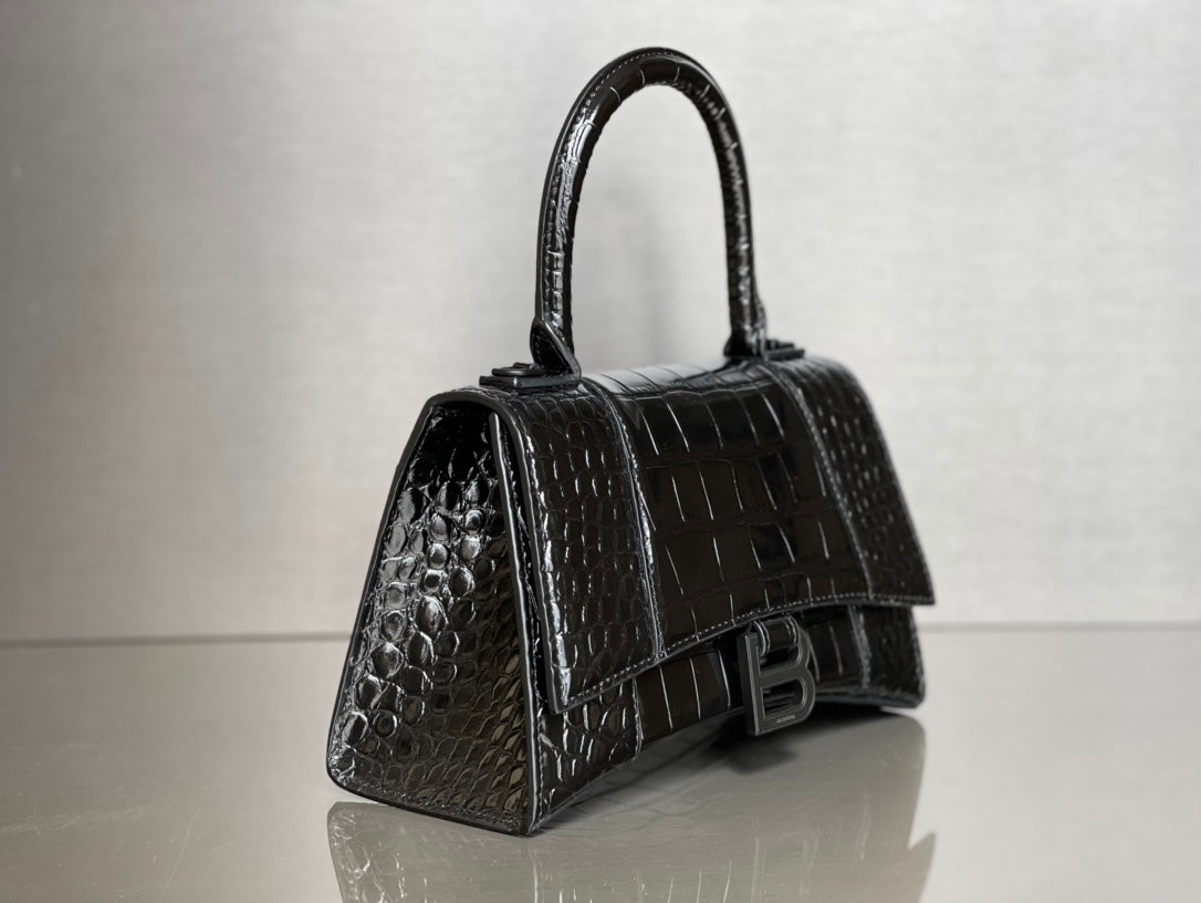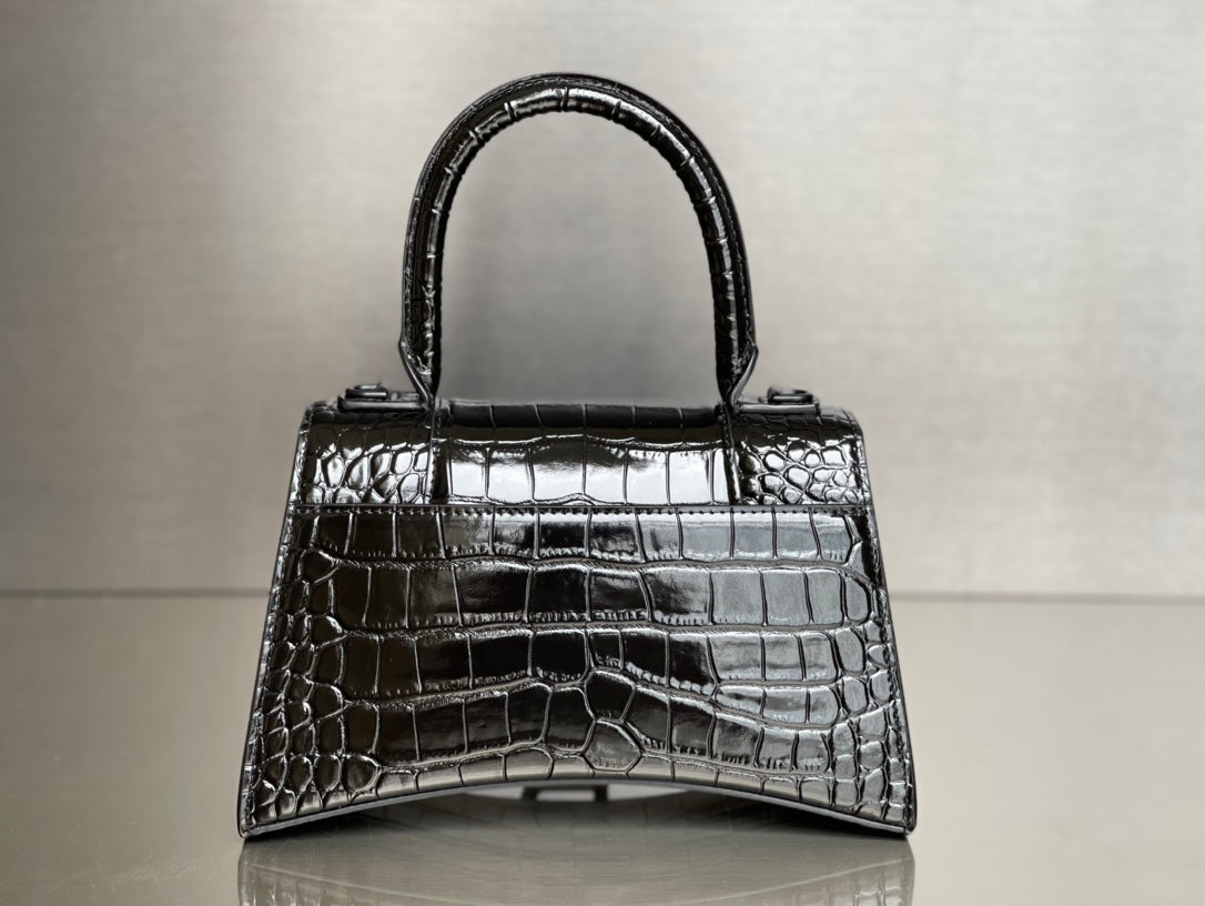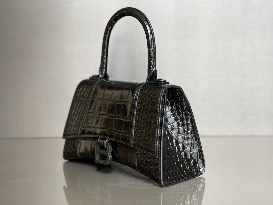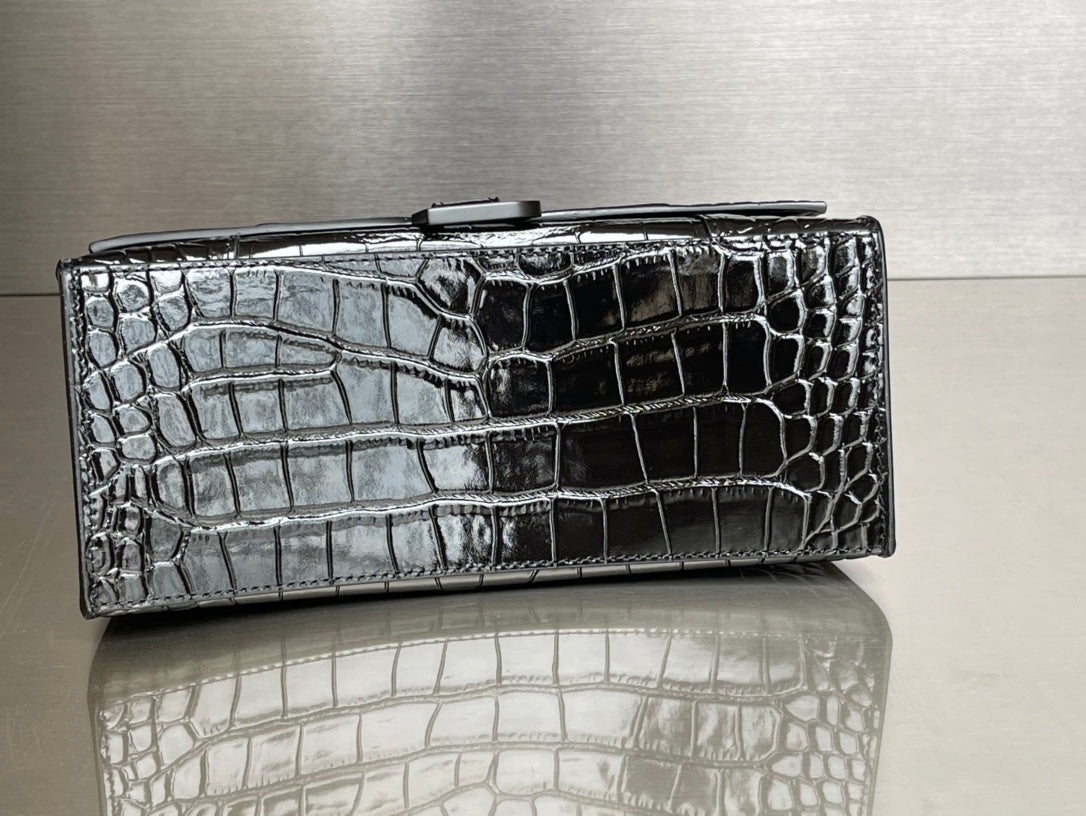 Balenciaga Hourglass Bag in Black Crocodile Pattern - Size S