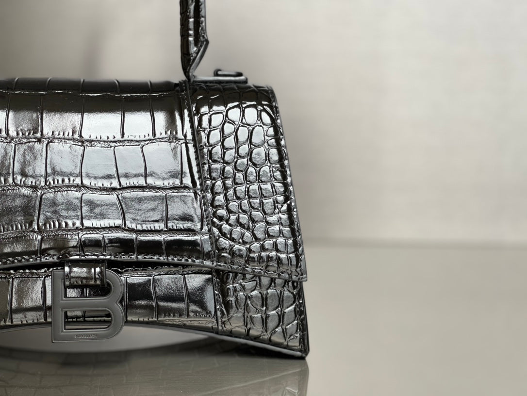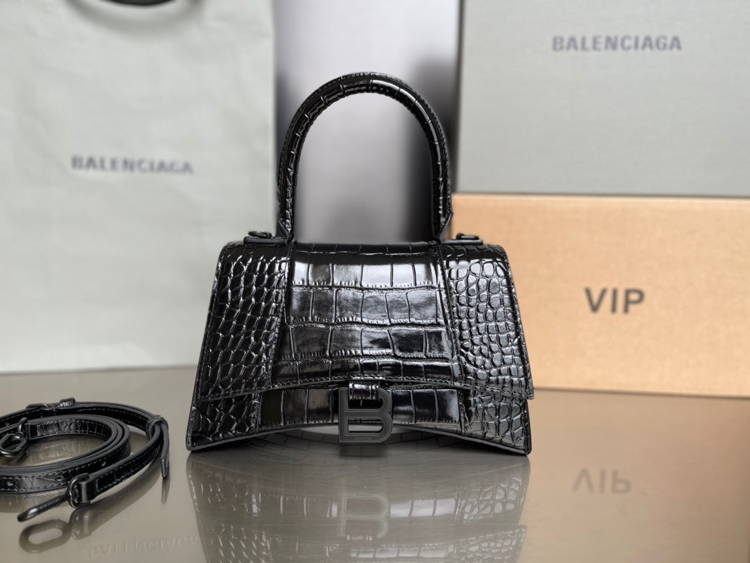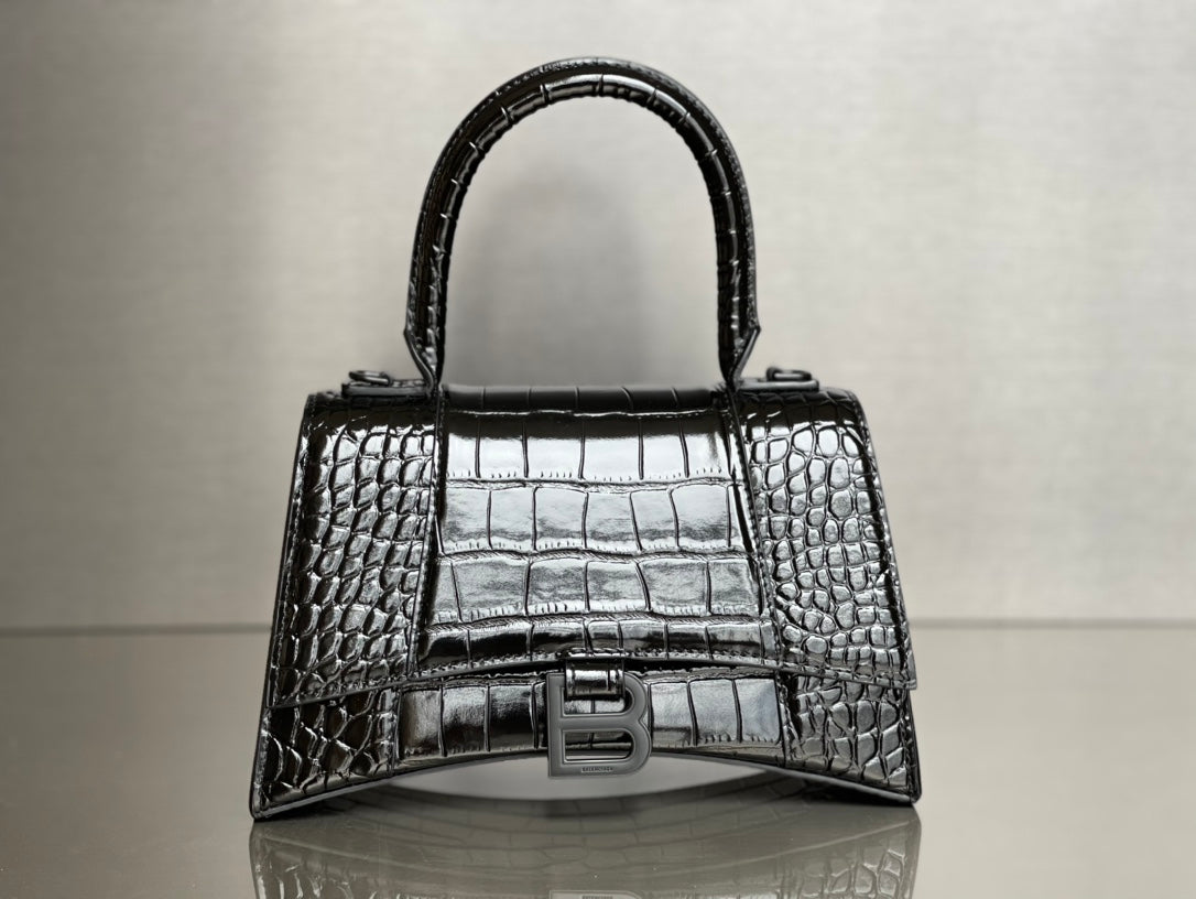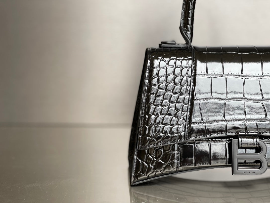 Balenciaga Hourglass Bag in Black Crocodile Pattern - Size S