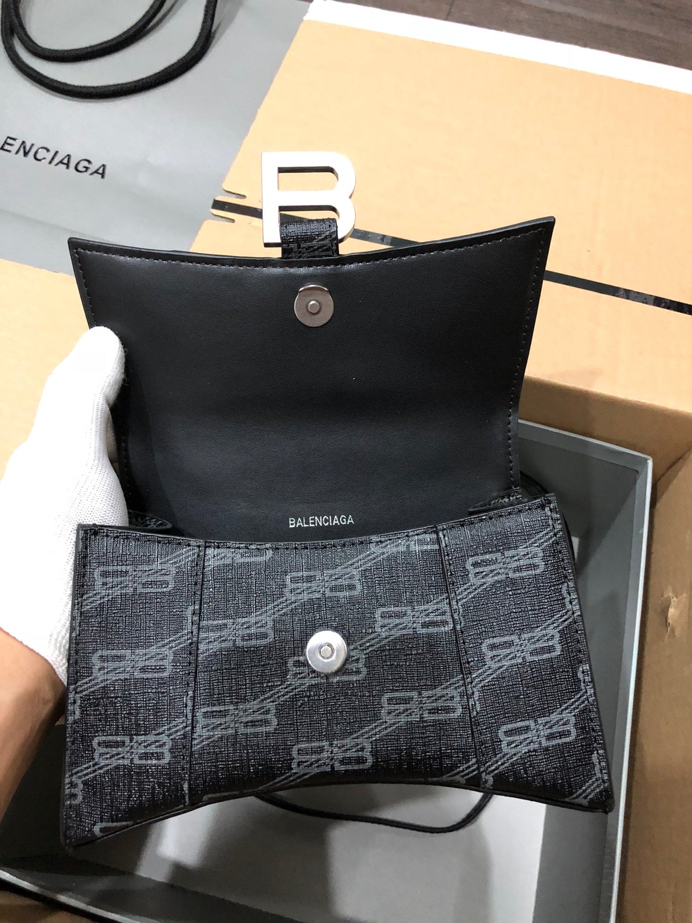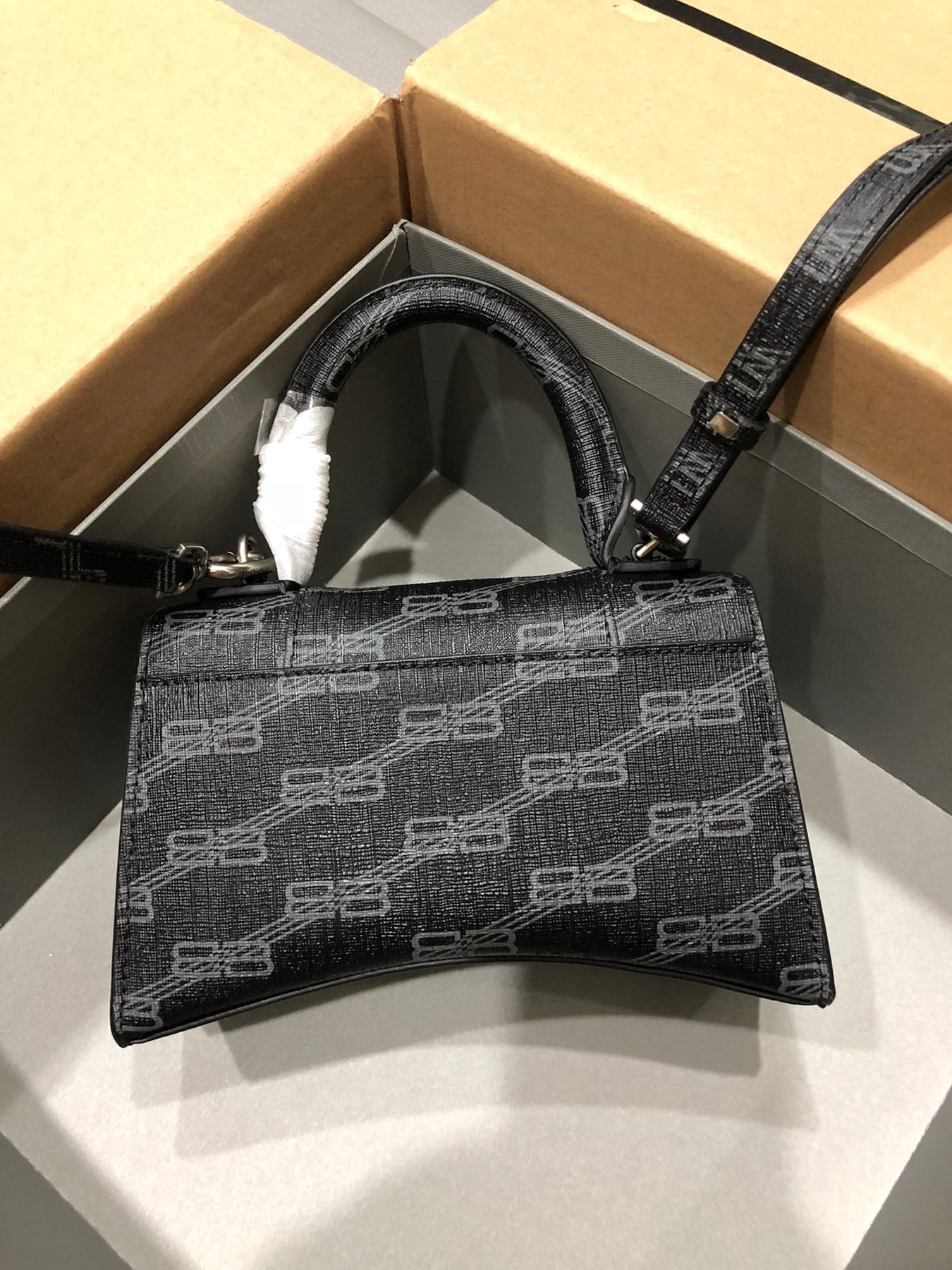 Balenciaga Hourglass Bag - Upgraded Edition with Black Silver Buckle