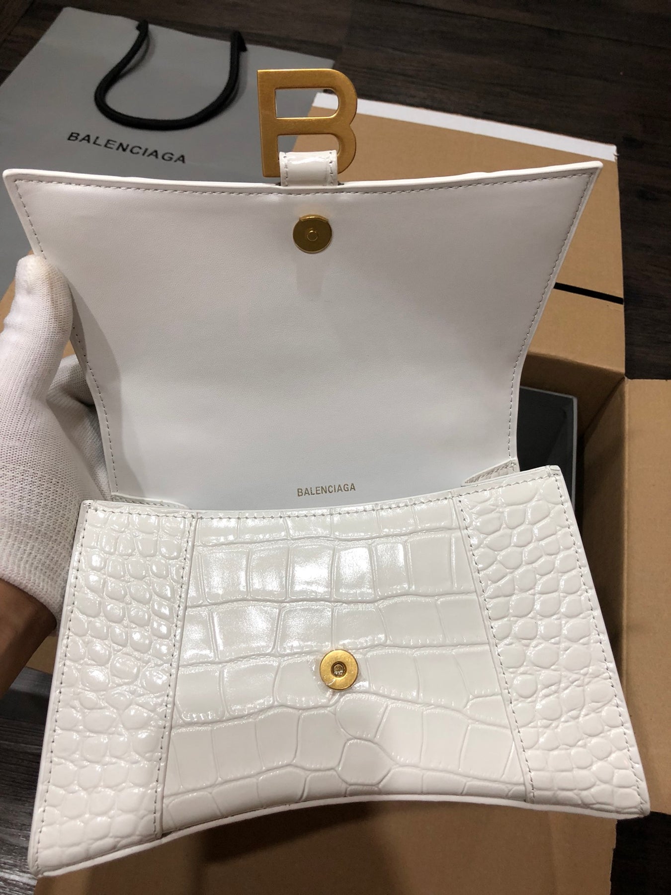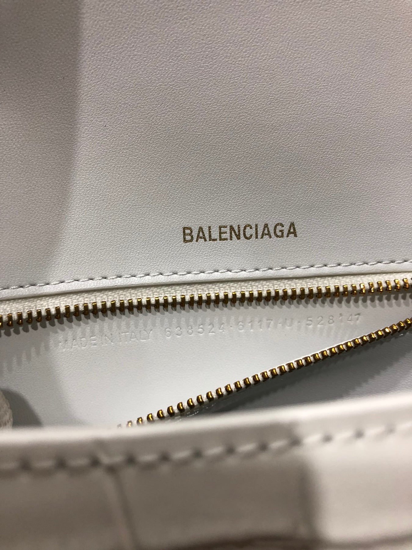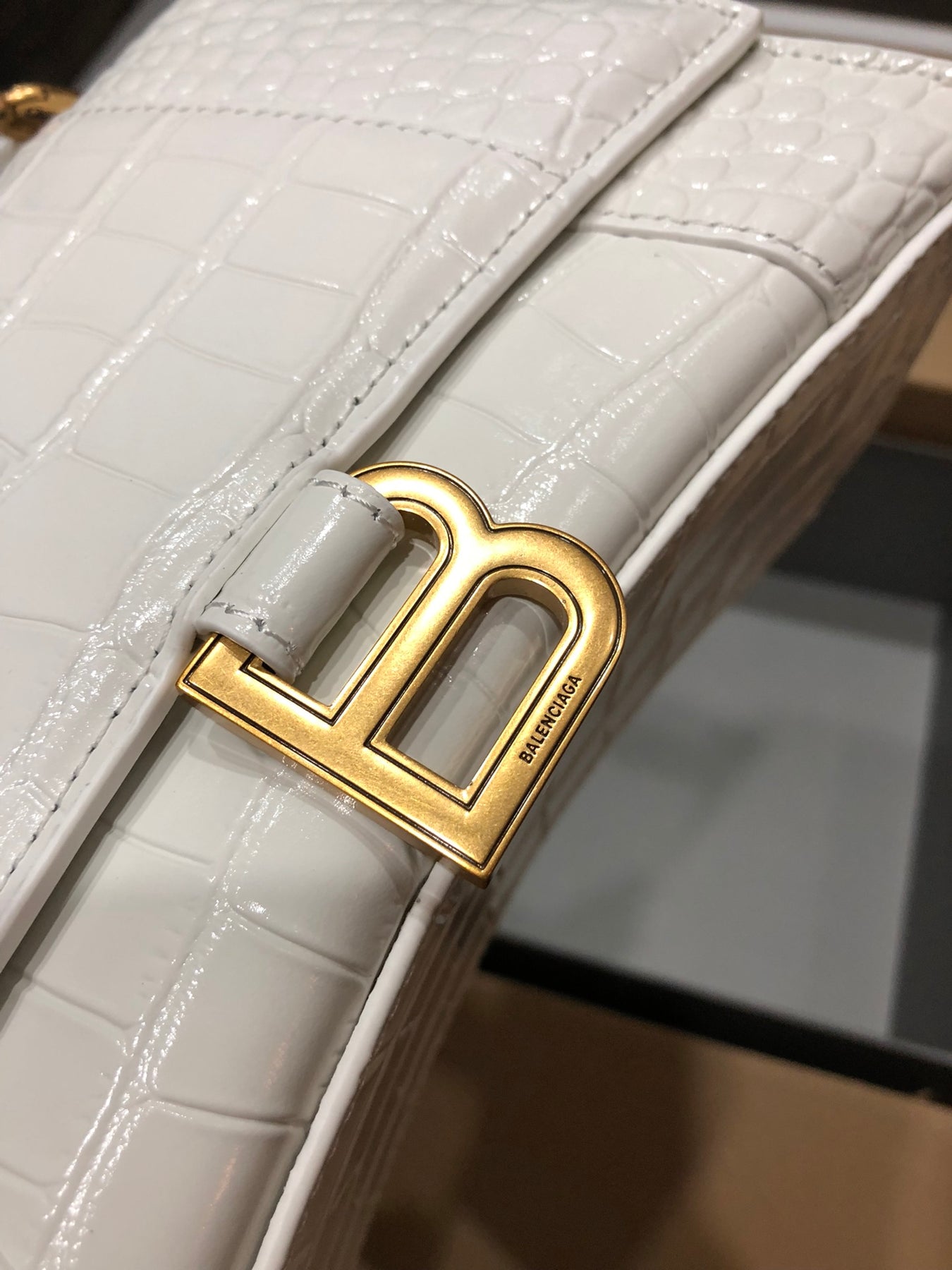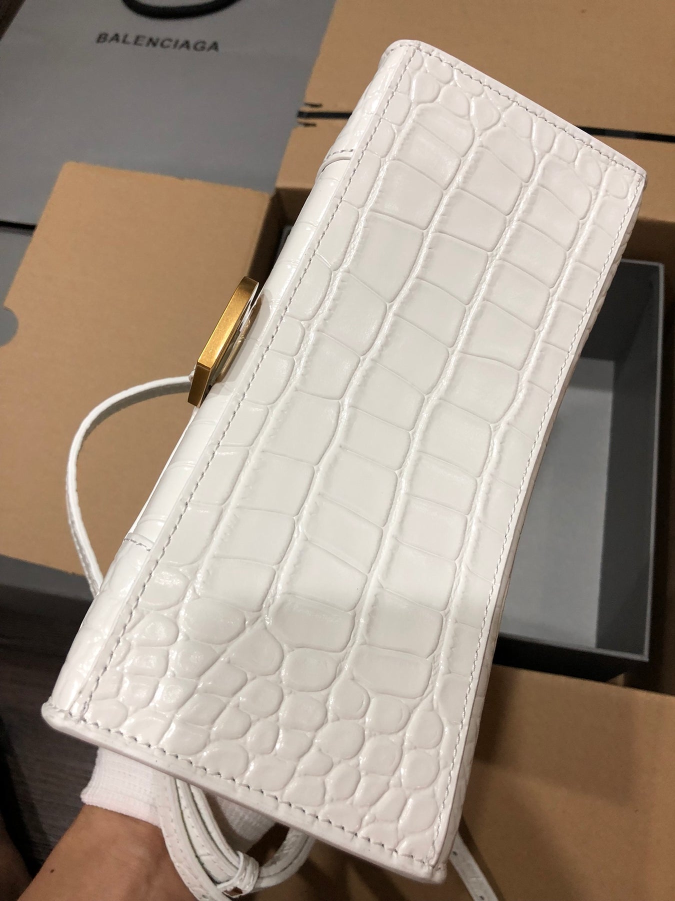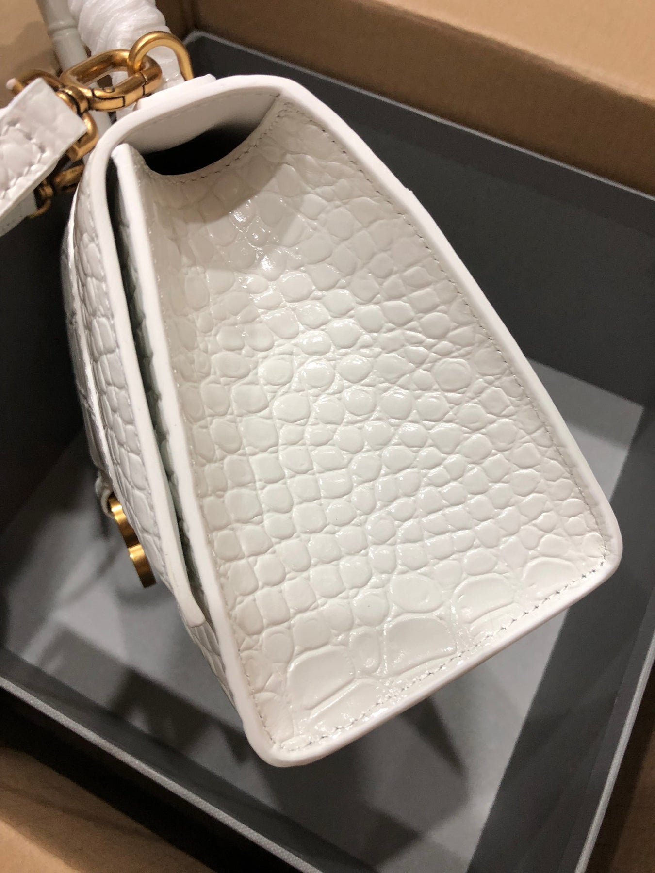 Balenciaga Hourglass Bag with Crocodile Texture and White Gold Buckle