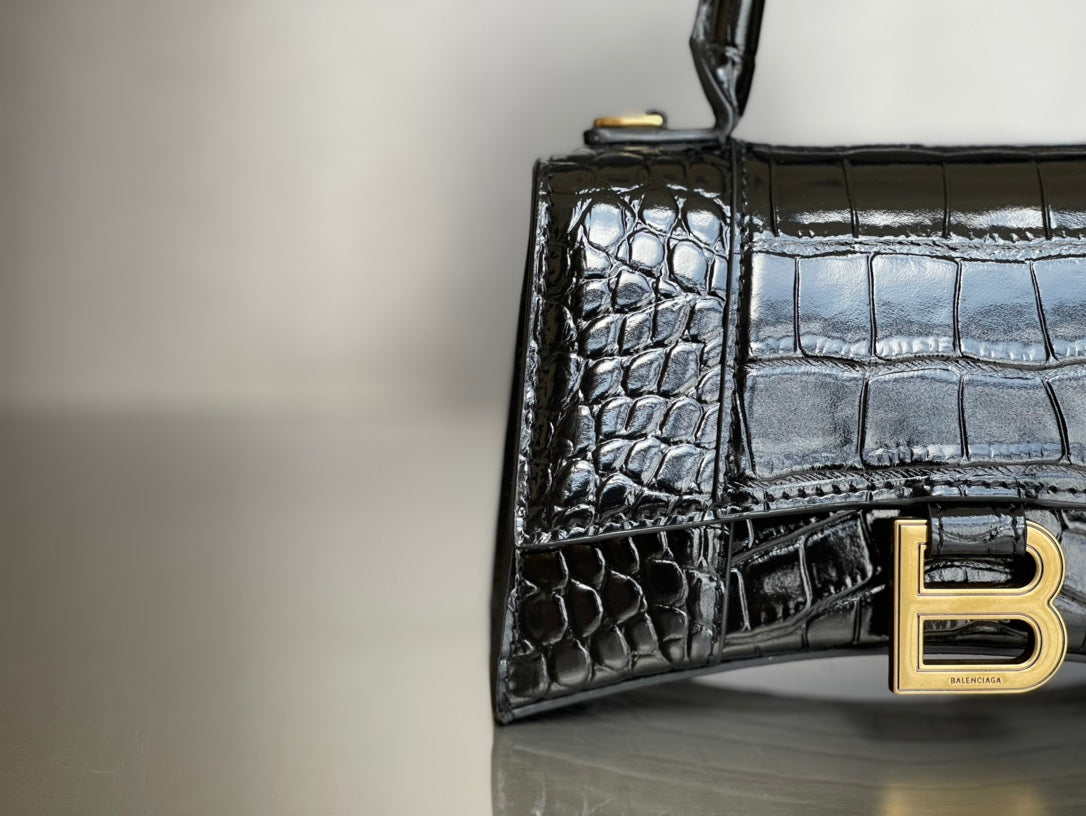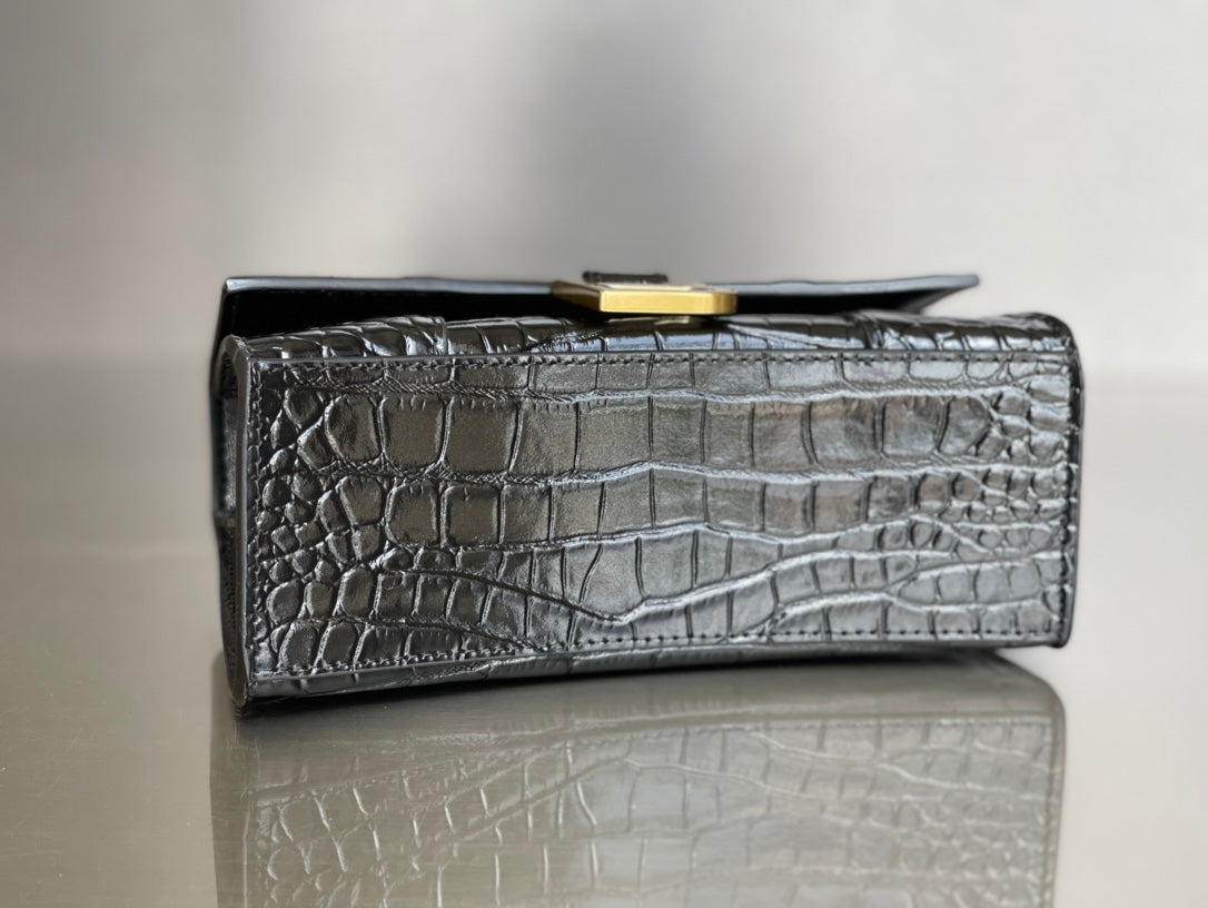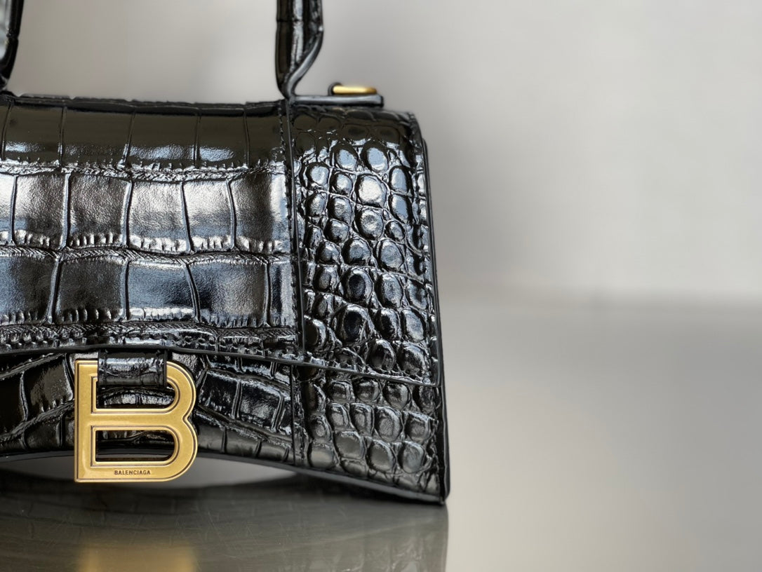 Balenciaga Hourglass Crocodile Pattern XS Bag - Black/Gold Buckle