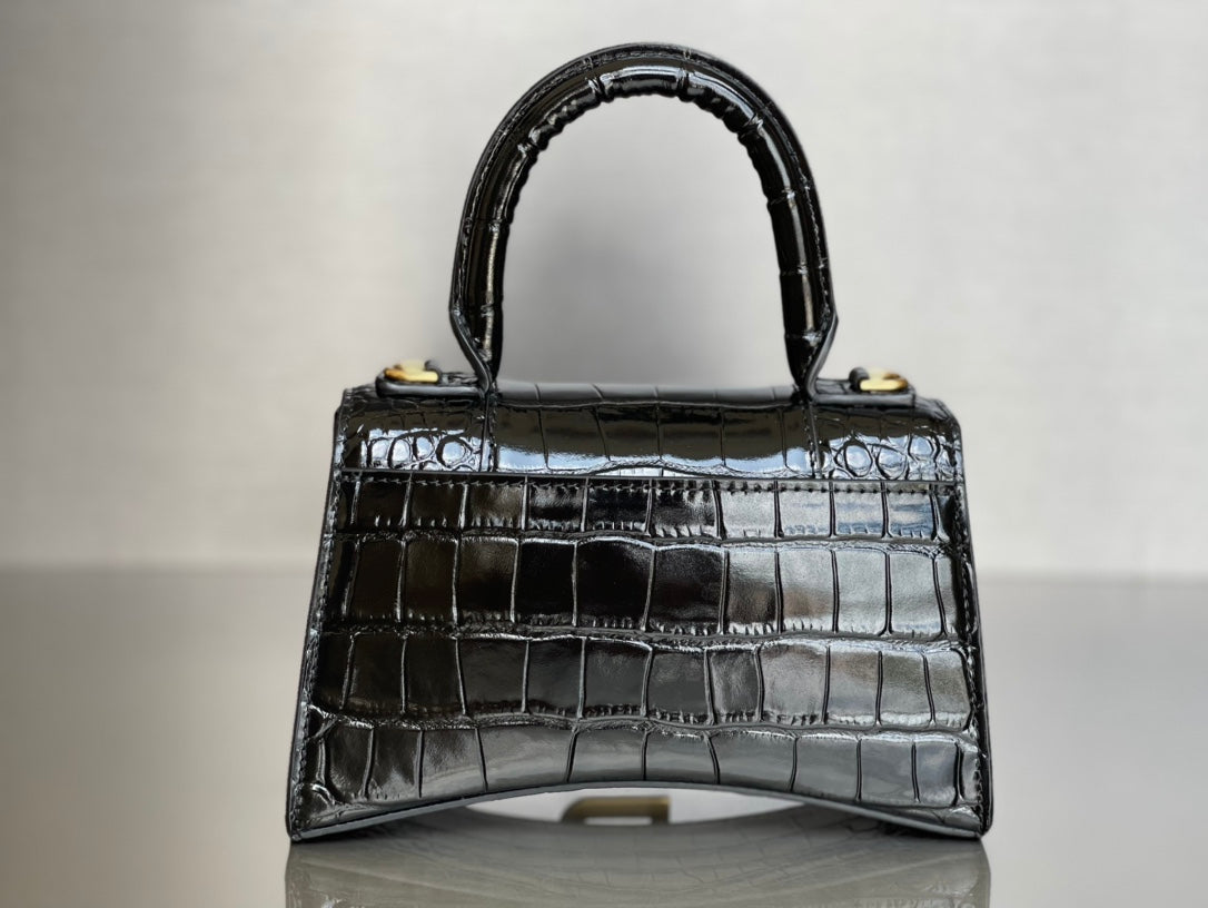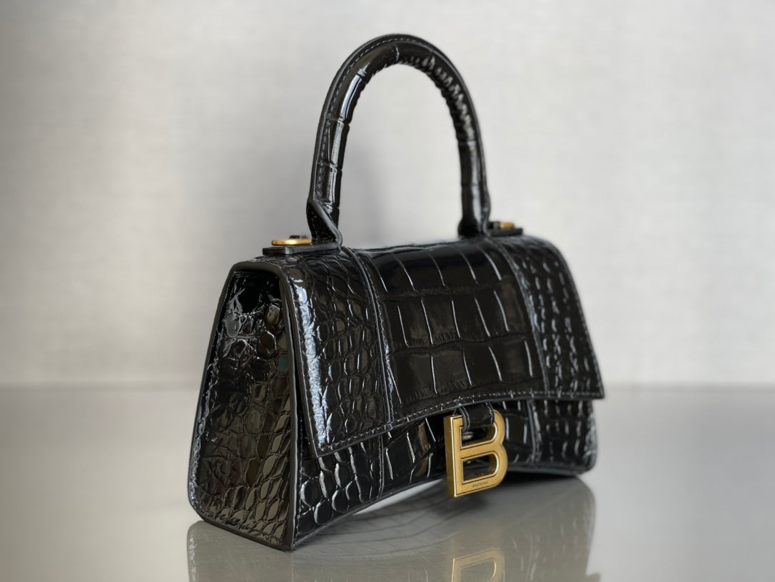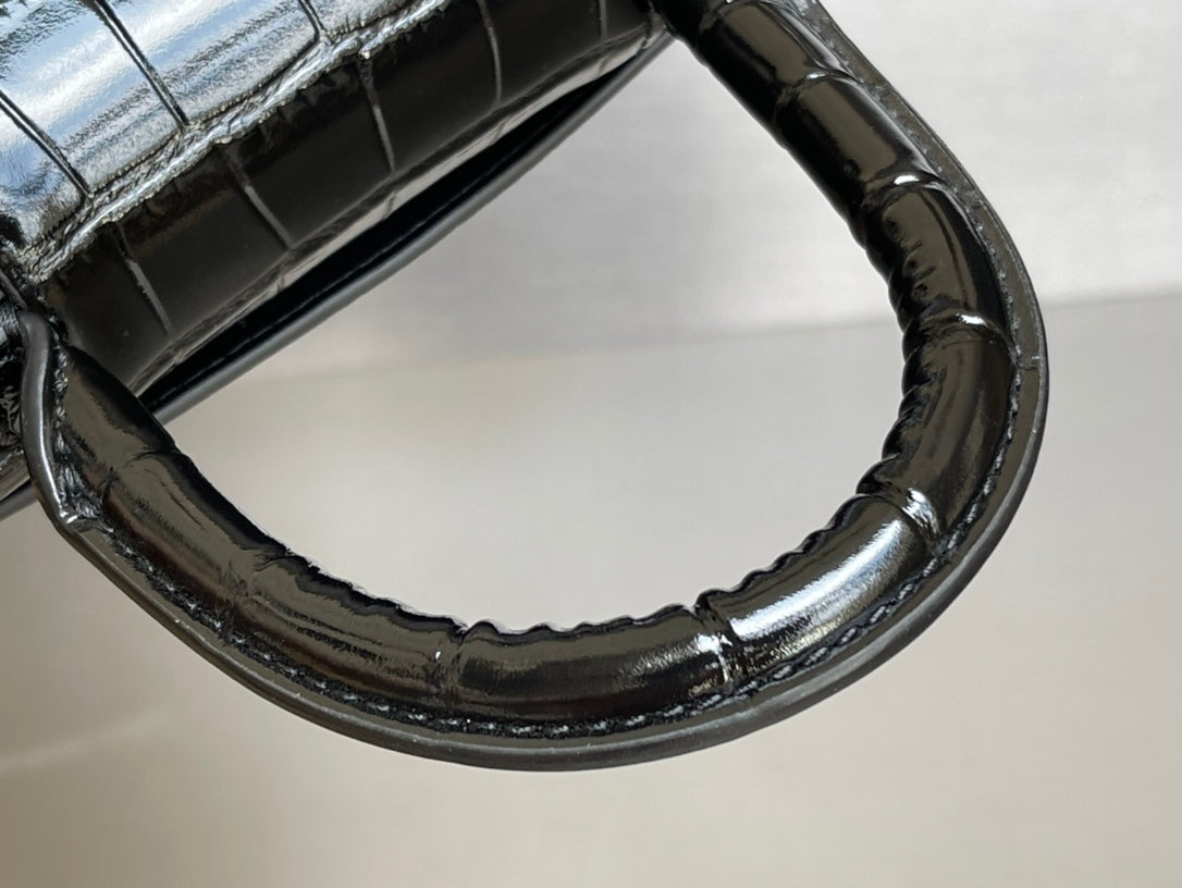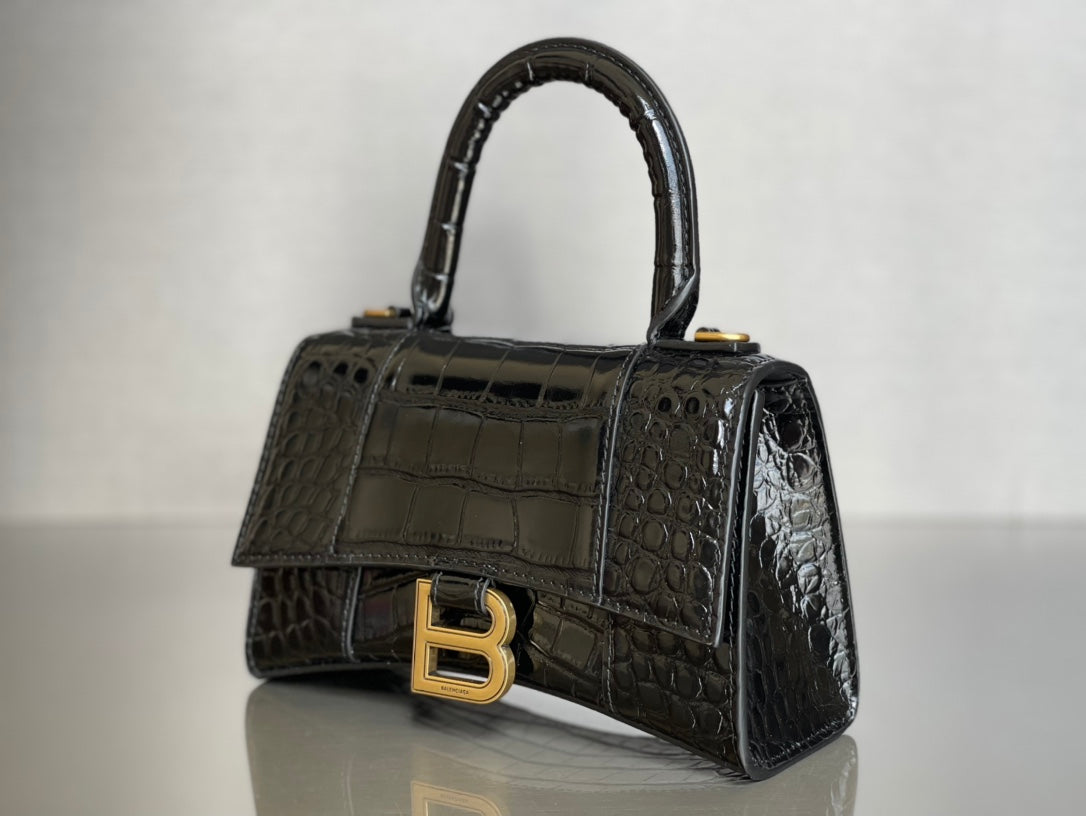 Balenciaga Hourglass Crocodile Pattern XS Bag - Black/Gold Buckle