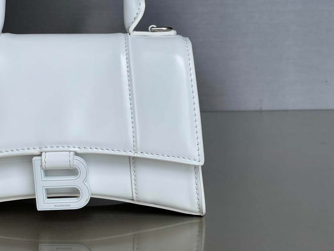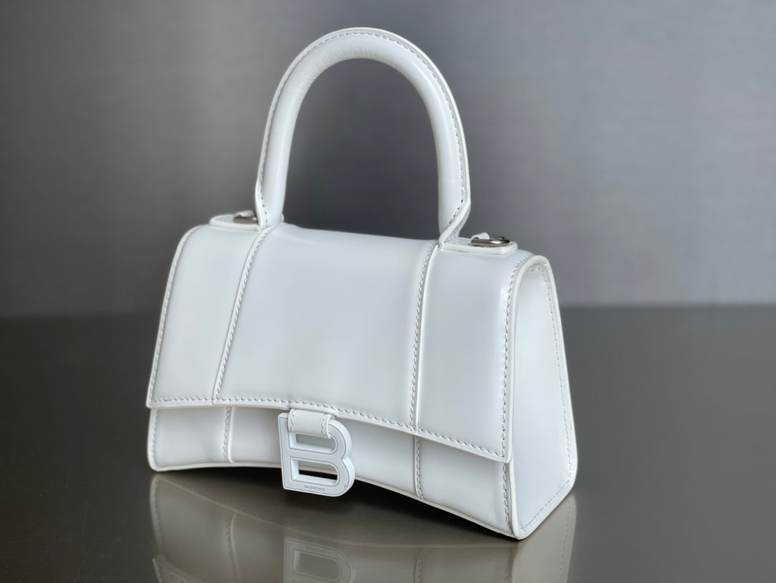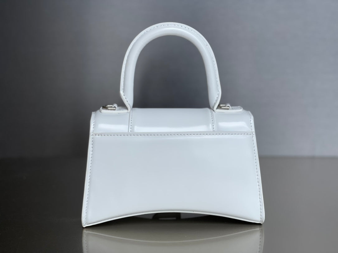 Introducing the Balenciaga Hourglass XS Leather Bag in a classic white and white buckle design. Crafted from premium Italian cowhide, this bag combines luxury with style, ensuring a high-quality touch that reflects your sophisticated taste.