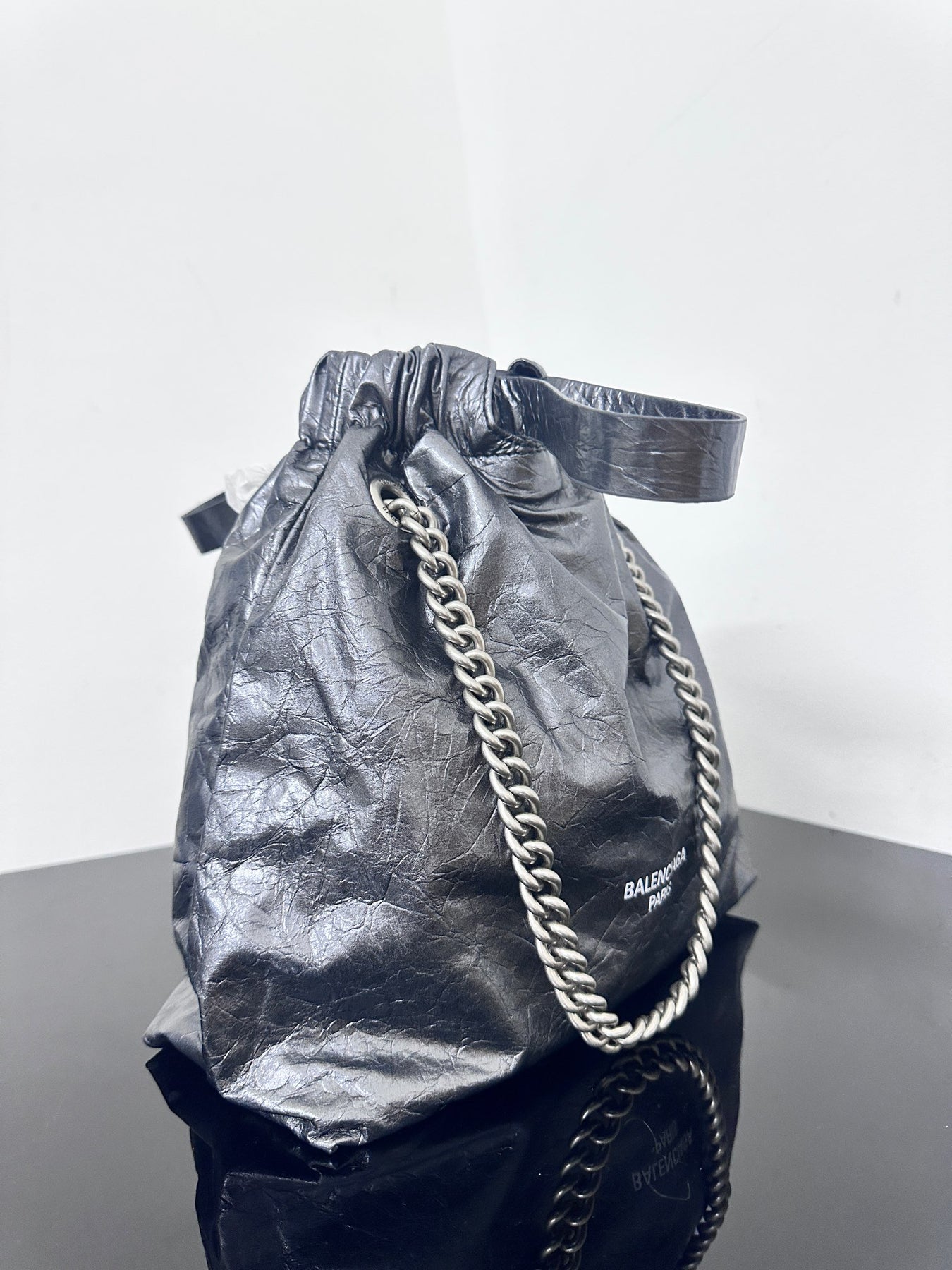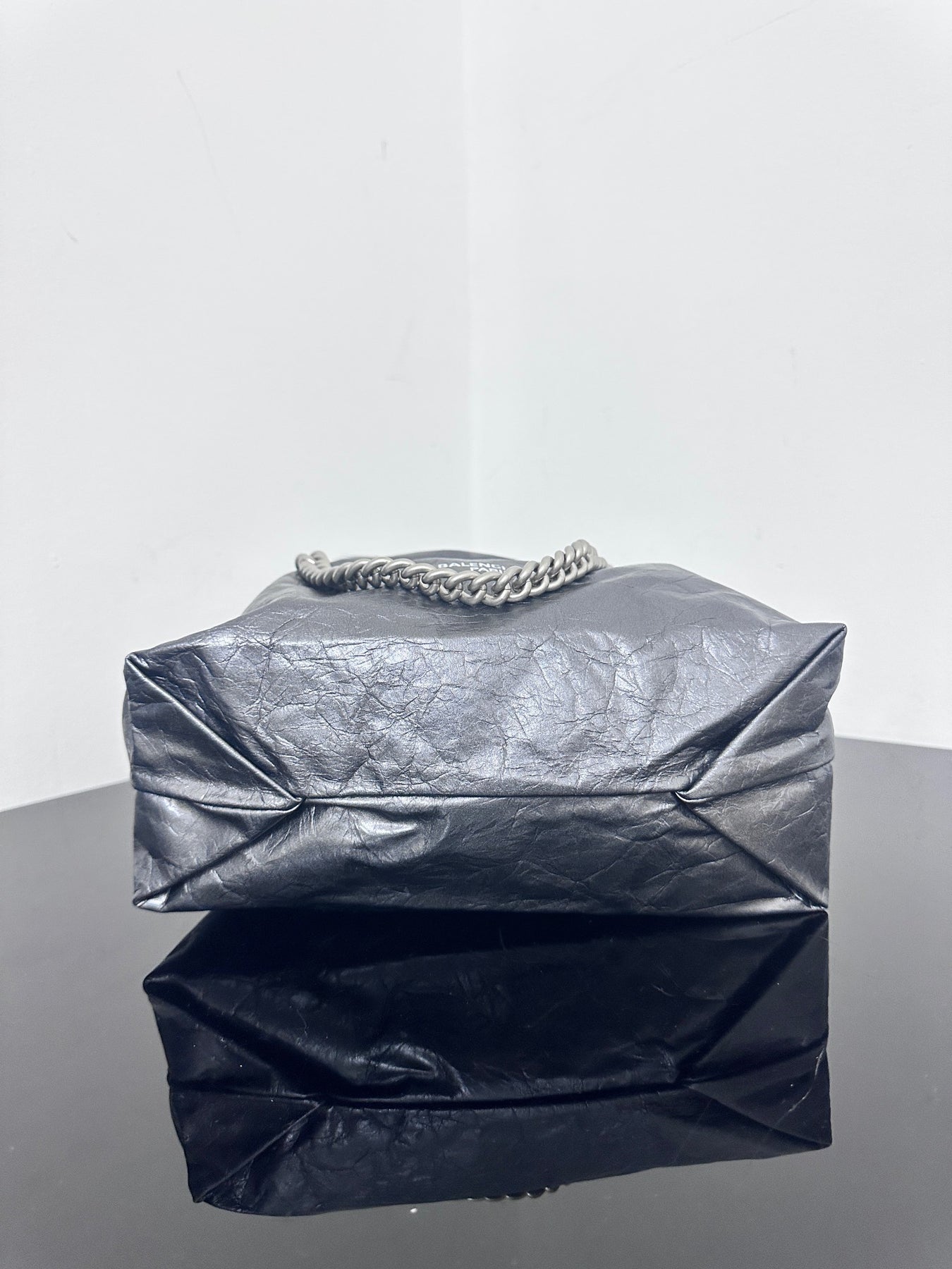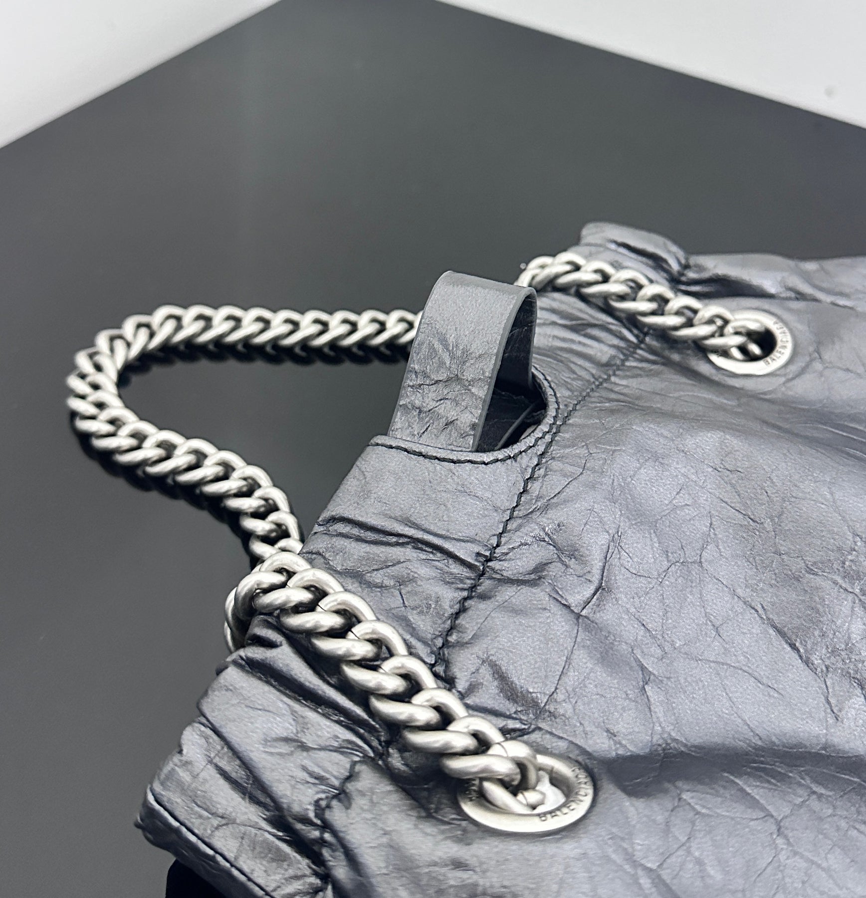 Balenciaga Pleated Crush Tote Bag - Black and Silver Small Size