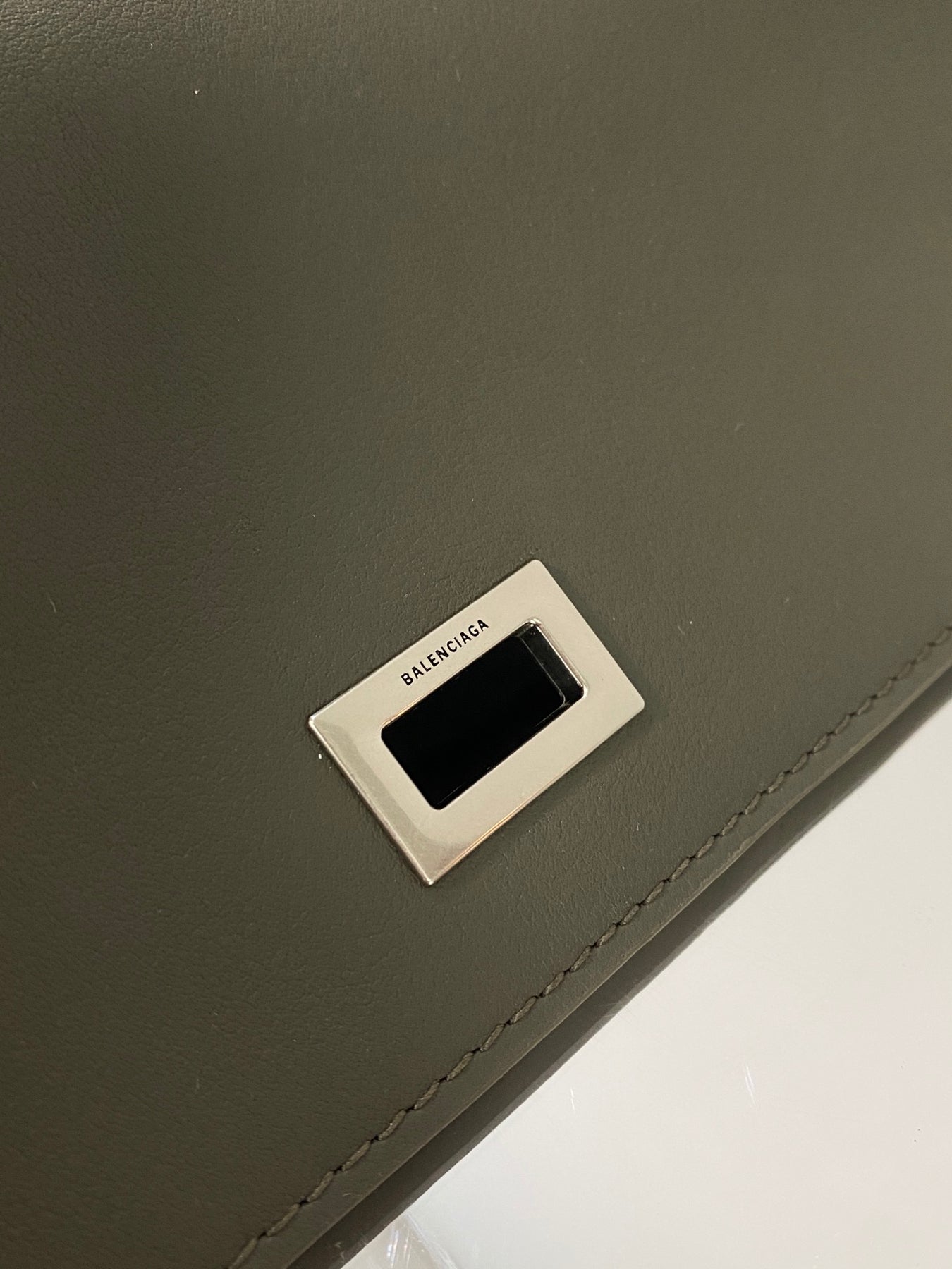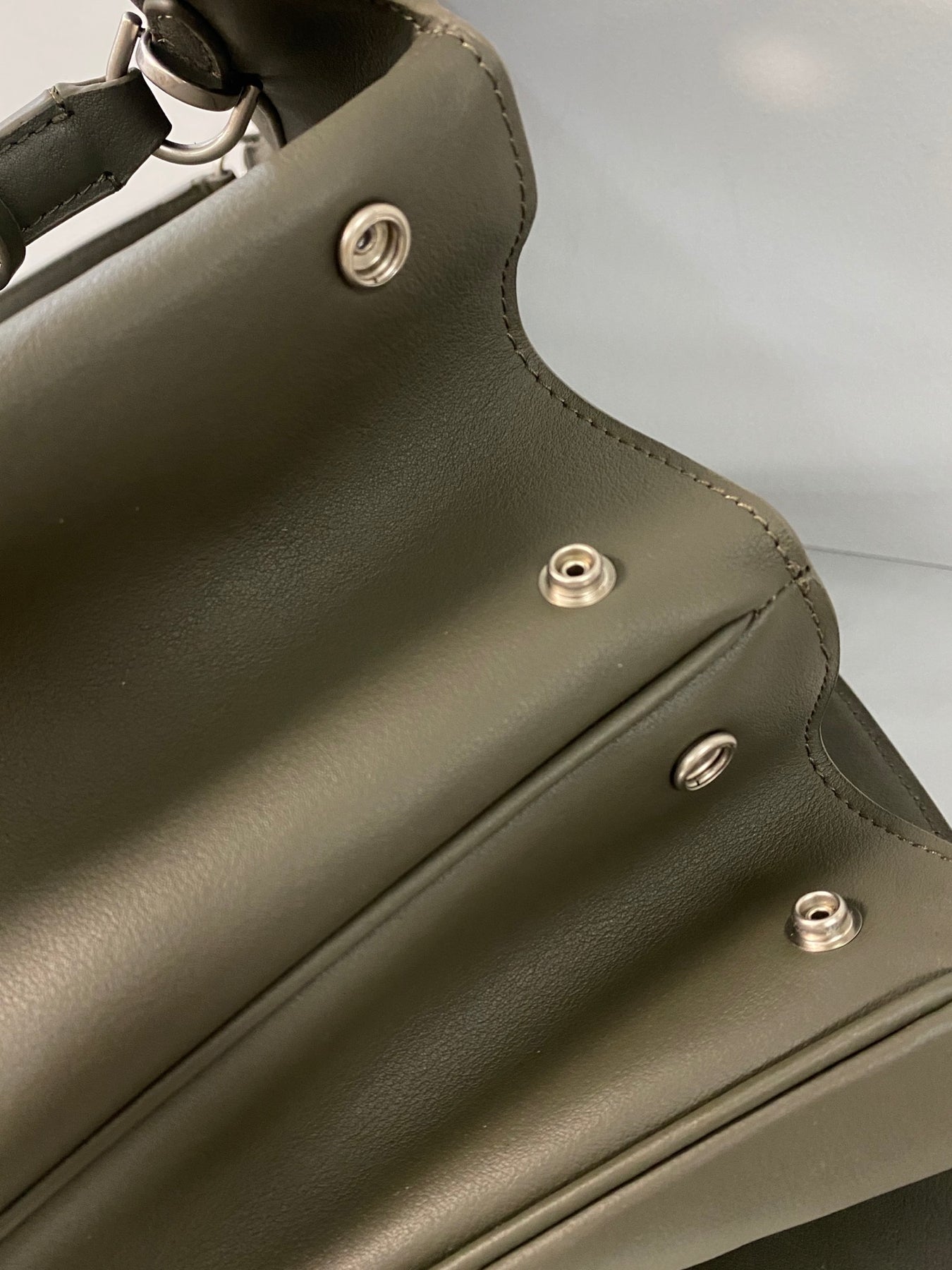 Introducing the Balenciaga Rodeo Bag series, a stunning fusion of craftsmanship and style. This large green silver handbag embodies a contemporary, rebellious aesthetic with its uniquely collapsed silhouette and luxurious leather texture.