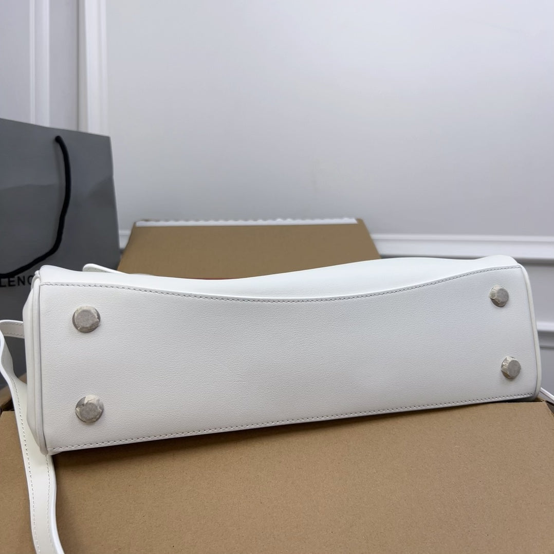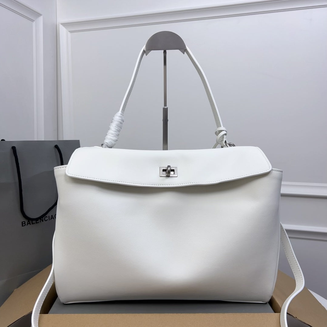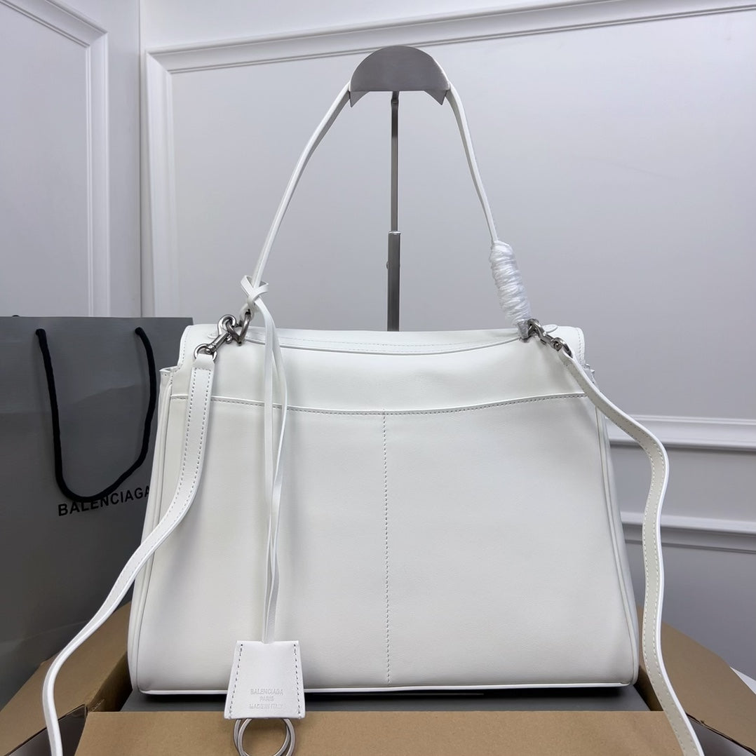 Introducing the Balenciaga Rodeo Bag in Medium, featuring an elegant white and silver buckle for a sophisticated touch. This stunning handbag is the epitome of contemporary style, effortlessly combining comfort with high fashion.