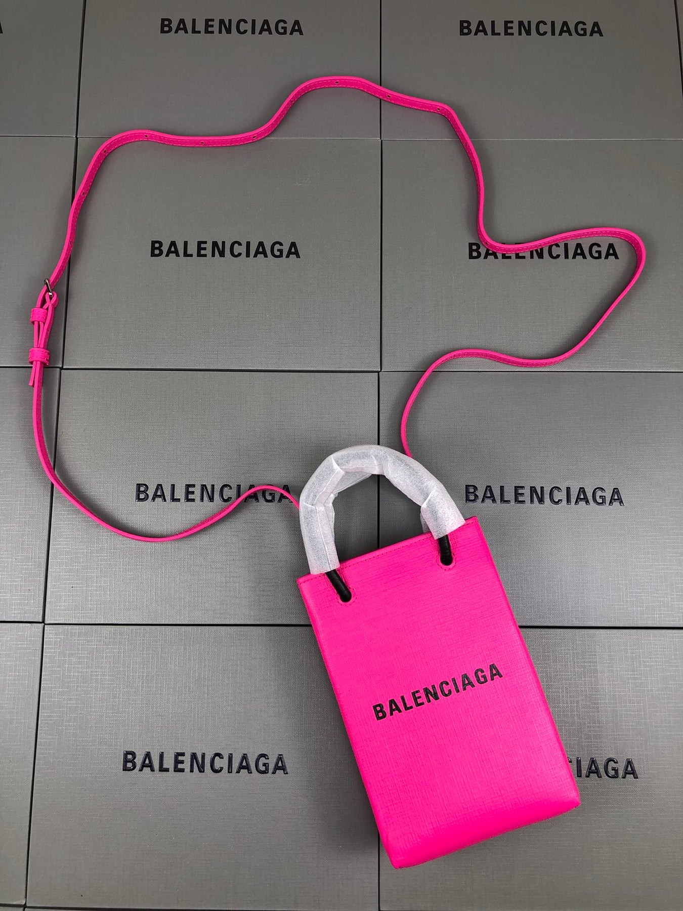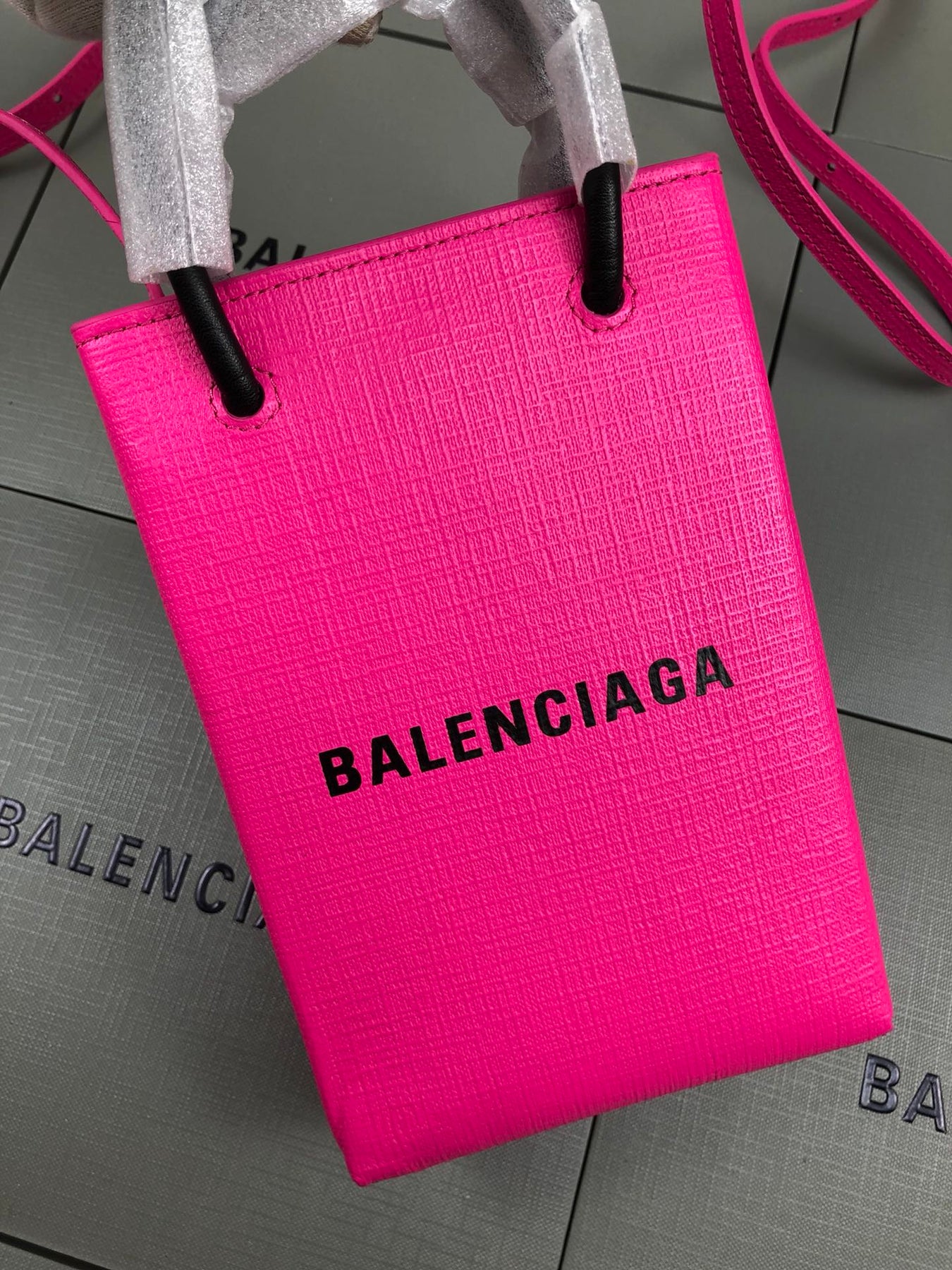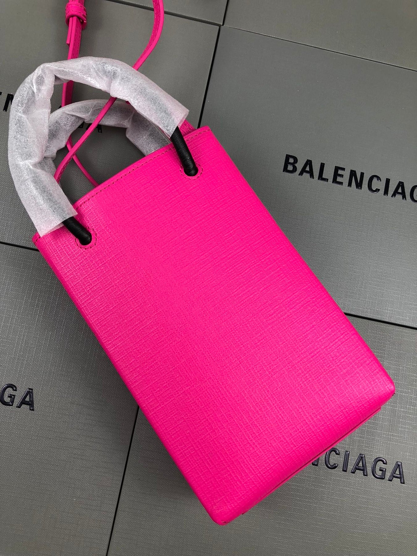 Balenciaga Rose Red Cowhide Shopping Bag - Mobile Phone Holder
