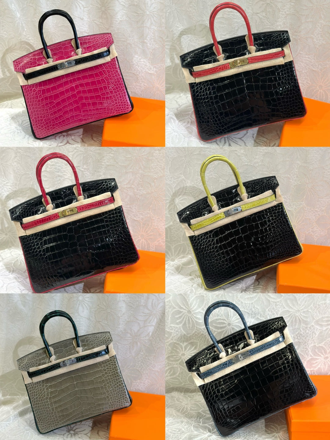 Elevate your style with the Birkin 25 Glossy American Leather Handbag, featuring exquisite color matching for a sophisticated finish. Crafted from high-quality glossy leather, this handbag combines functionality with luxury, making it the perfect accessory for any occasion. Its timeless design and spacious interior ensure you can carry your essentials with elegance and ease. Make a statement with this iconic piece that embodies both fashion and durability. Perfect for the modern woman who values quality and style.