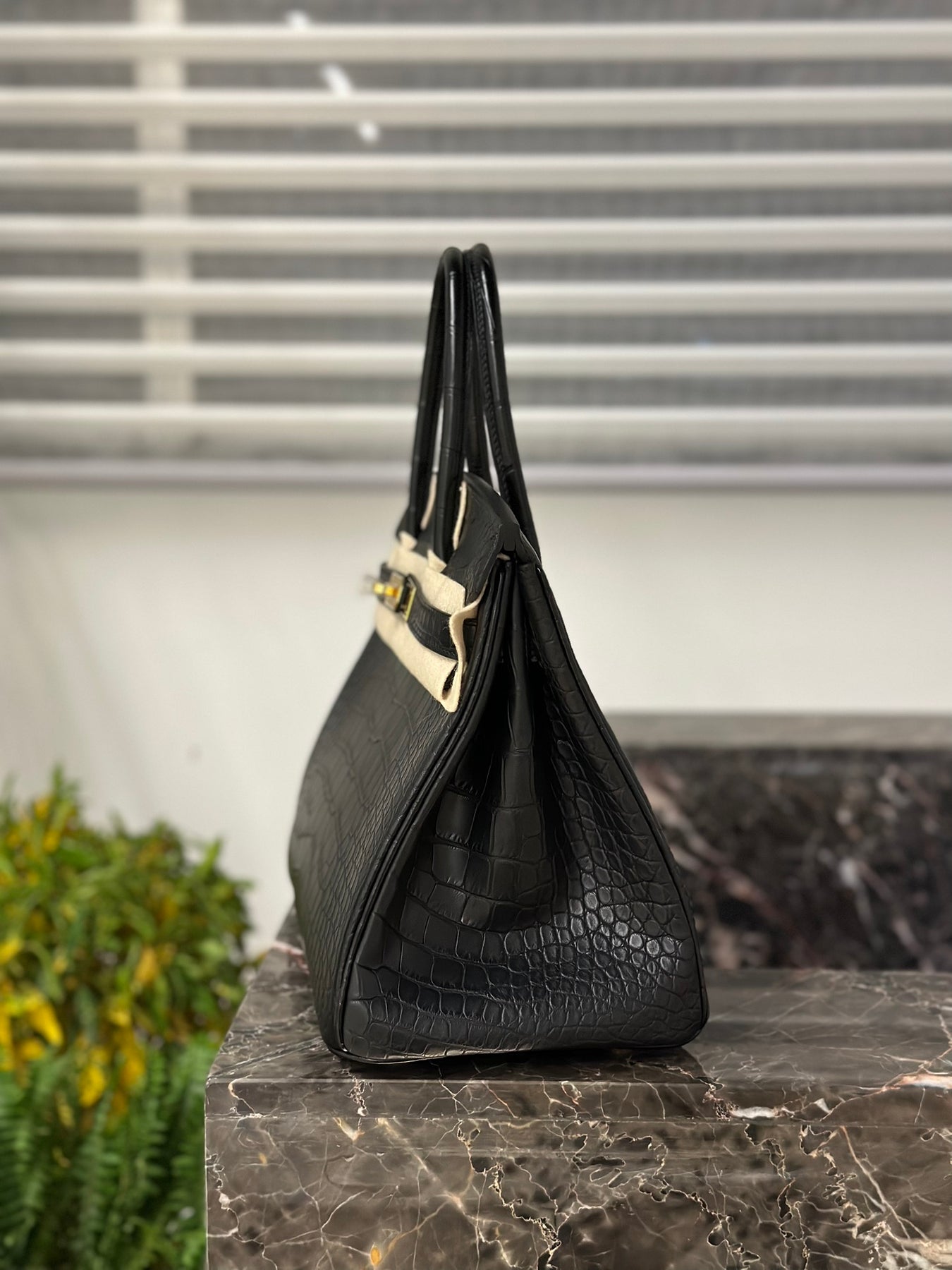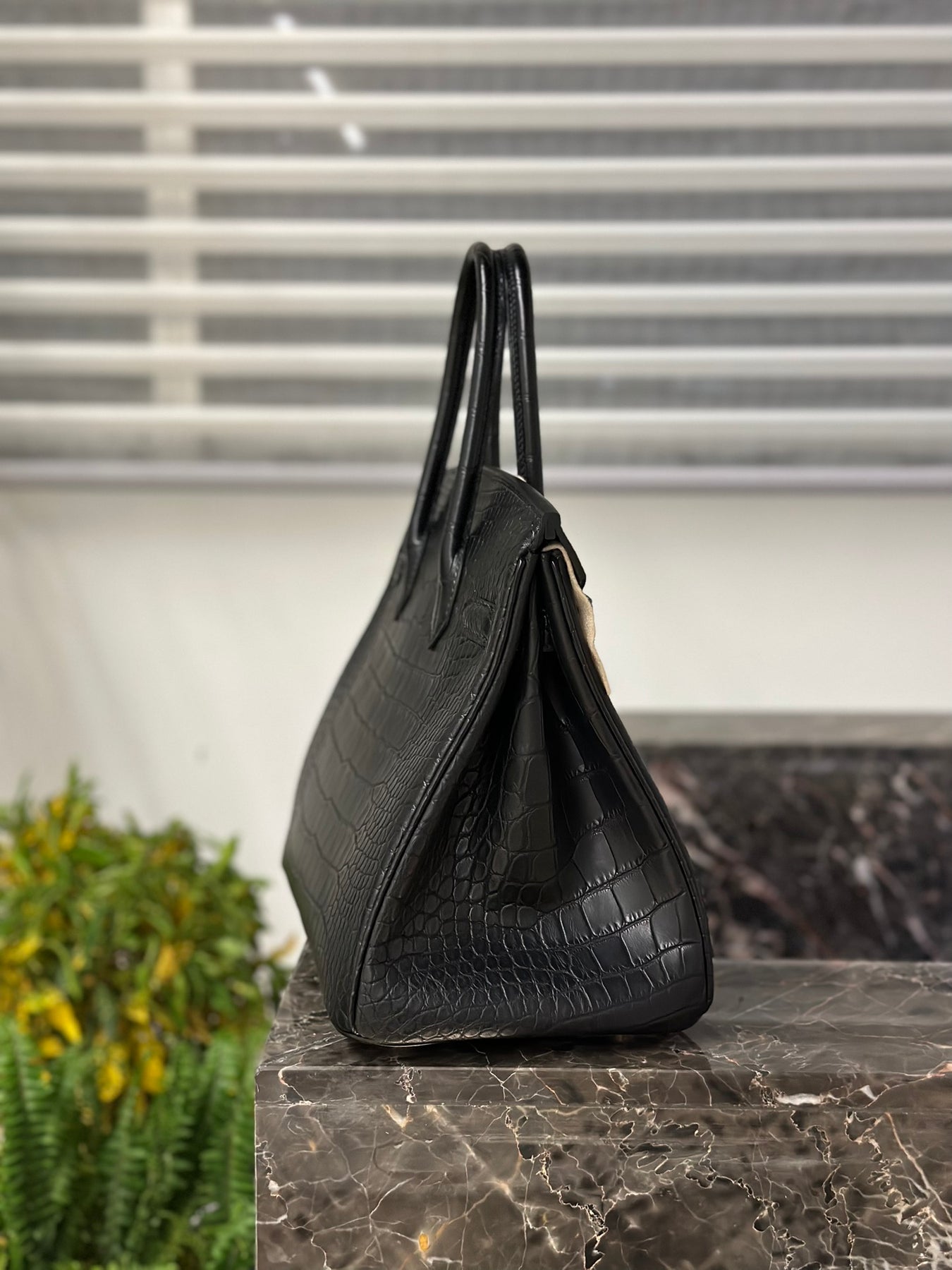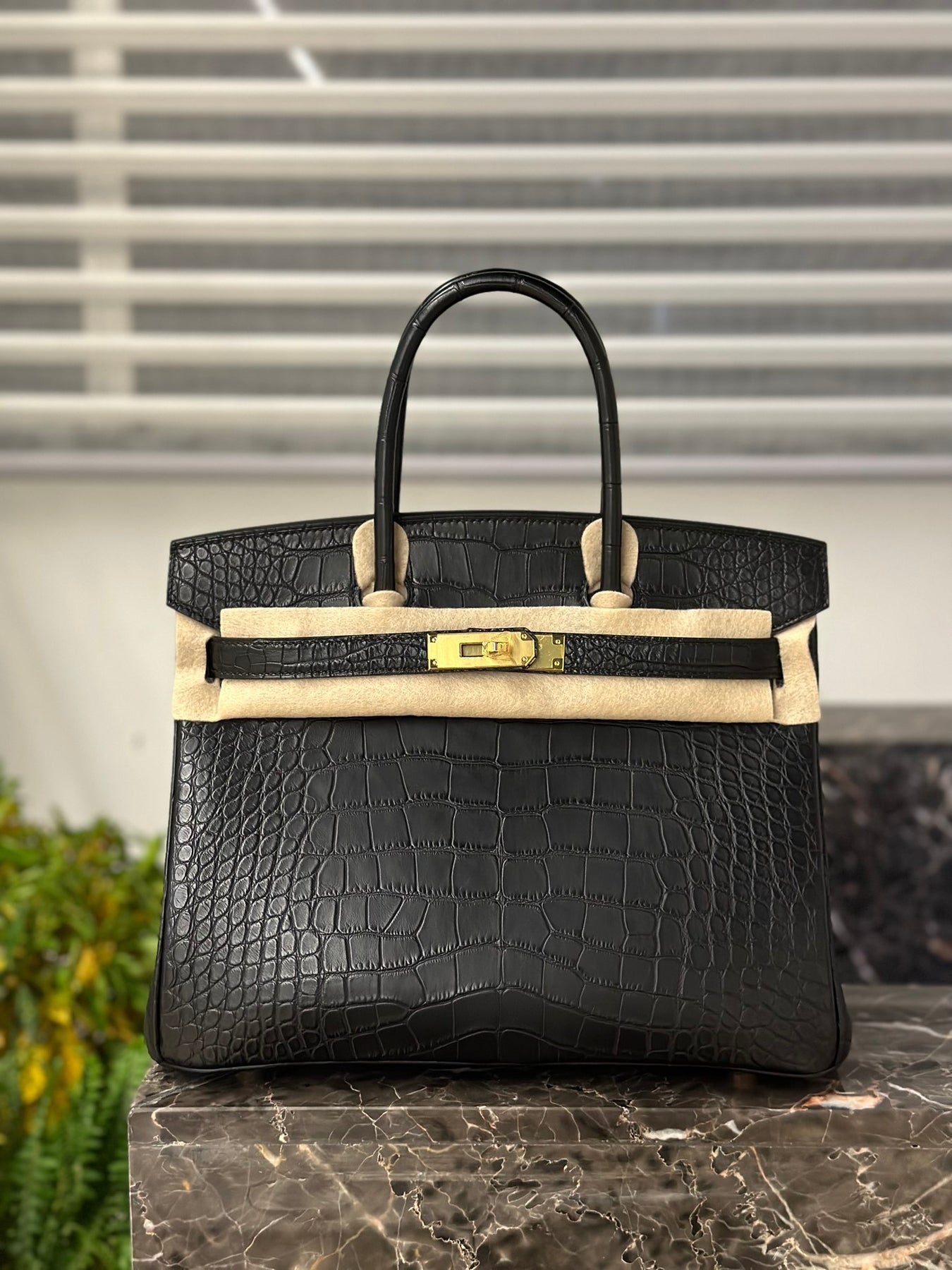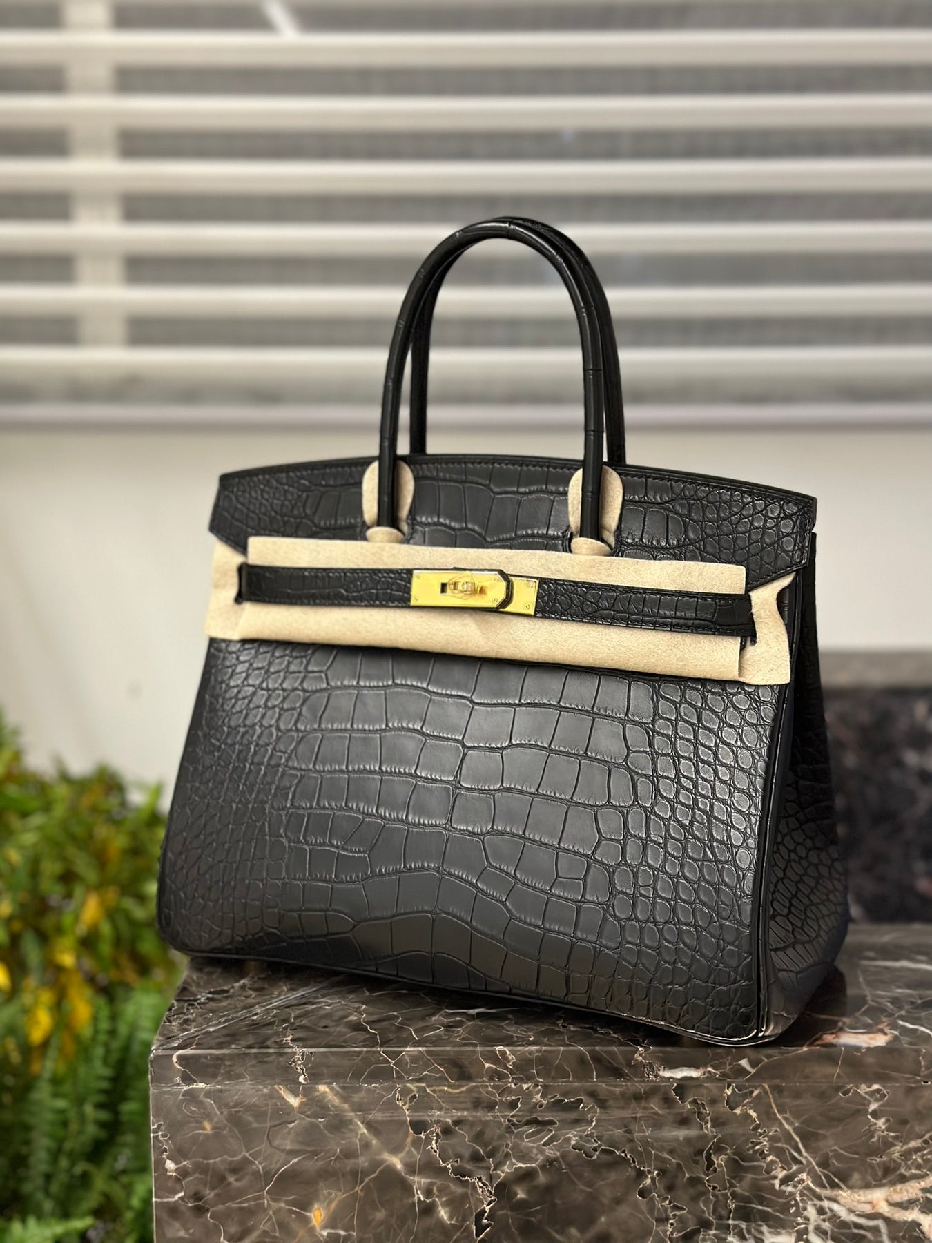 Discover the elegance of the Birkin 30 in Black Gold, crafted from premium matte American leather. This luxurious handbag showcases exquisite craftsmanship, combining three types of imported leather for a sophisticated finish. Elevate your style with this timeless accessory that embodies luxury and functionality, perfect for any occasion.