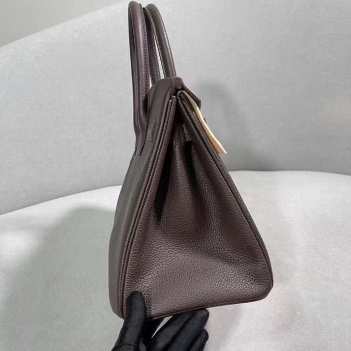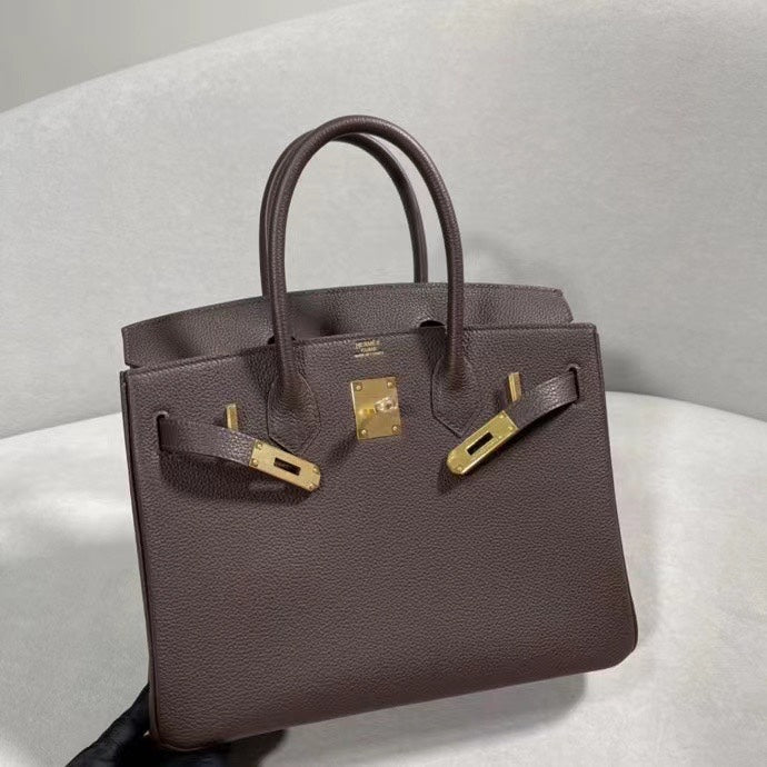 Introducing the Birkin 30cm Togo Handbag in a sophisticated ebony color, featuring a luxurious gold buckle. This semi-handmade piece showcases exquisite craftsmanship and original leather, making it a timeless addition to your collection. Versatile in style, the classic design effortlessly transitions from elegant to casual, suitable for any occasion. Elevate your fashion game with this exceptional handbag - your perfect choice for any scenario.