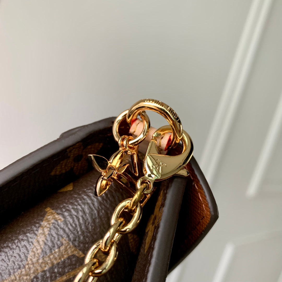 Introducing the Bitsy Pouch Pendant from the 2023 Cruise Collection—your perfect pocket-sized organizer. This chic, rectangular charm features a detachable chain and a secure Métis hook closure, ideal for holding your essentials like coins, keys, and lipstick. Crafted from luxurious Monogram canvas, the pendant is beautifully adorned with a striking presbyopic yellow flower color-blocked chain and intricate LV letters and floral decorations. Measuring 16 x 7 x 8 cm, the Bitsy Pouch is both functional and fashionable, making it the perfect accessory for any occasion. Elevate your style with this exquisite piece today!