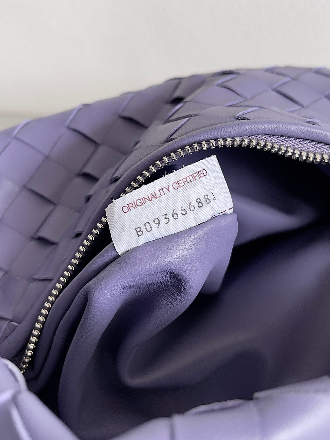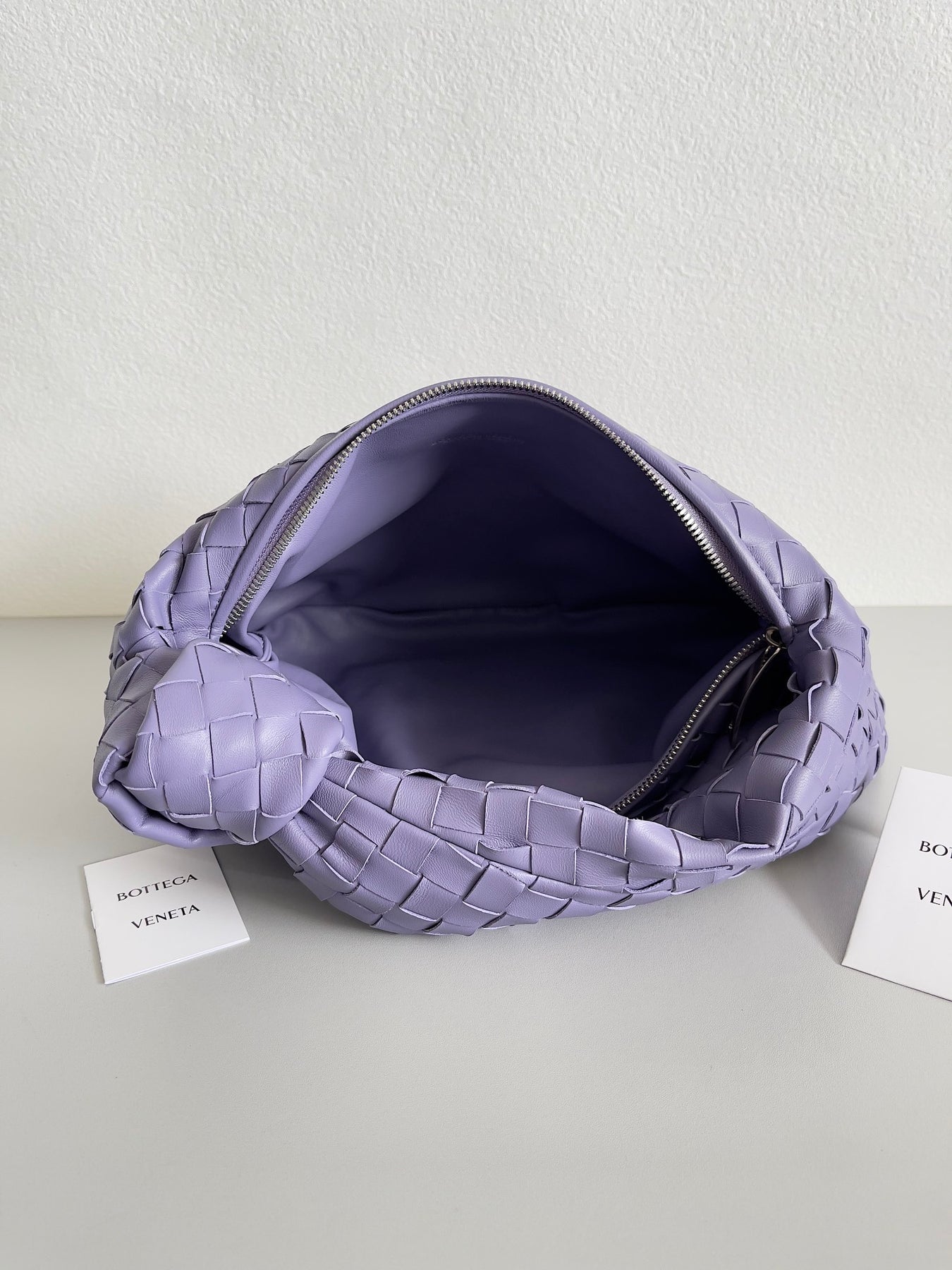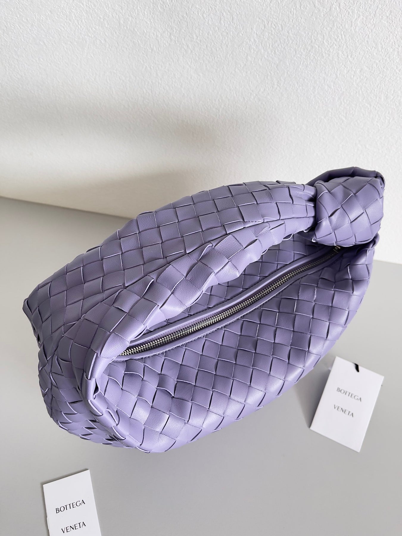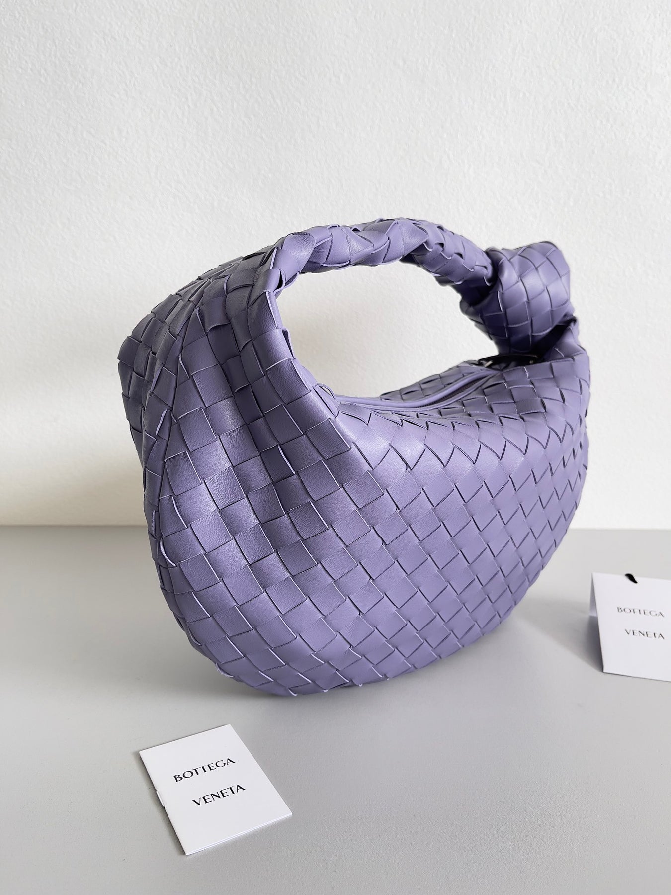 Introducing the Botega Veneta Jodie Medium Handbag in Wisteria, a perfect blend of style and functionality. This handbag is expertly crafted for durability, ensuring it maintains its appeal over time. The thoughtfully designed knot handle not only enhances its elegance but also secures the bag for comfortable, hands-free carrying.