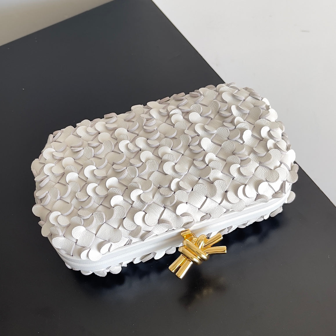 Discover the elegance of spring with the Bottega Veneta 24 Spring Petal Woven Evening Bag. This exquisite evening bag features a stunning petal craftsmanship that embodies nature's beauty, enhanced by vibrant colors that are sure to capture attention.