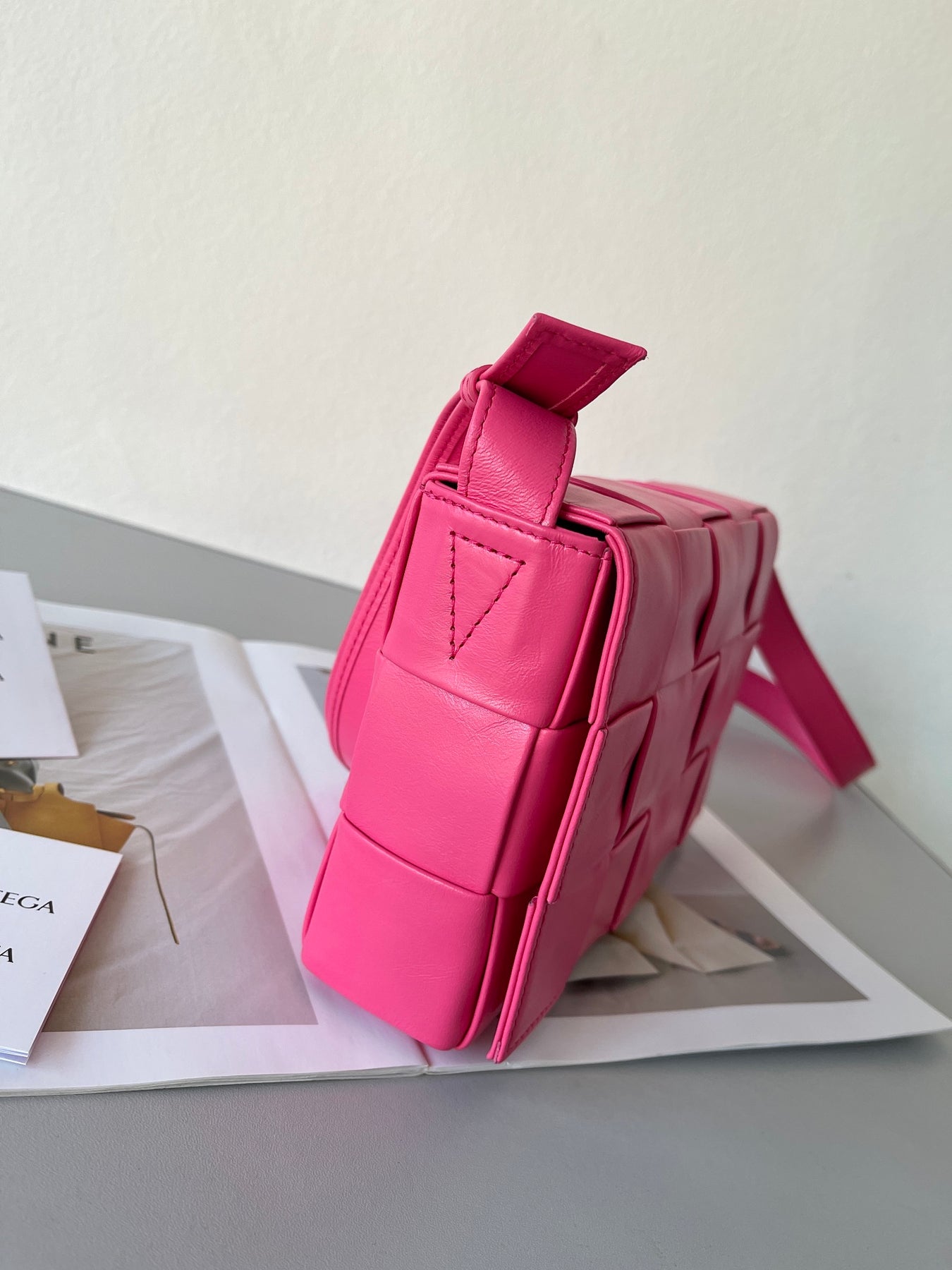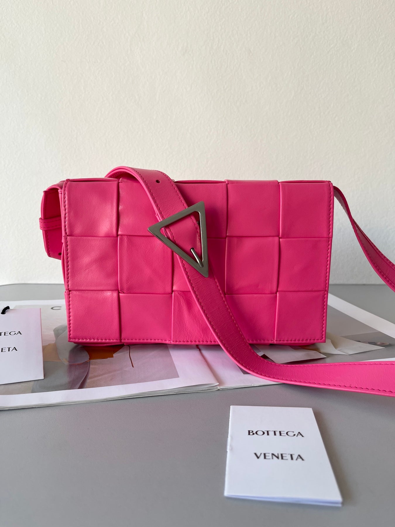 Discover the elegance of the Bottega Veneta "Cassette" bag, designed with premium waxed shiny calfskin and accented with signature Jindian triangle hardware. This stunning accessory features a unique 5×3 braided design that adds a touch of sophistication to any outfit. Compact yet spacious, the bag measures 23cm x 15cm x 5cm, making it the perfect choice for storing your essentials in style. Elevate your wardrobe with this exquisite piece today!