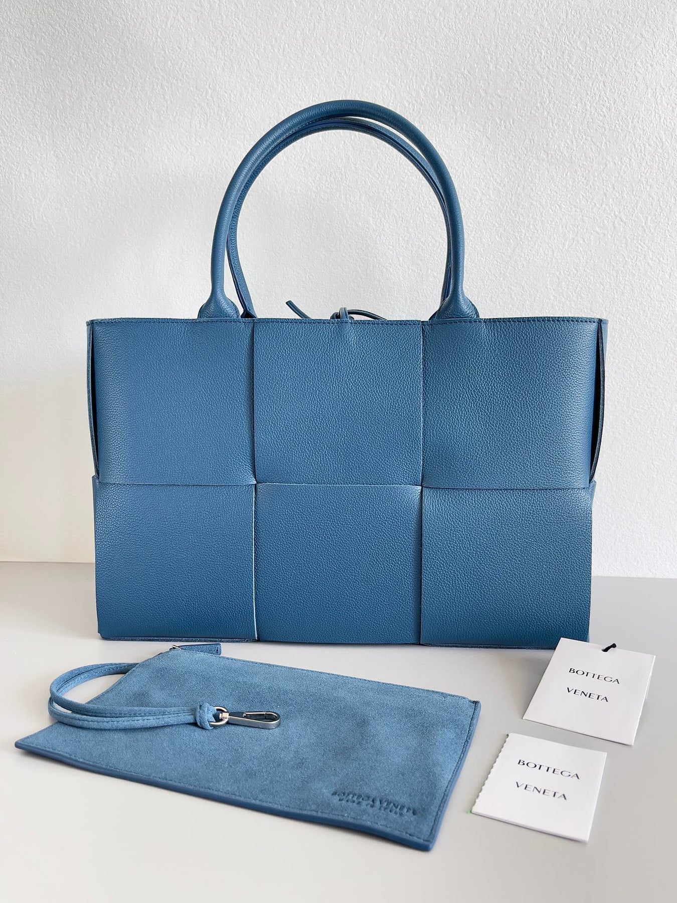 Introducing the Bottega Veneta Intreccio Tote, a sophisticated accessory designed for style and practicality. Crafted from high-quality pebbled cowhide leather, this tote showcases a stunning combination of rain tree green and grass green hues. With dimensions of 38 cm x 25 cm x 14 cm, it offers ample space for your essentials while maintaining a sleek silhouette. Enhance your collection with this elegant and functional tote, model number 609175, perfect for any occasion.