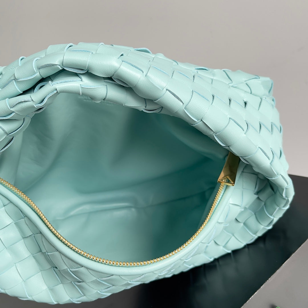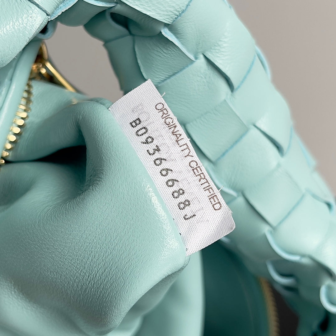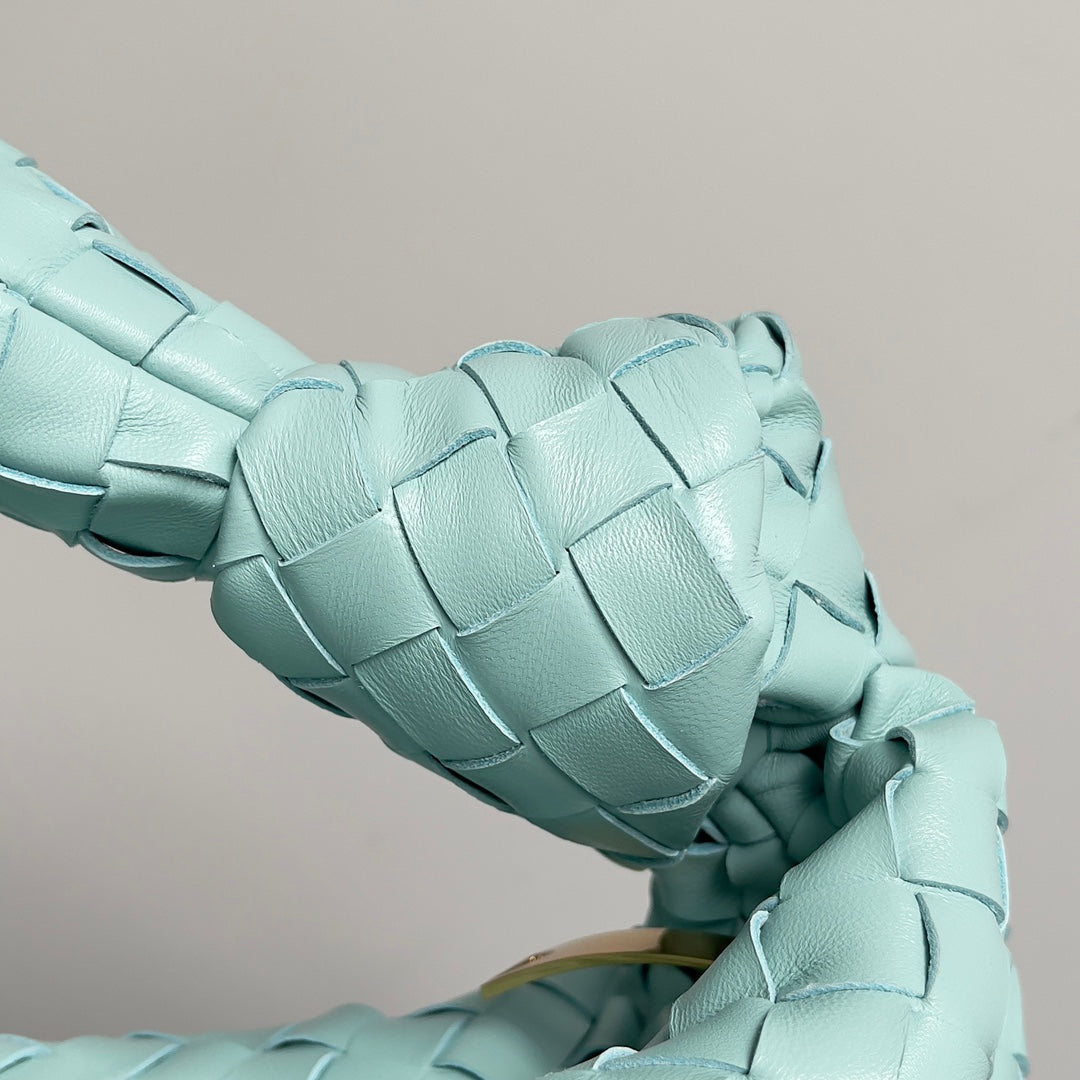 Introducing the Bottega Veneta Jodie Medium Handbag in a striking Tiffany blue—currently out of stock. This elegant handbag combines style and durability, making it a perfect accessory for any occasion.