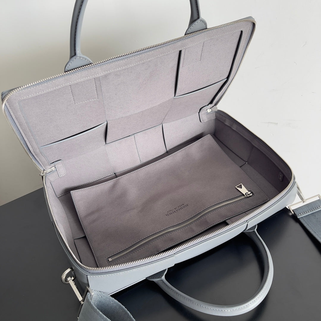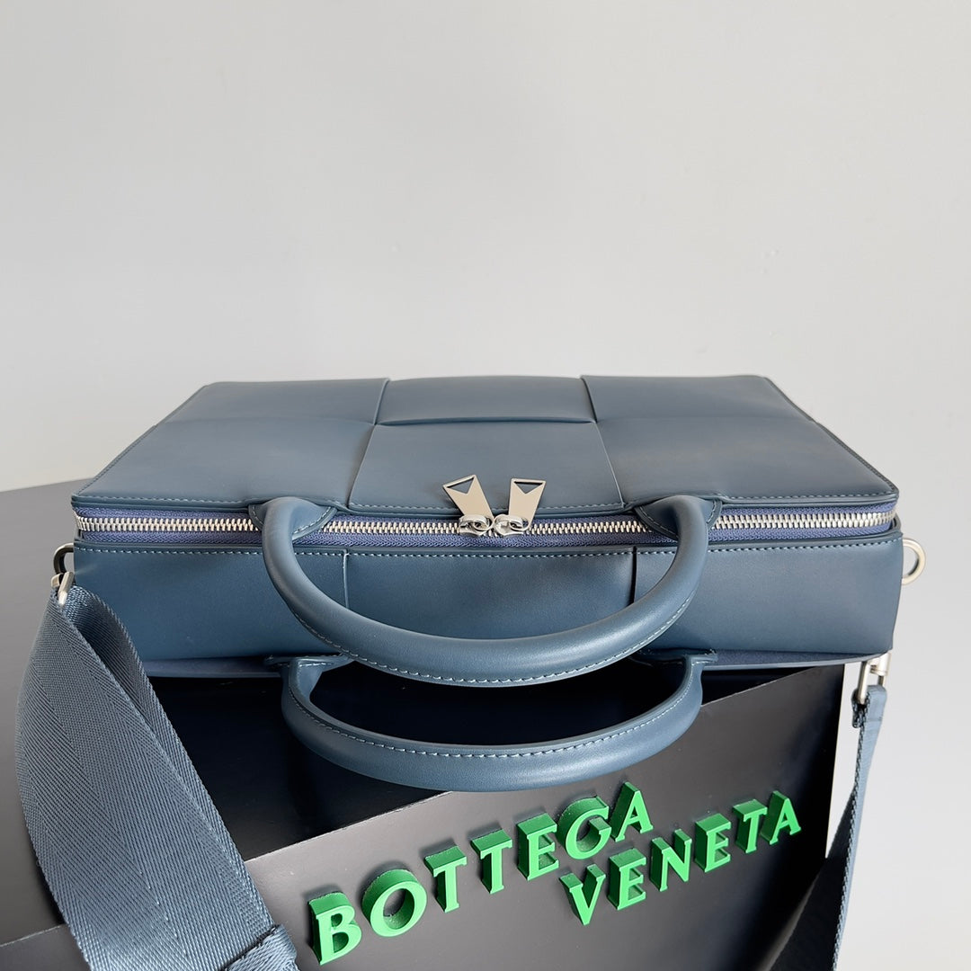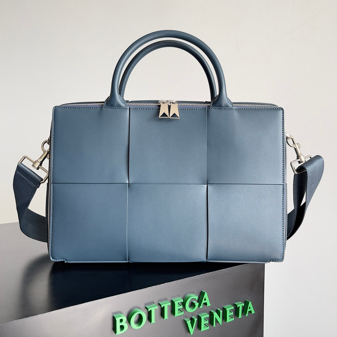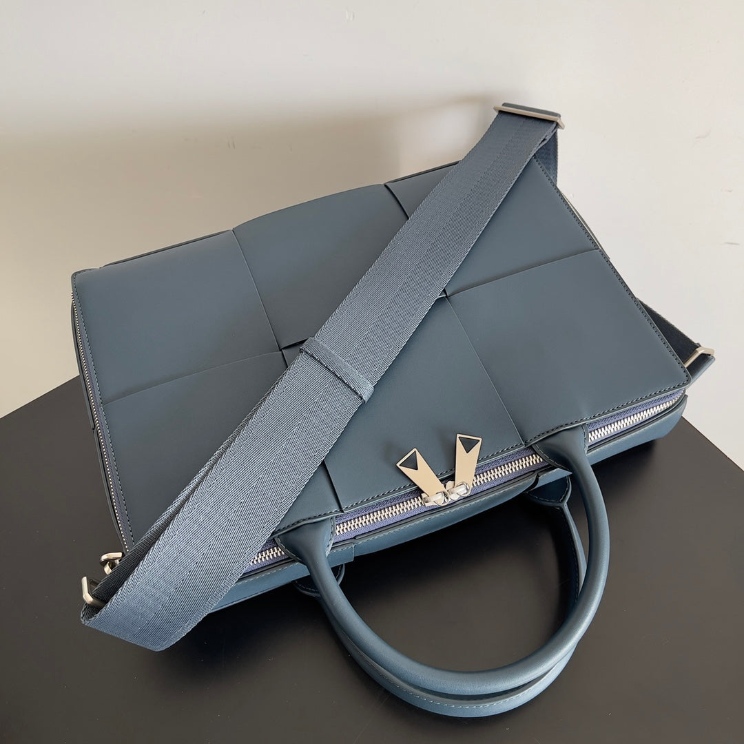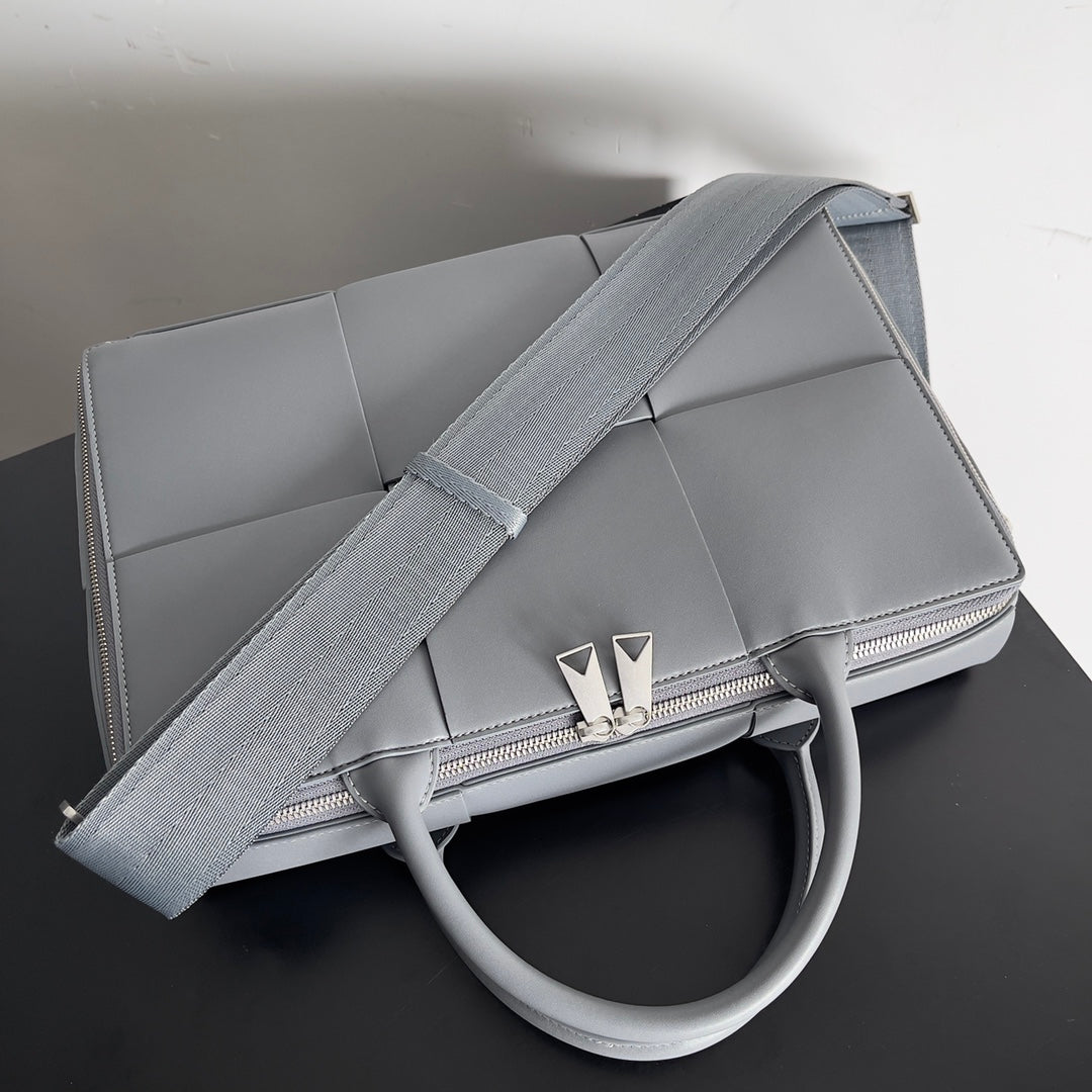 Elevate your professional wardrobe with the Bottega Veneta Men's Large Lattice Woven Briefcase. This stylish and sophisticated briefcase is an essential accessory for any man transitioning from school to the professional world. Designed for versatility, it can be carried over the shoulder or as a cross-body bag, making it perfect for both office settings and business meetings. With a spacious interior, this briefcase offers ample room for your documents and essentials, while its elegant design reflects a sense of refined taste and confidence. Invest in this timeless piece that combines functionality and luxury seamlessly.