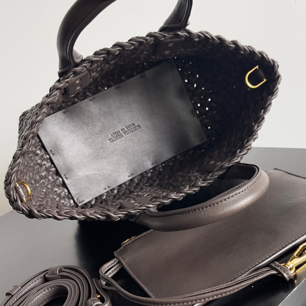 Introducing the Bottega Veneta Mini Cabat Woven Leather Basket Bag—an exquisite fusion of luxury and practicality. Crafted with the brand’s signature high-quality vegetable-tanned leather, this bag showcases a unique three-dimensional design through its intricate layering and interlacing techniques. The Mini Cabat is not only a stylish accessory but also perfectly tailored for the modern woman's lifestyle, effortlessly combining elegance with everyday functionality. With dimensions of 22 x 15.5 x 6.5 cm, this bag offers ample space for all your essentials while maintaining a chic silhouette. Elevate your ensemble with this timeless fashion statement. Style Number: 762830.