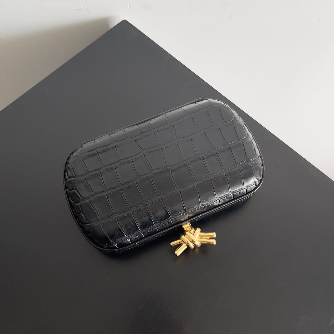 Bottega Veneta Woven Evening Bag - Crocodile Pattern, 24k Gold Plated