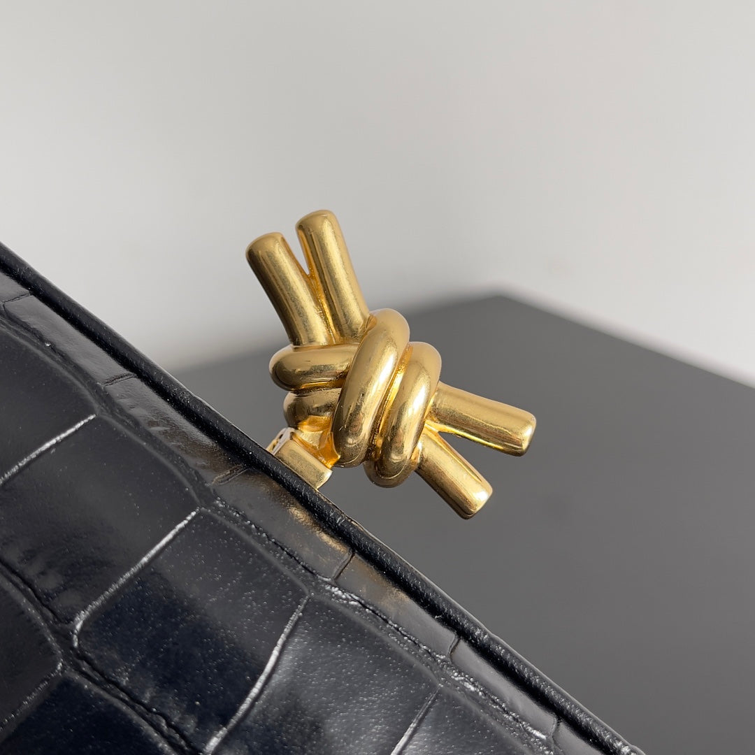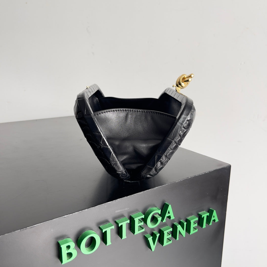 Elevate your evening attire with the Bottega Veneta Woven Evening Bag, a stunning piece from the Spring 2024 collection. Crafted from original leather, this exquisite handbag features a unique crocodile pattern and is accentuated with 24k real gold plating, making it a luxurious addition to any wardrobe. The bag shines beautifully, capturing attention with its gorgeous, eye-catching color.