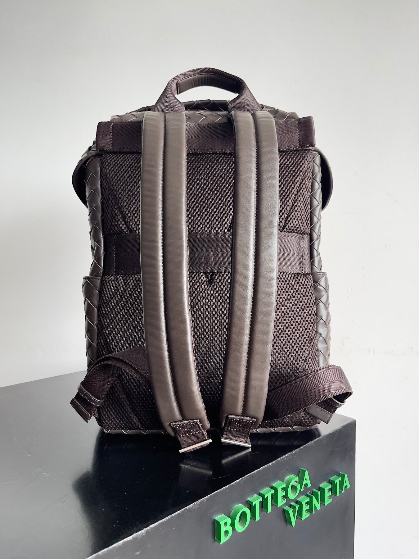 Discover the BV Intrecciato Men's Flip Backpack, a perfect blend of casual and professional style. Designed for the modern individual, this backpack features adjustable padded straps for comfort and a convenient belt that easily attaches to the back of a trolley case—ideal for travel or daily commutes. Measuring 38*26*15 cm, its sleek appearance reflects the sophistication of successful individuals while maintaining practicality. Elevate your accessory game with this versatile and beautifully crafted backpack, perfect for any occasion. Style number: 766580.