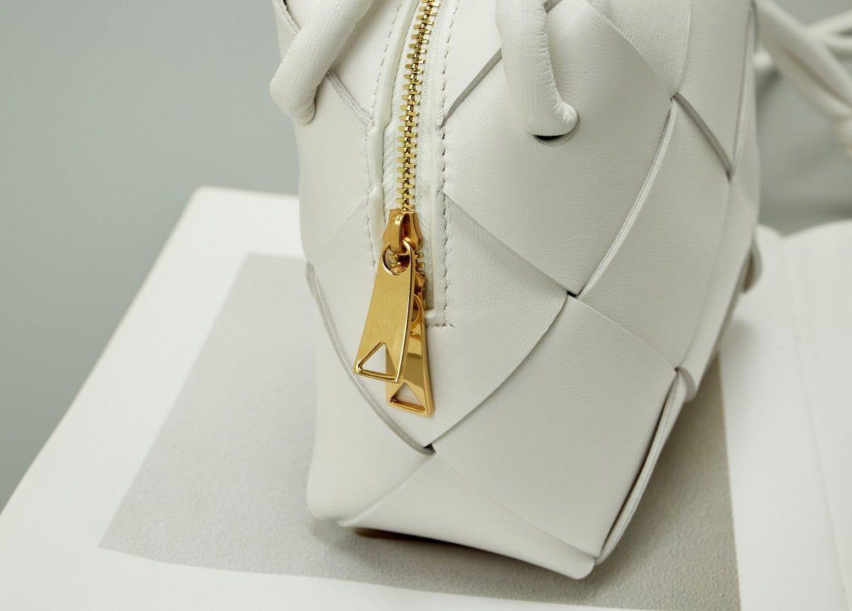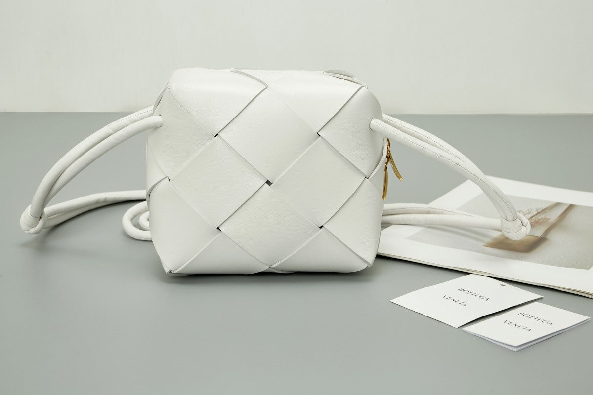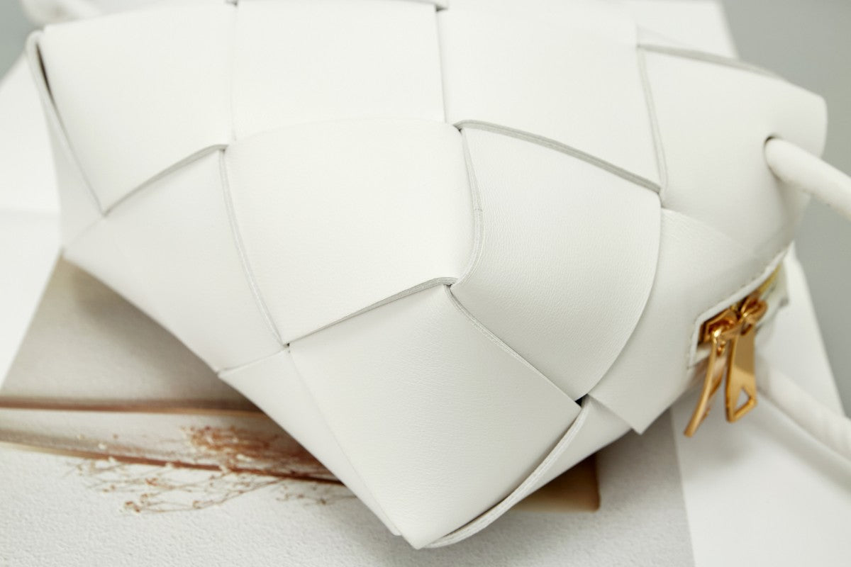 BV Mini Intreccio Woven Leather Crossbody Bag - Pure White