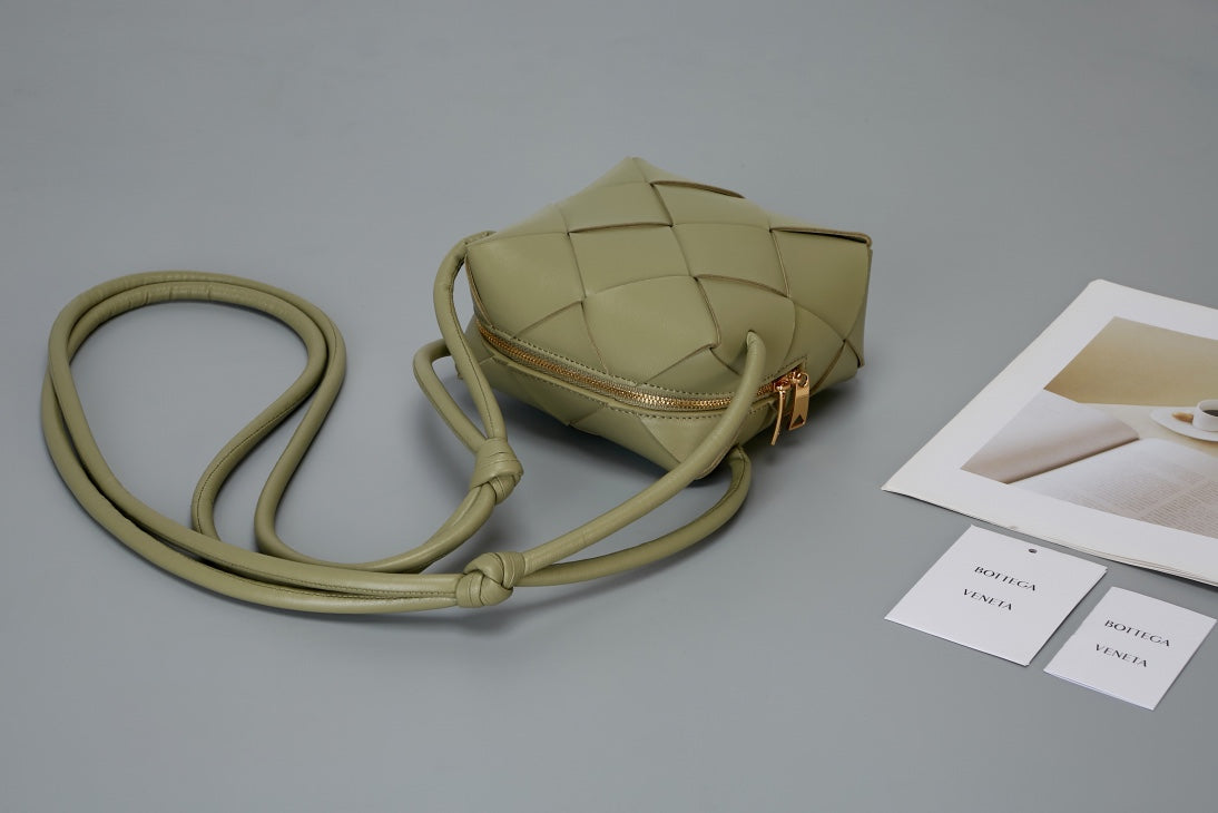BV Mini Intreccio Woven Leather Crossbody Bag - Travertine Green