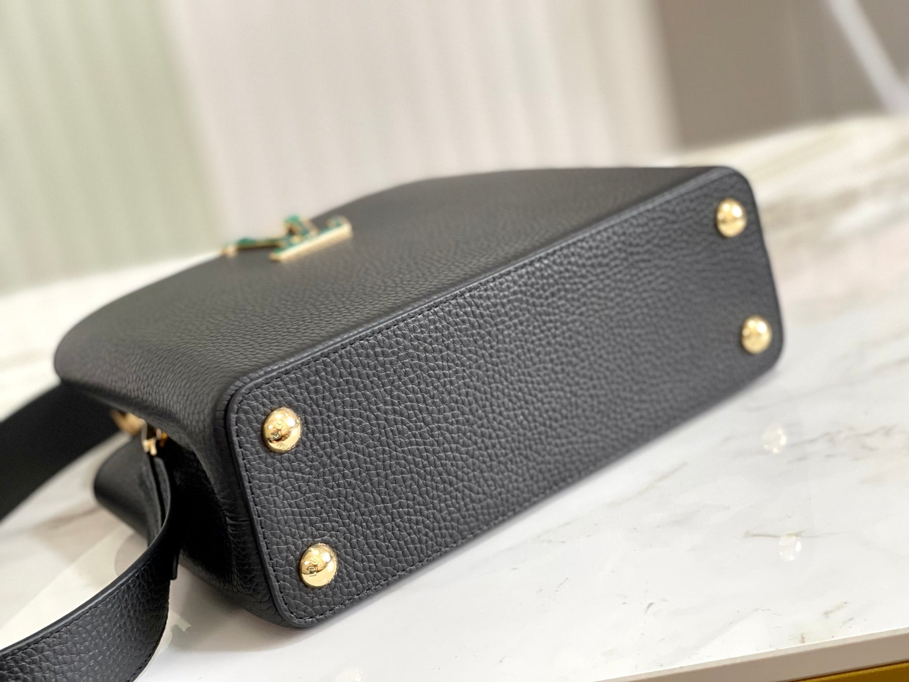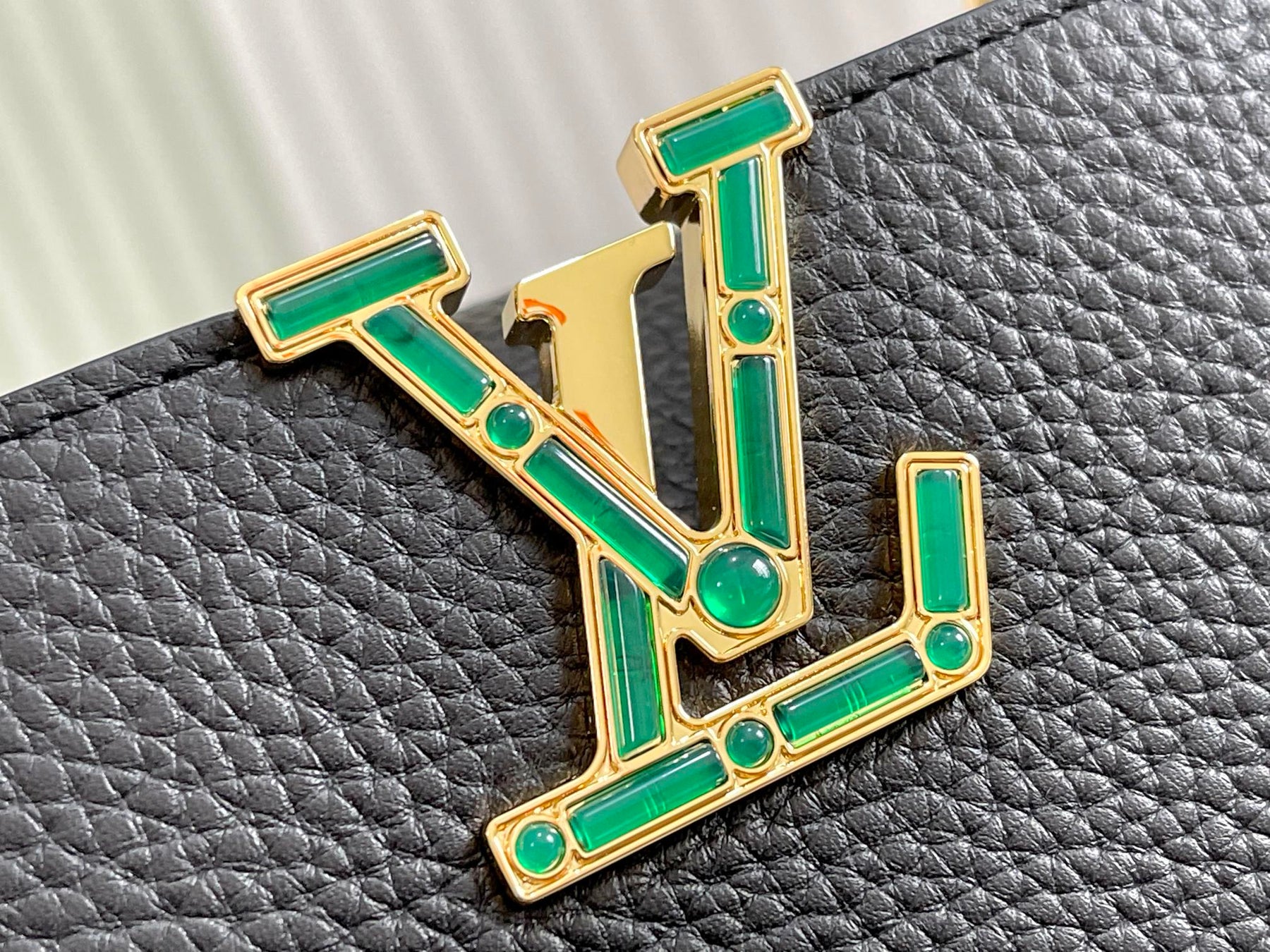 Introducing the exquisite Capucines BB handbag, a stunning blend of luxury and sophistication. Crafted from premium full-grain Taurillon leather, this handbag showcases the iconic LV logo, radiating the lush hues of malachite. Its timeless design is elevated by a graceful silhouette that effortlessly transitions from day to night.